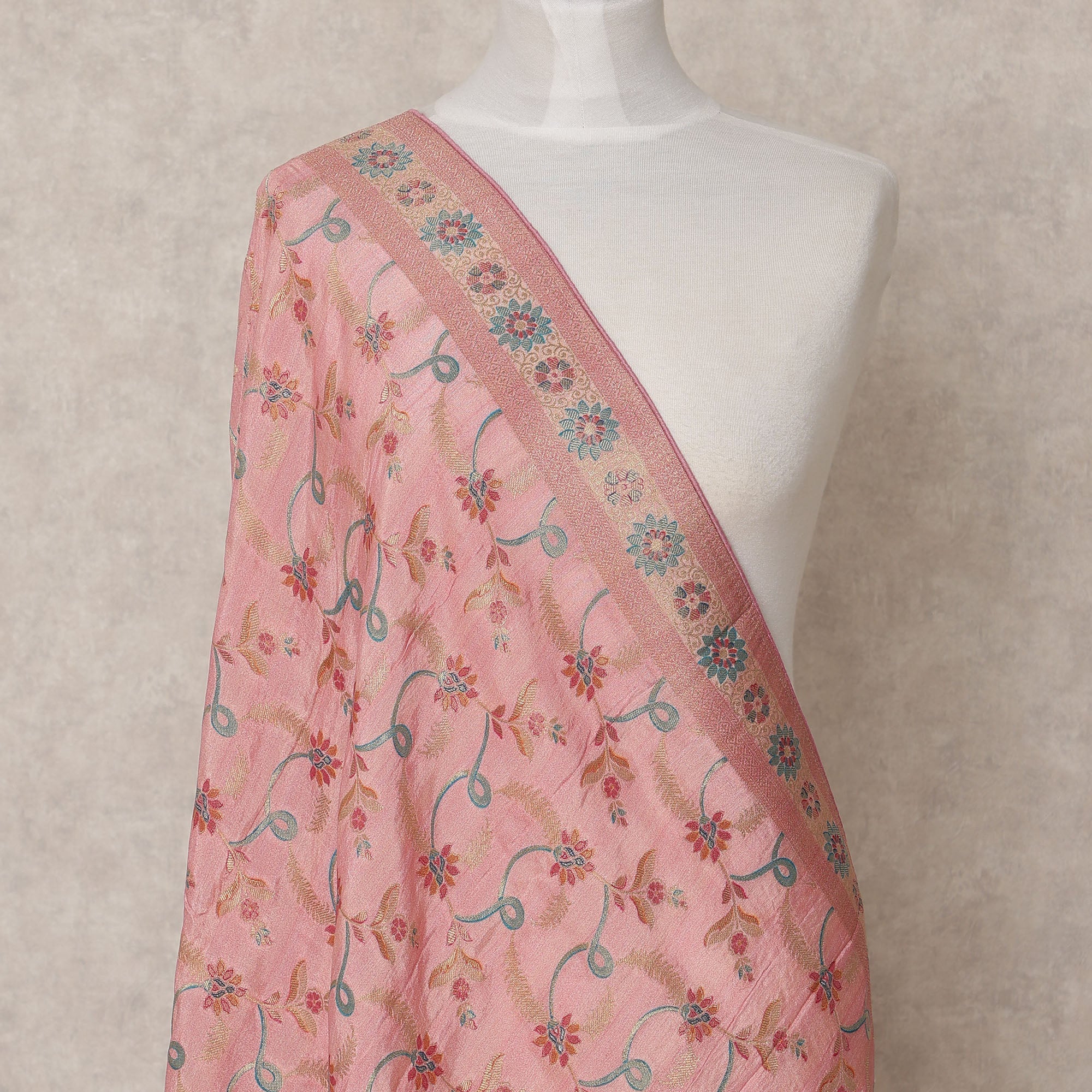 Peach Floral Zari Woven Border Premium Raw Silk Dupatta, 225X85 Cms, Made in India-D25765