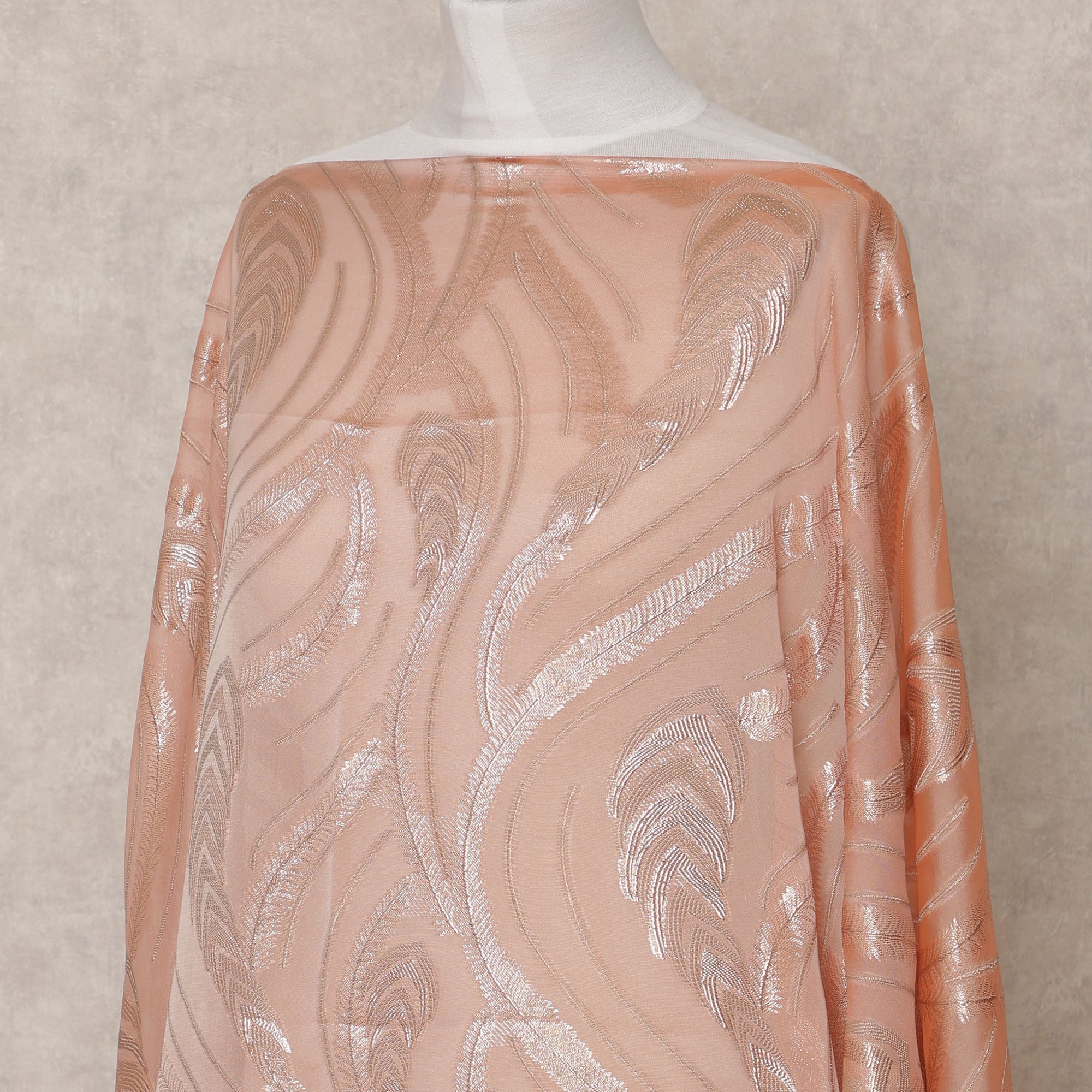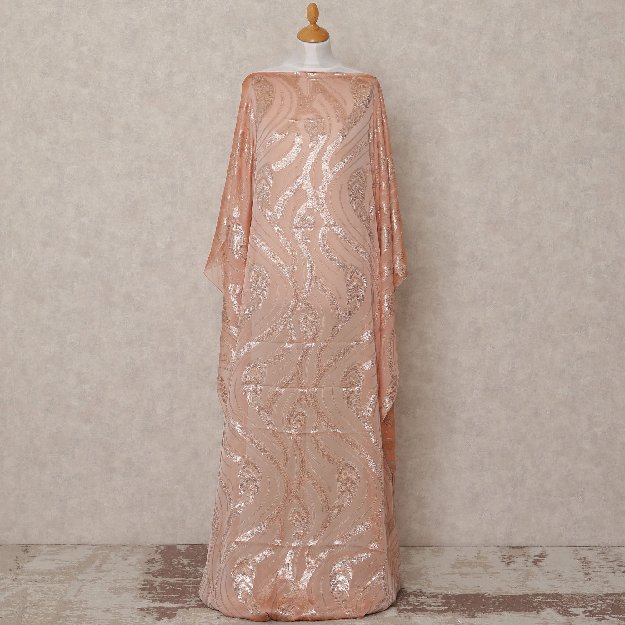 Peach Fransawi Metallic Lurex Somali Silk Chiffon Dirac Fabric – 3.5 Meters, Width 140 cm, Made in France-D24744
