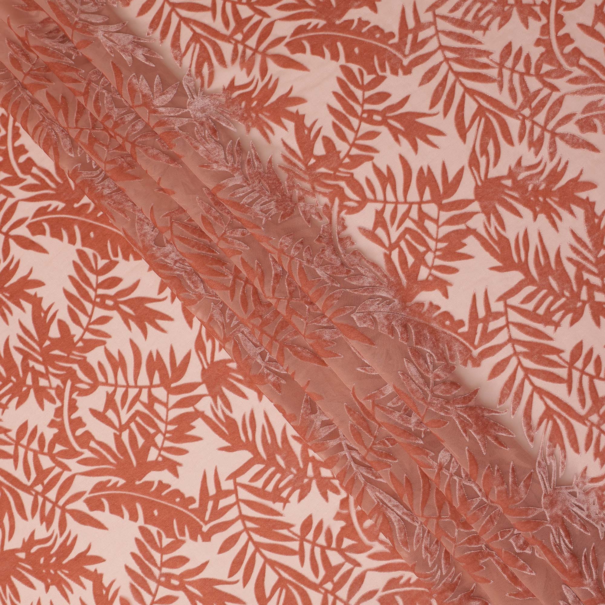Peach Leaf Printed Synthetic Burnout Chiffon Velvet Fabric 140 Cms Width China-D28199