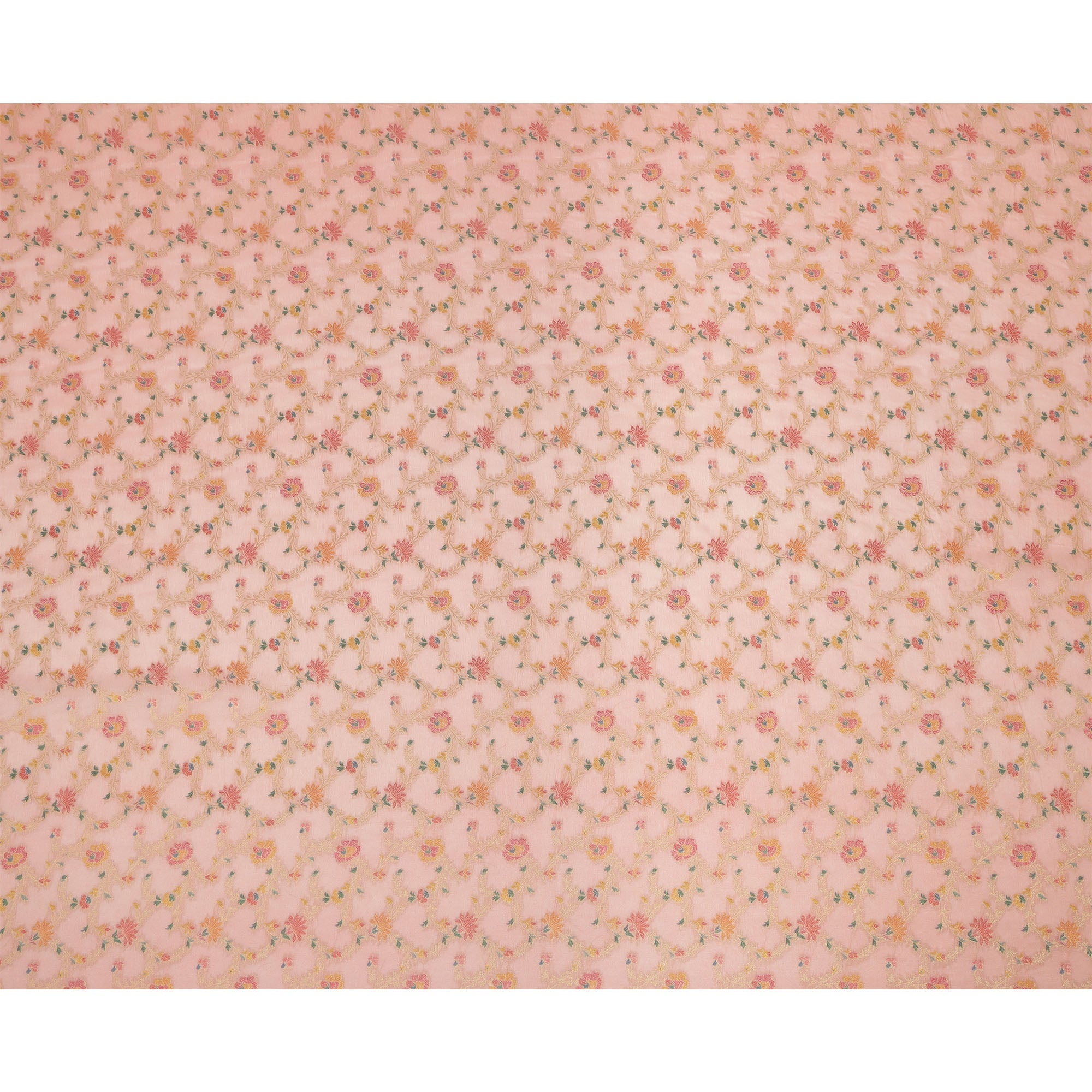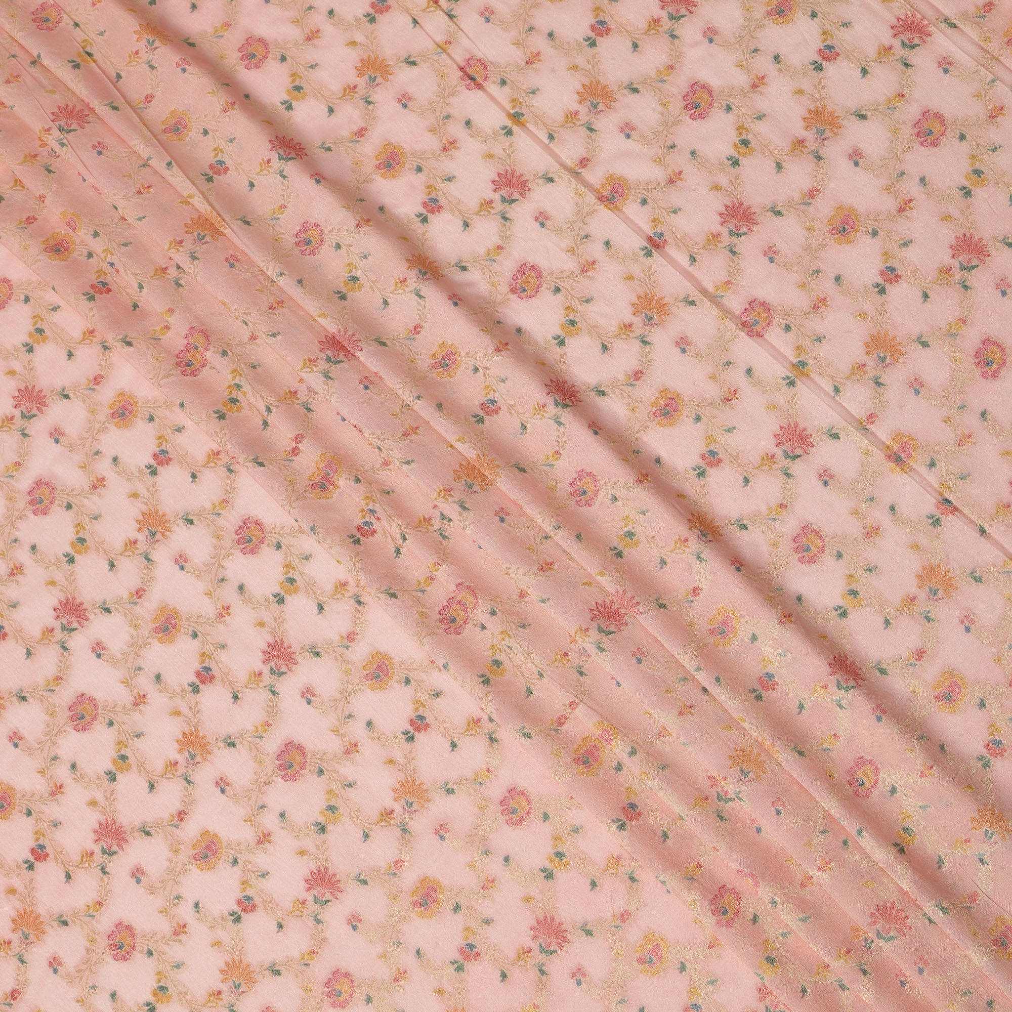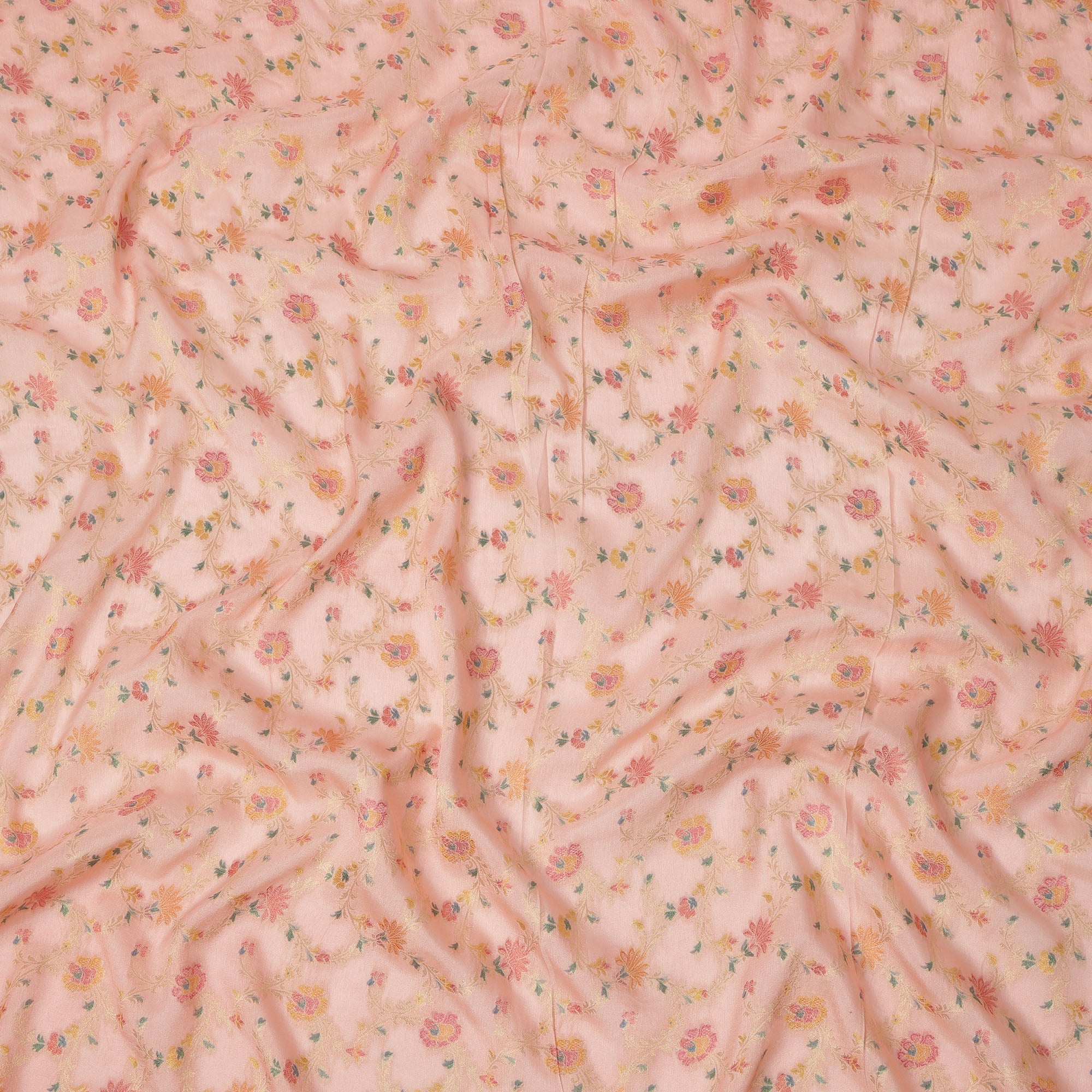 Peach Multicolor Floral Design Viscose Fabric with Metallic Detailing, 110 Cms Width, India-D24800