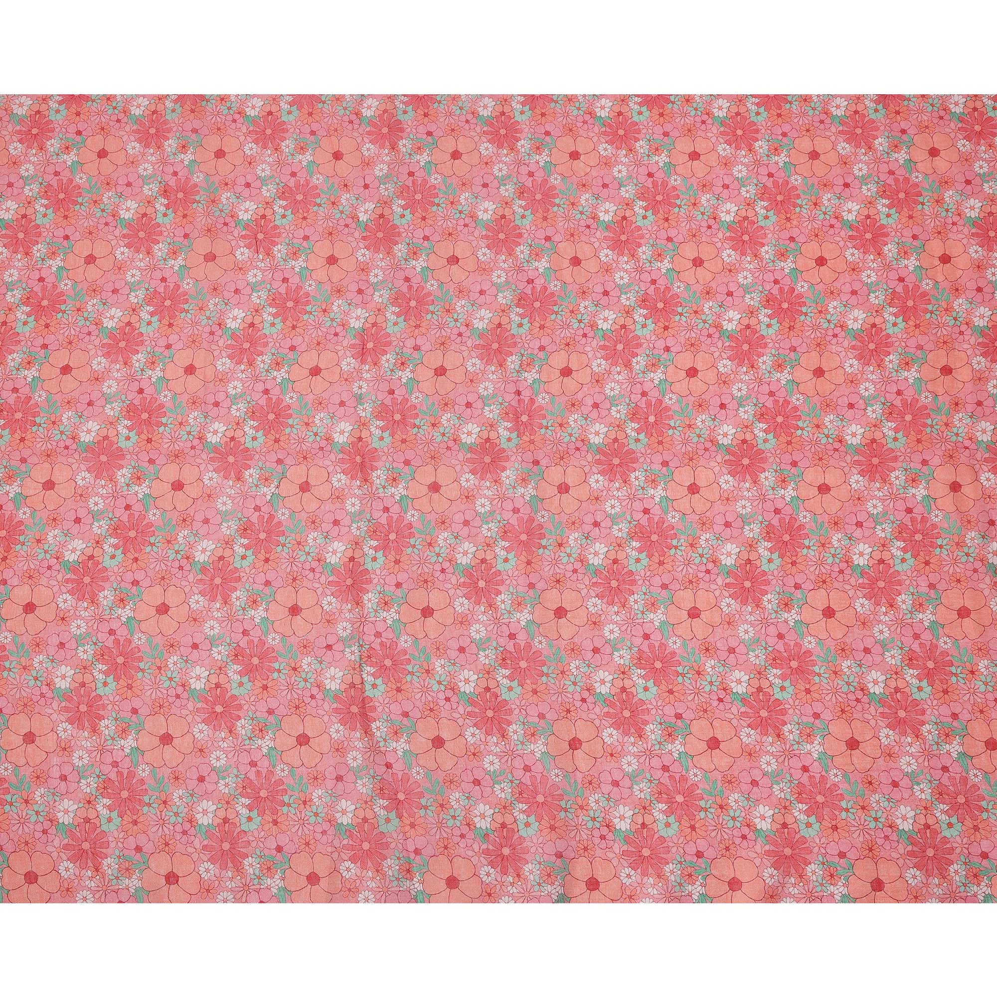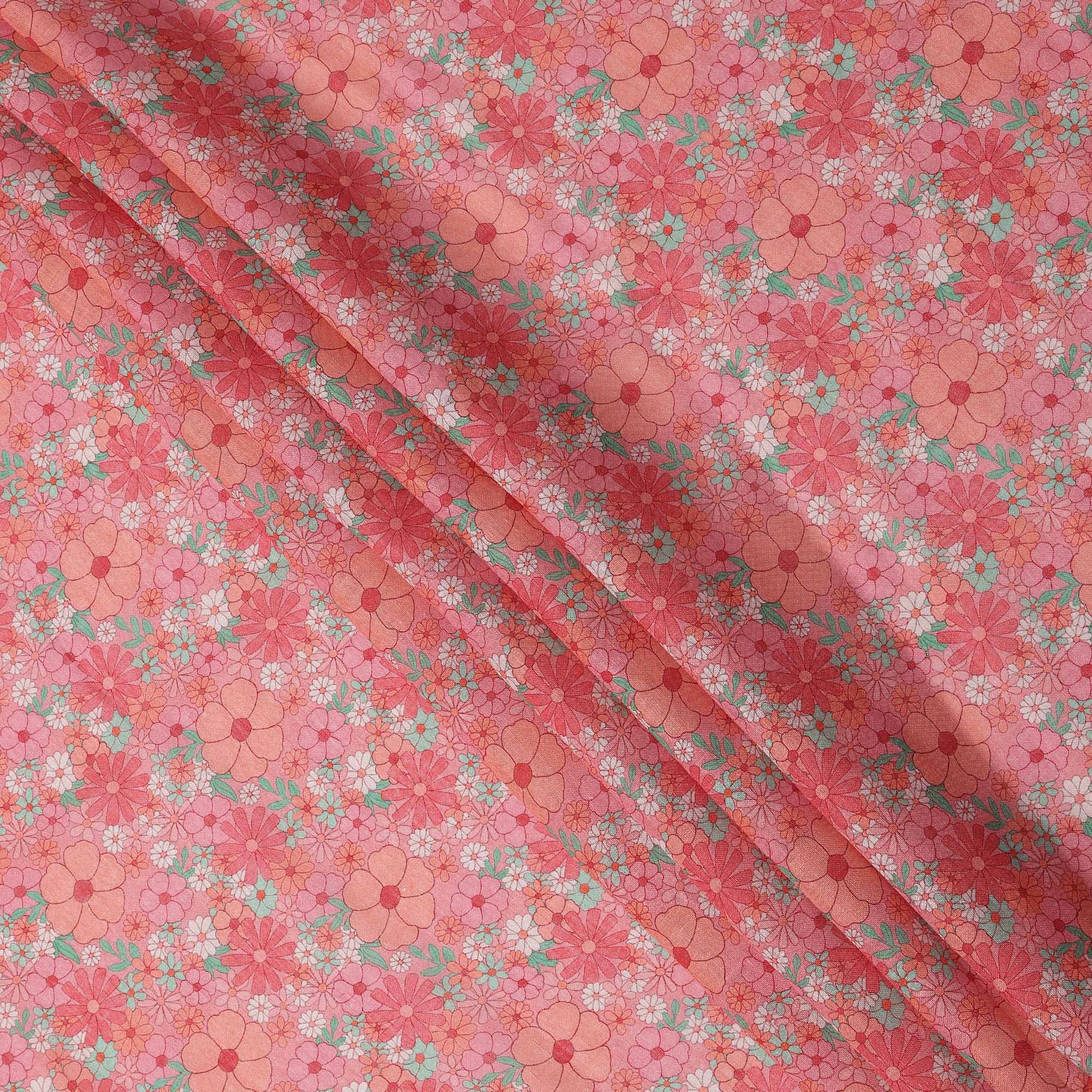 Peach Multicolor Floral Printed Blended Cotton Linen Fabric, 110 Cms Width, India-D25178