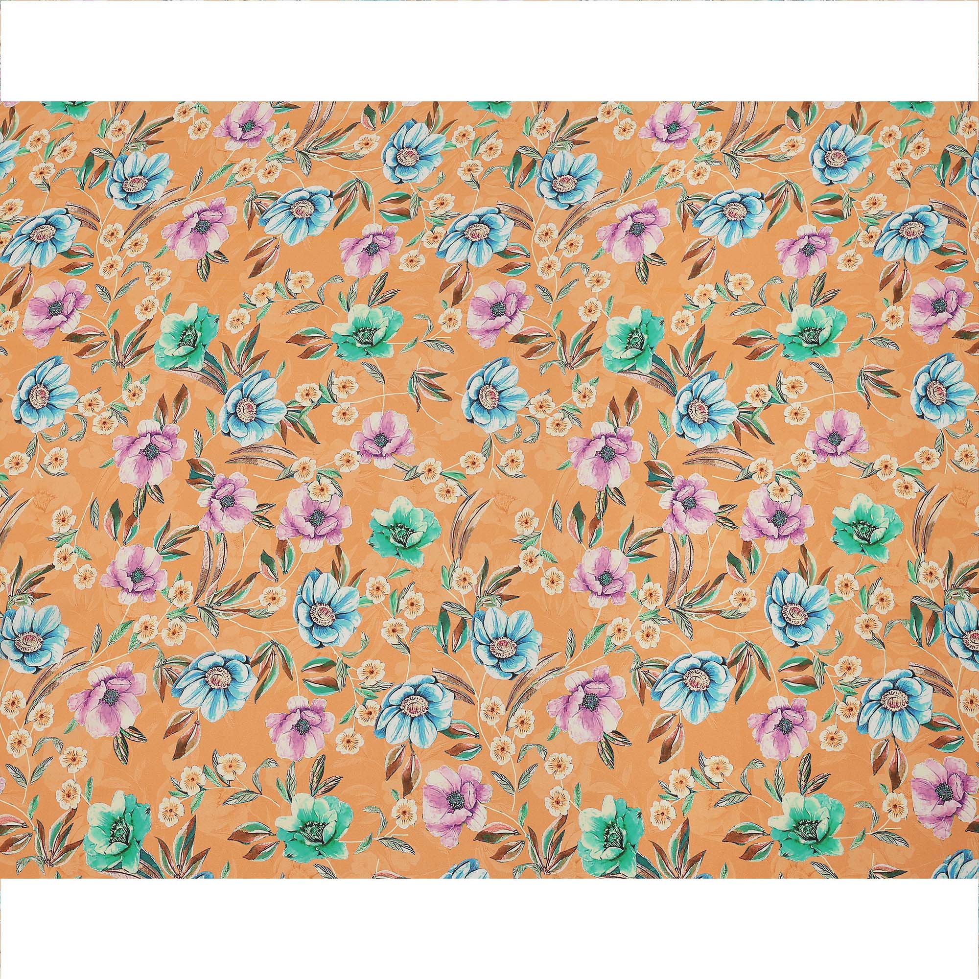 This beautiful peach pure silk crepe fabric features an enchanting multicolor floral print with vibrant blooms in shades of turquoise,... Read more Read more