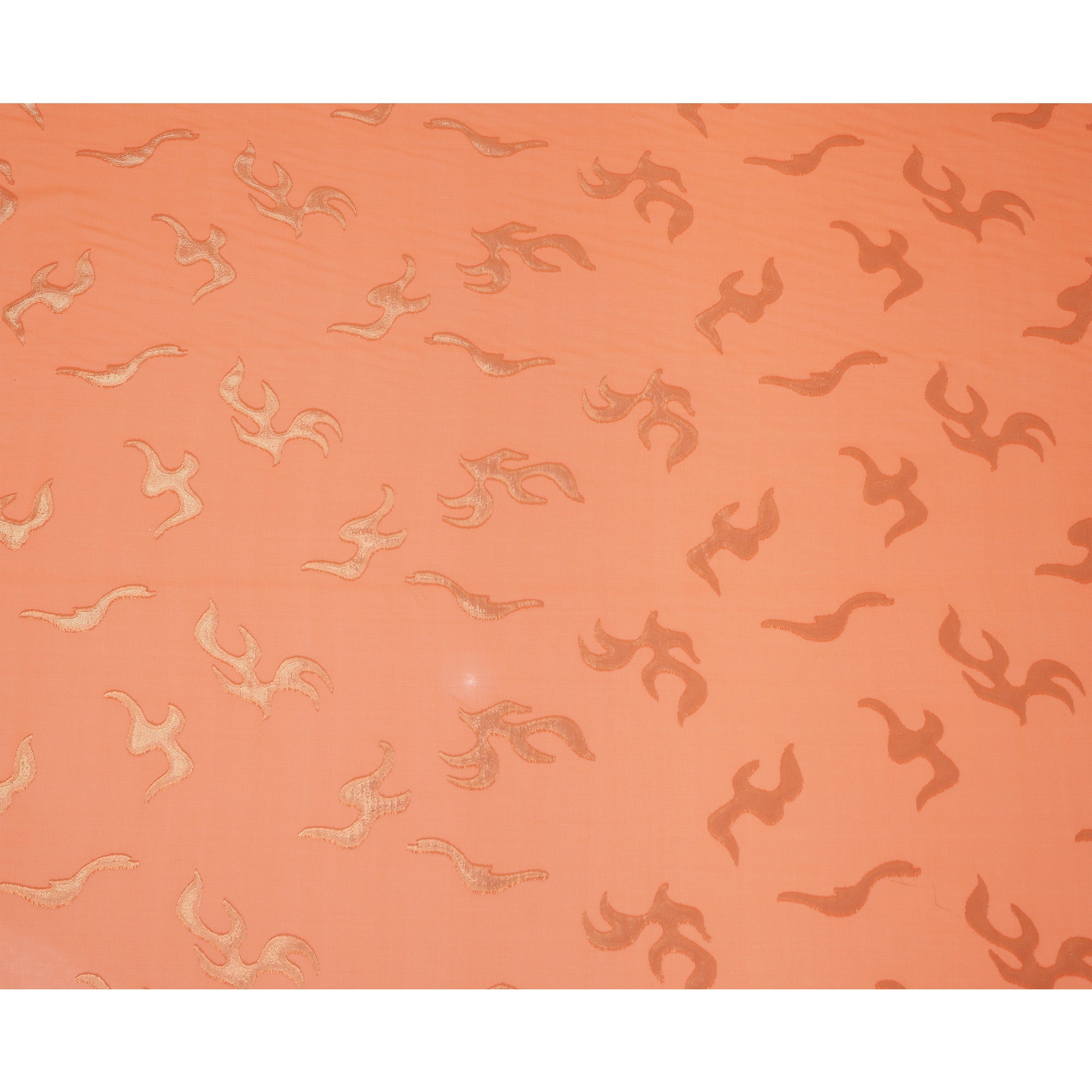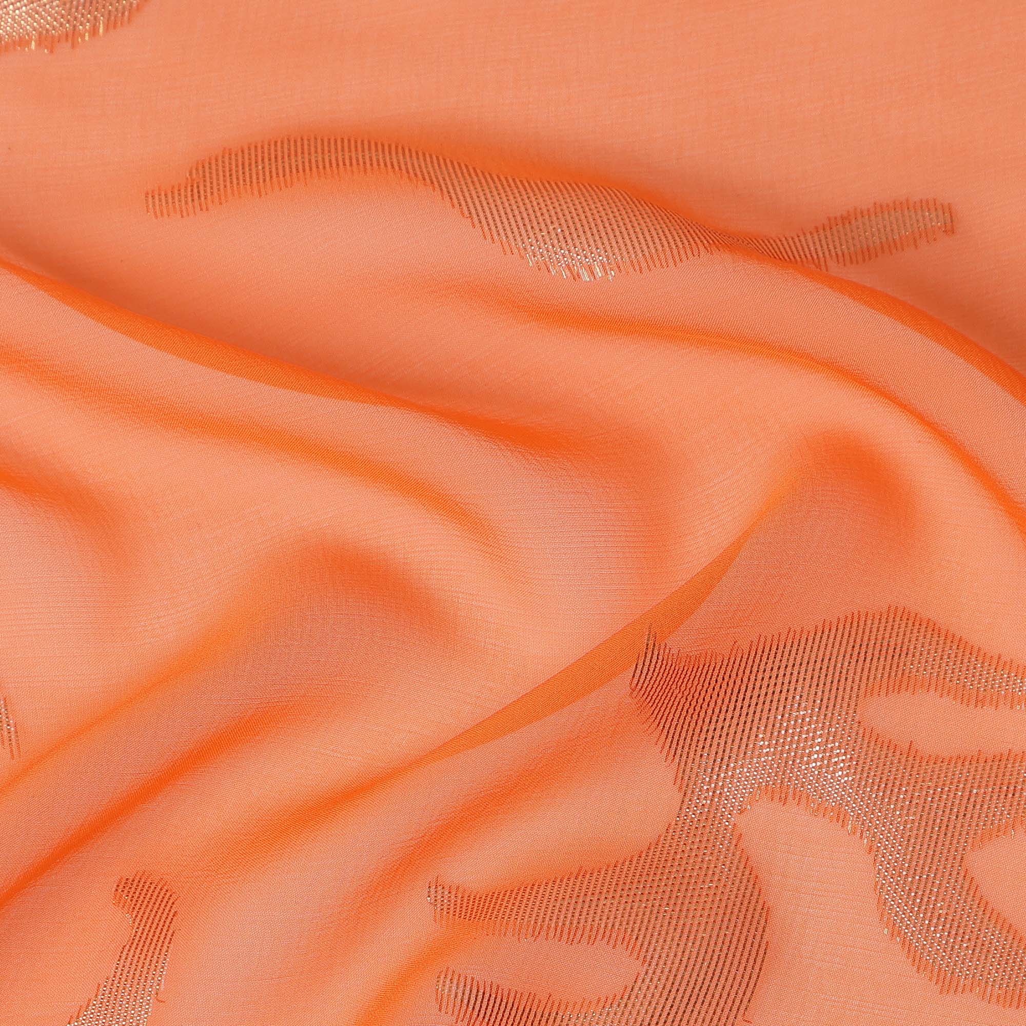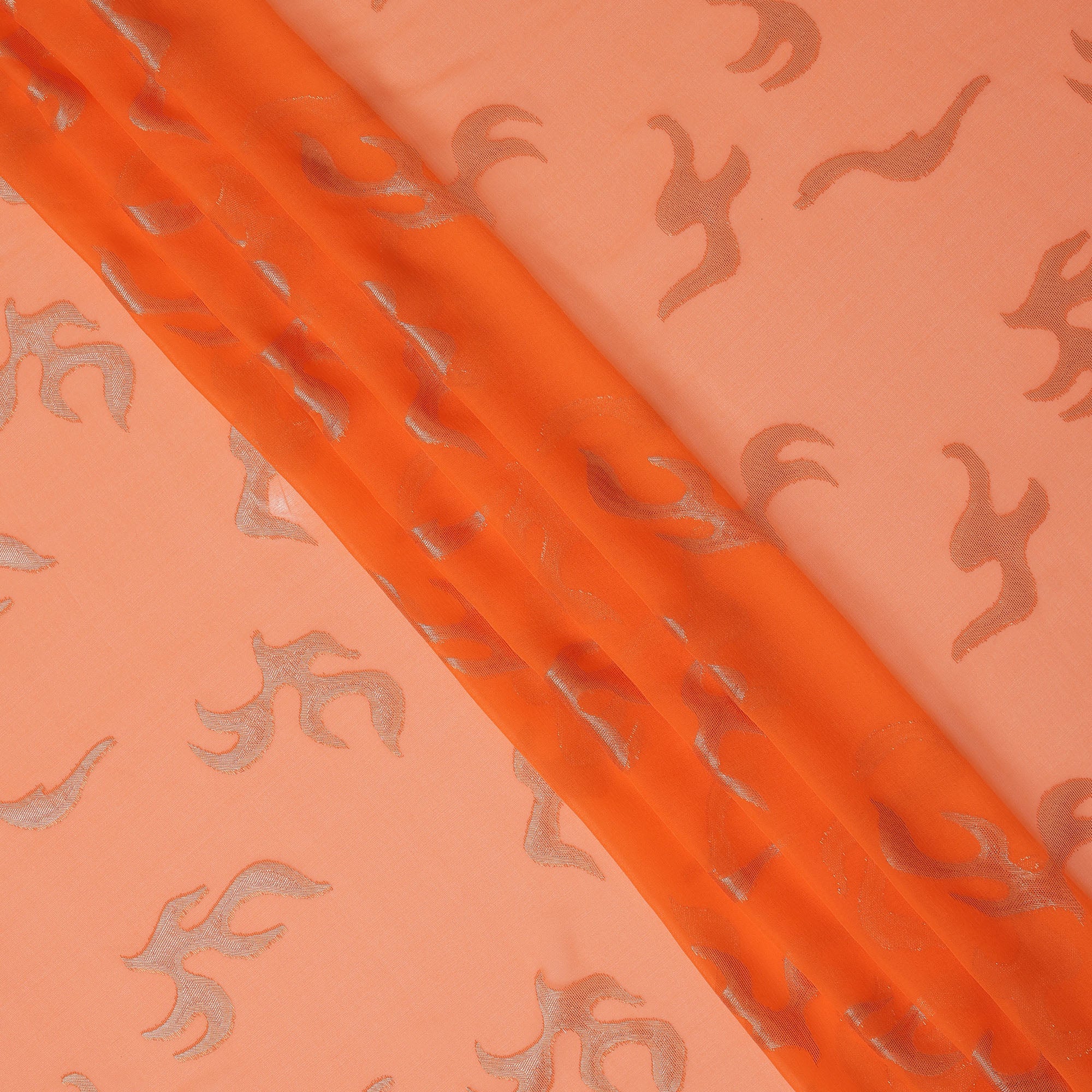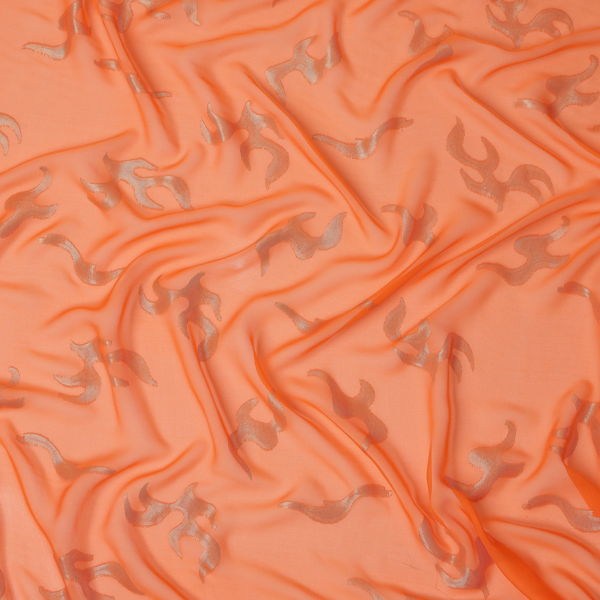 Peach Orange Abstract Metallic Lurex Design Premium French Silk Chiffon Fabric, 110 Cms Width, Made in France-D25731