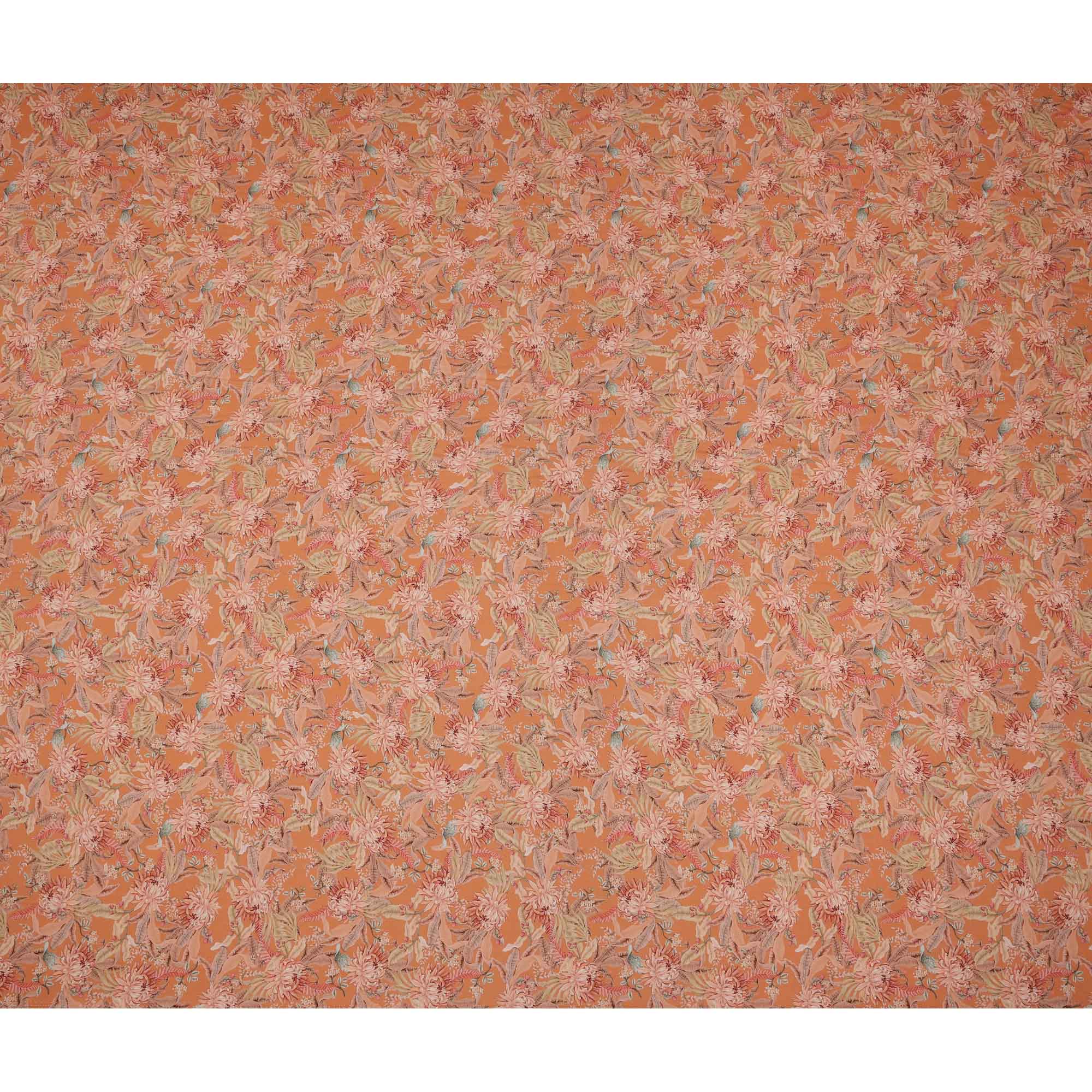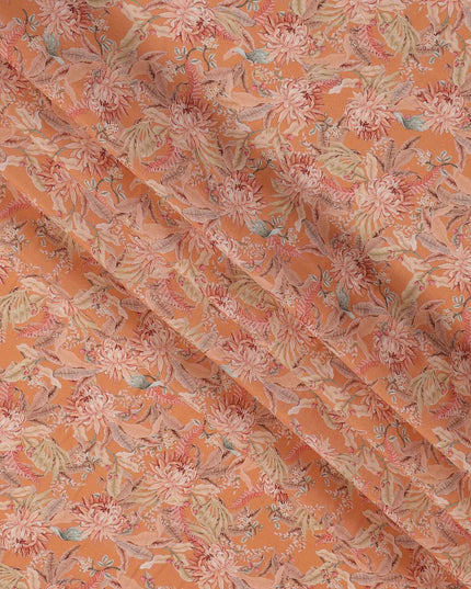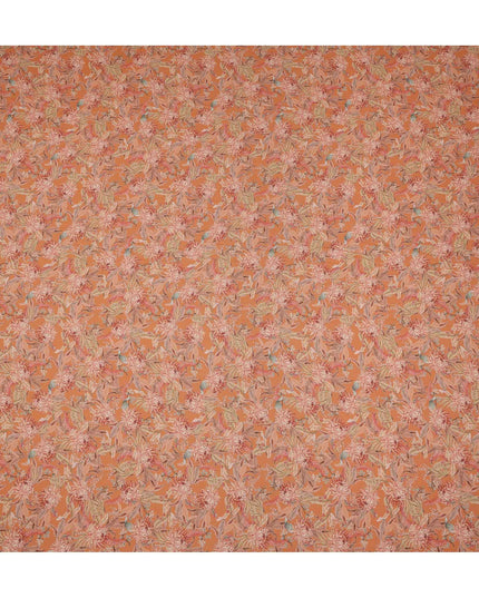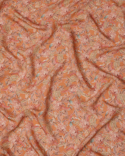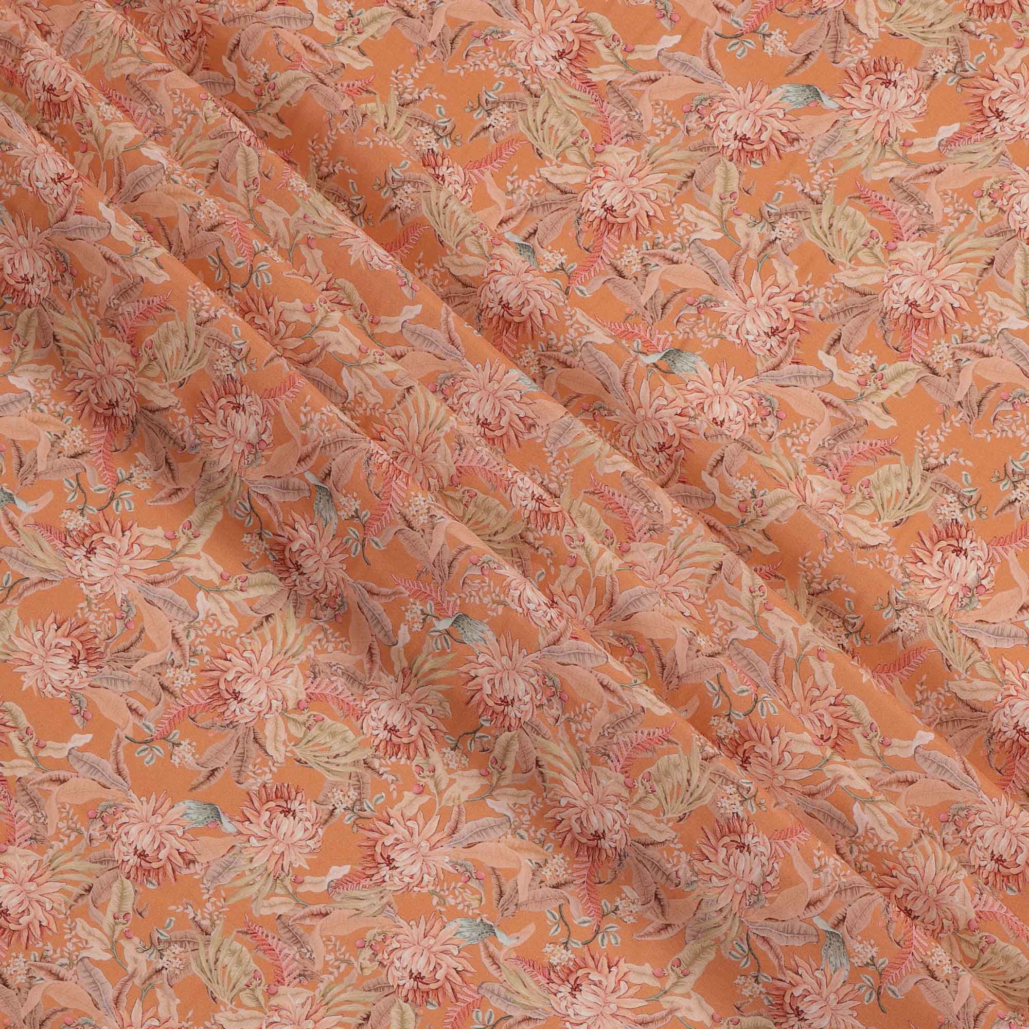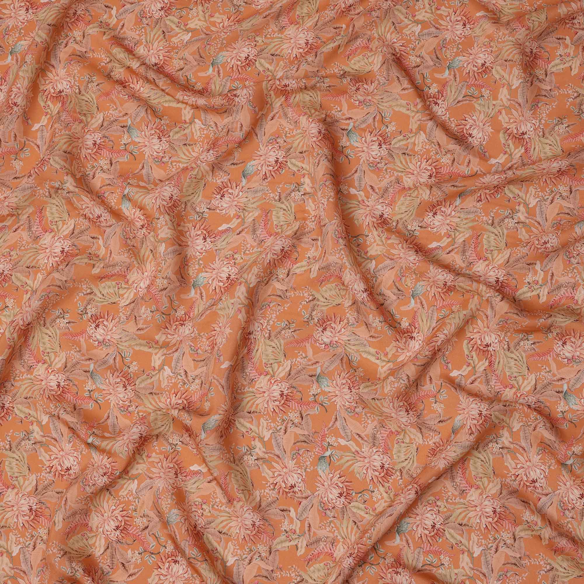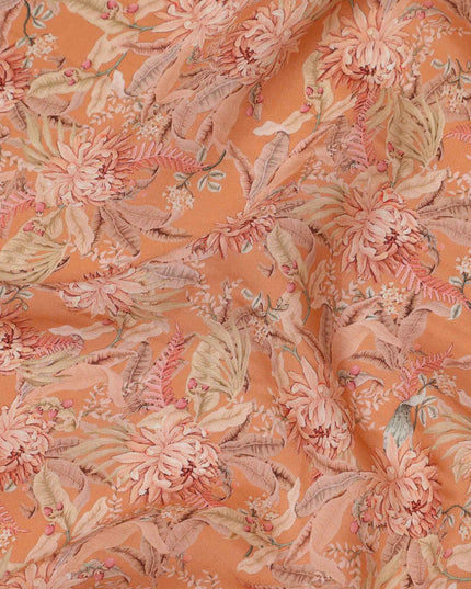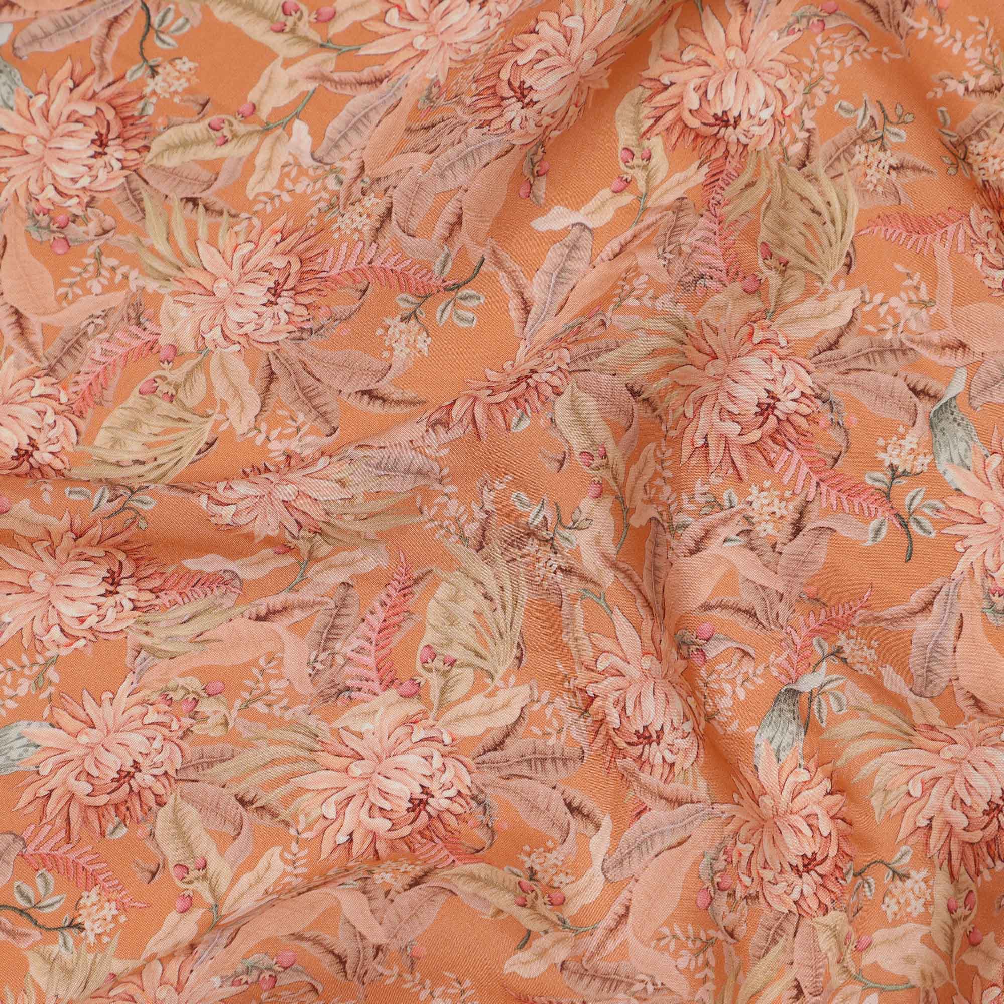 Peach Orange Tropical Floral Print Viscose Crepe Fabric, 110 Cms, India-D23480