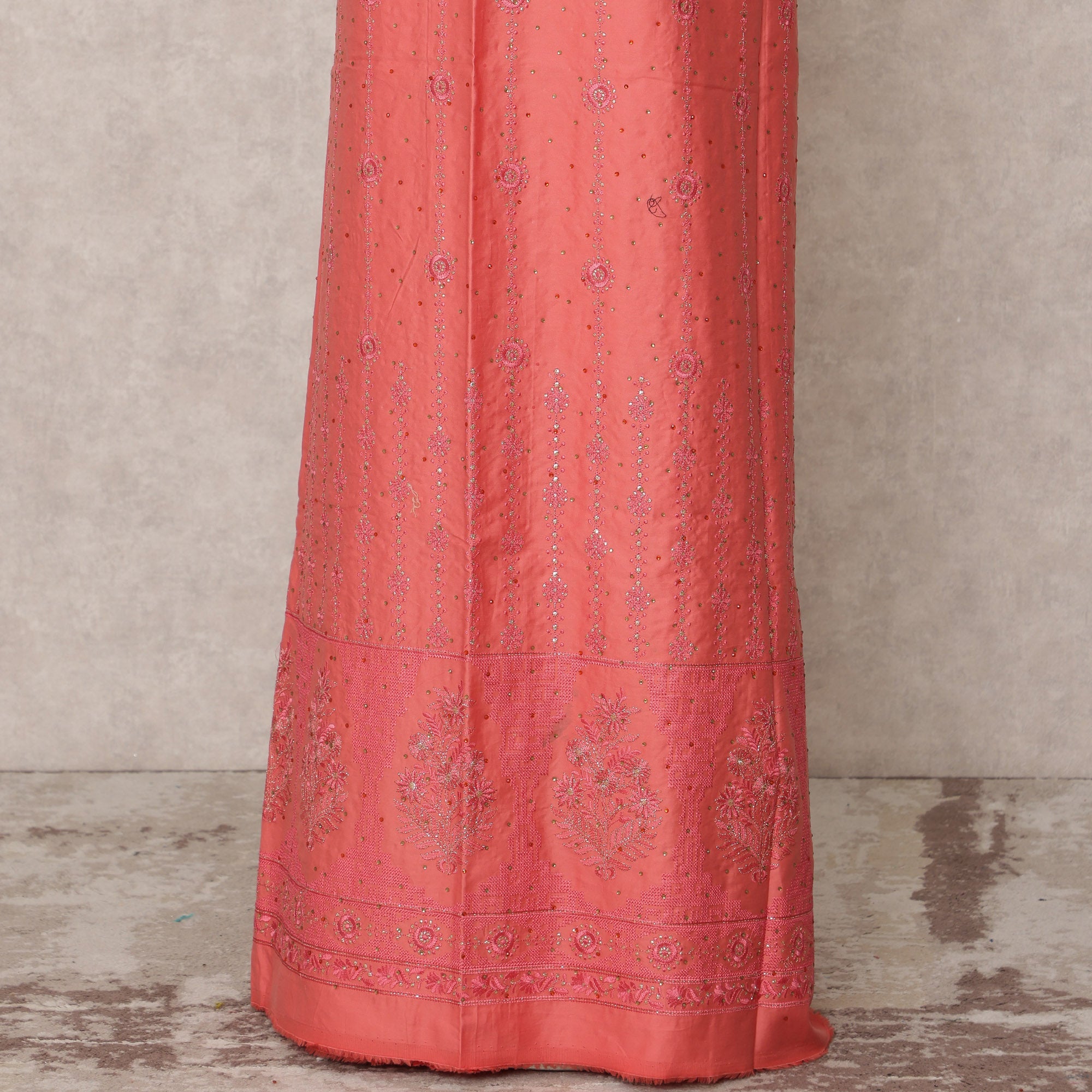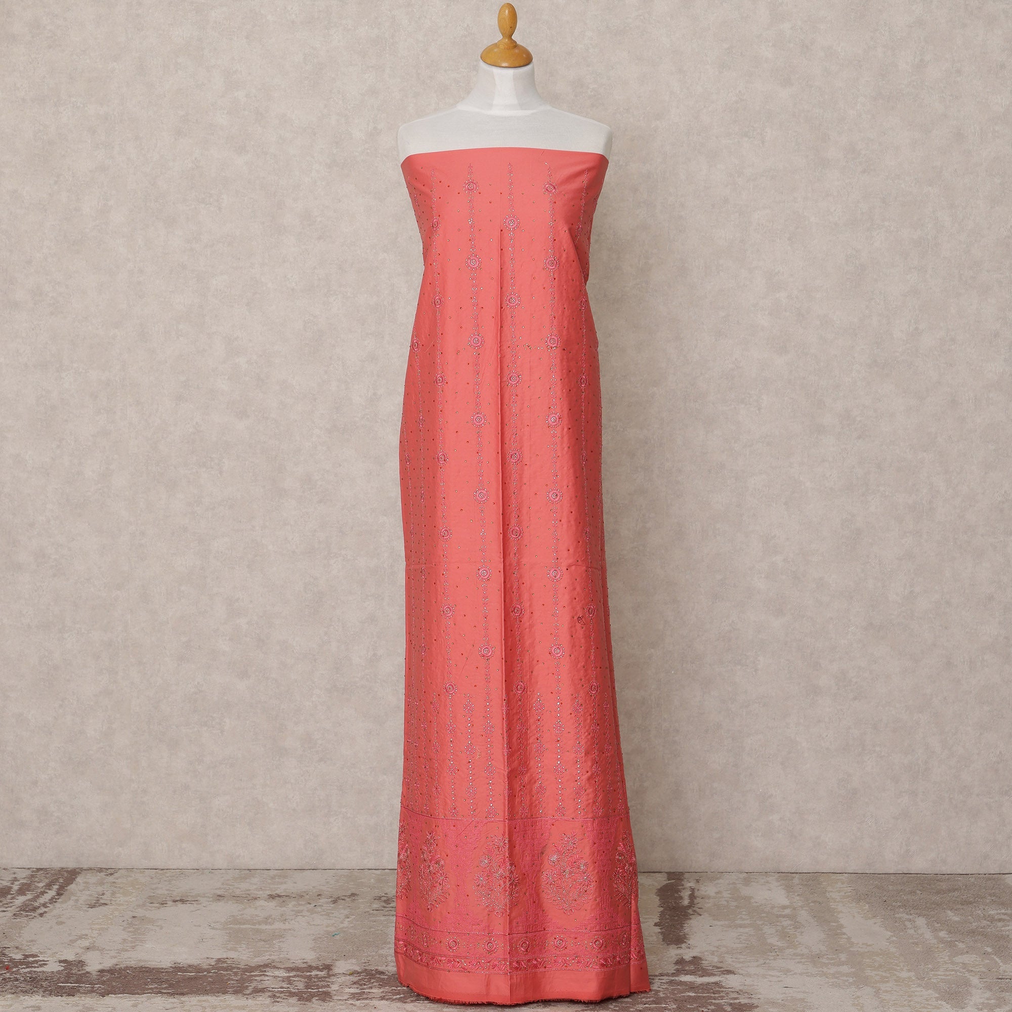Peach Pink Embroidered Blended Cotton Fabric with Subtle Floral Detailing, 130 Cms Width, 3.0 Mtrs Length, Made in India-D24136