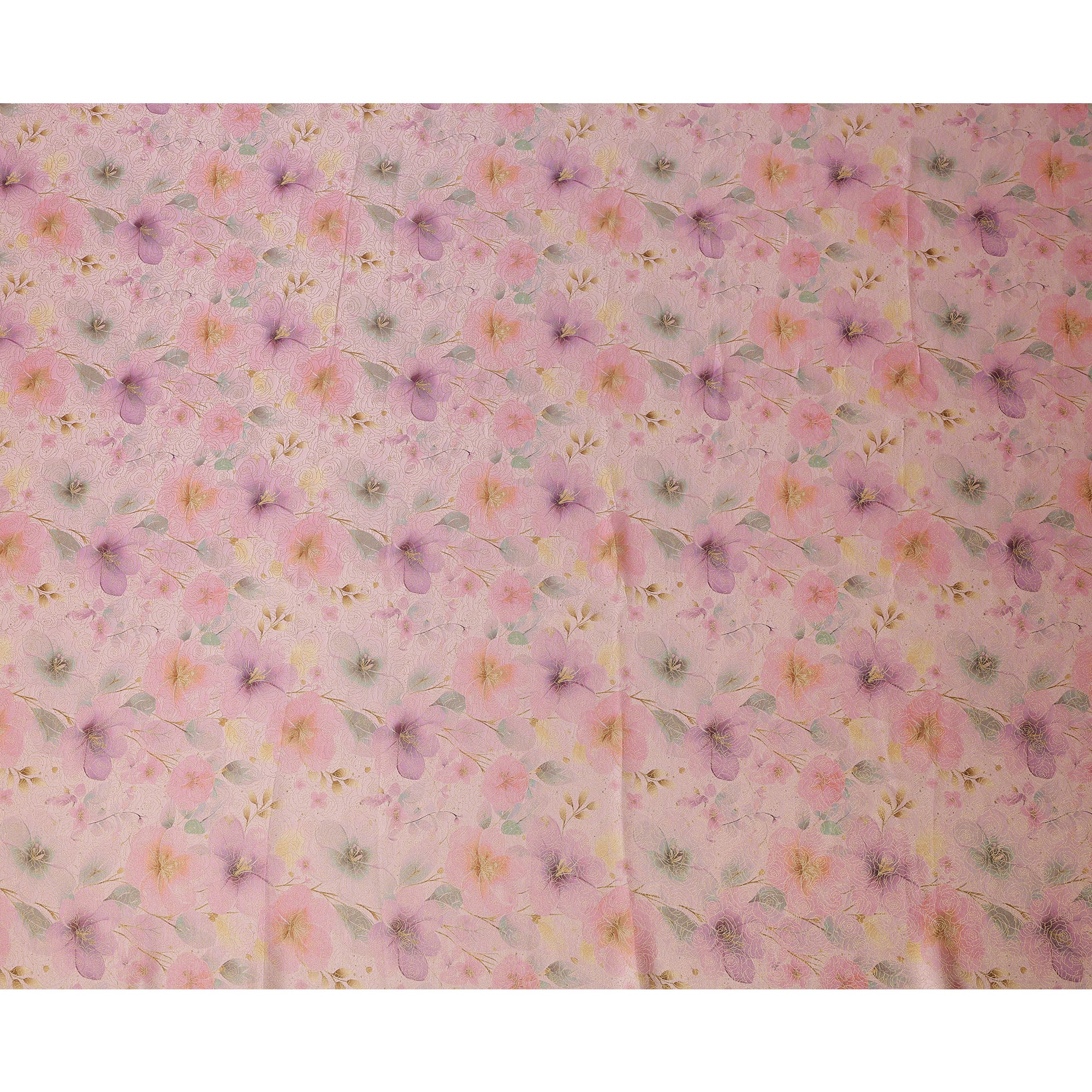 This Peach Pink Floral Printed Viscose Jacquard Metallic Fabric brings together a perfect blend of grace, shimmer, and modern sophistication. Crafted in India, this luxurious fabric features a soothing peach-pink base enhanced by delicate floral prints in soft lavender, coral, and mint tones. The subtle jacquard weave underneath adds a refined texture and dimension, while metallic accents lend a gentle, light-catching sheen that elevates the fabric’s visual appeal. With a width of 110 cm, this fabric drapes beautifully and offers a silky-smooth, breathable feel that’s ideal for sarees, blouses, dresses, and festive wear. The interplay of floral motifs and metallic threads creates an exquisite surface perfect for both traditional and contemporary fashion. Lightweight yet rich in character, it embodies timeless artistry with a touch of luxury, making it an excellent choice for special occasions, elegant apparel, and designer creations that demand refinement and charm.