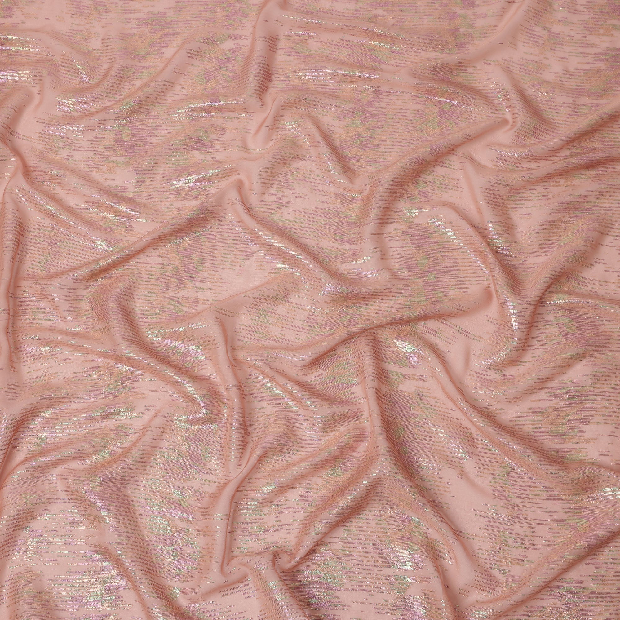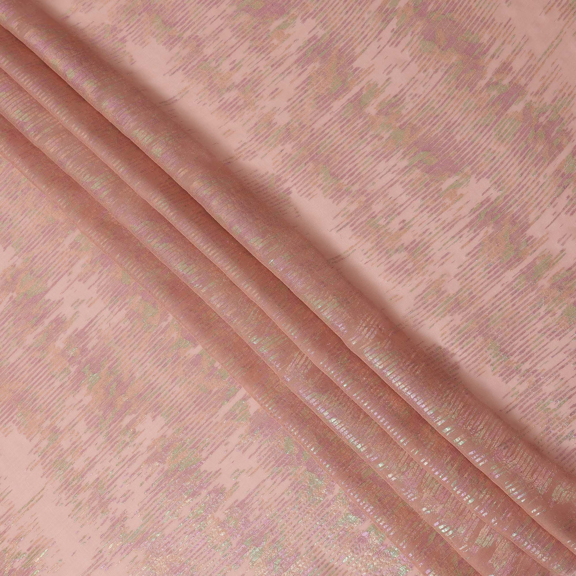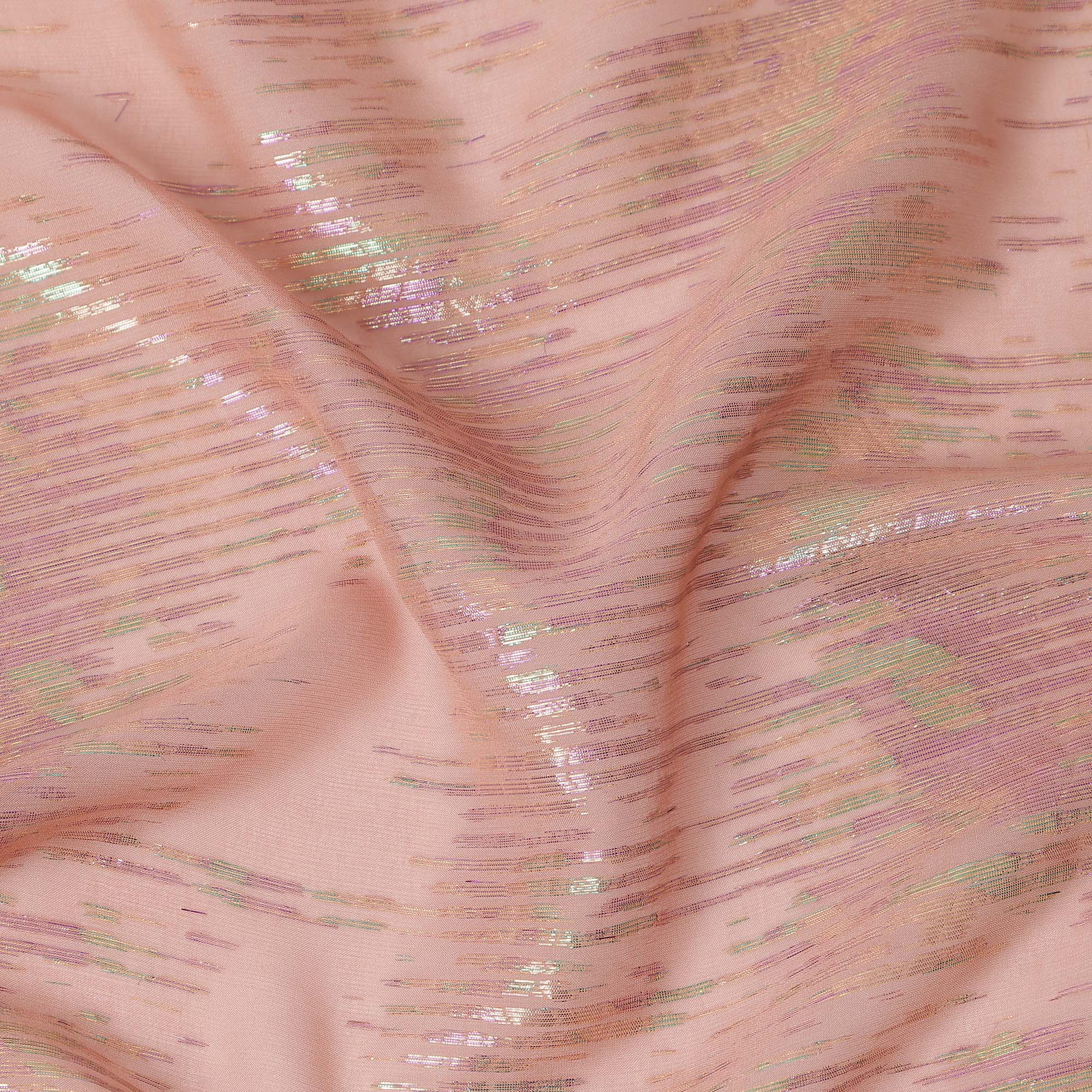 Peach Shimmer Striped Pure Silk Chiffon Fabric with Metallic Lurex, 110 Cms Width, South Korea-D25253