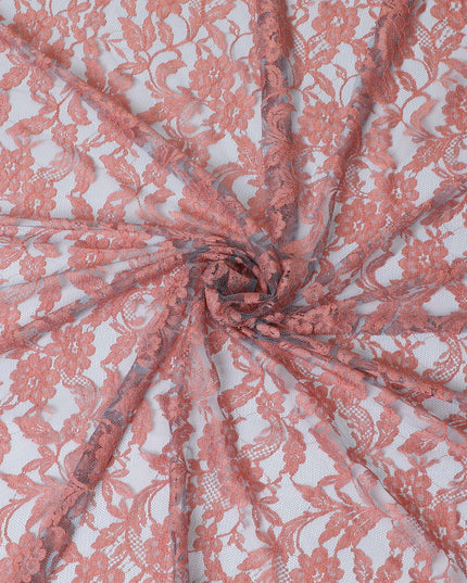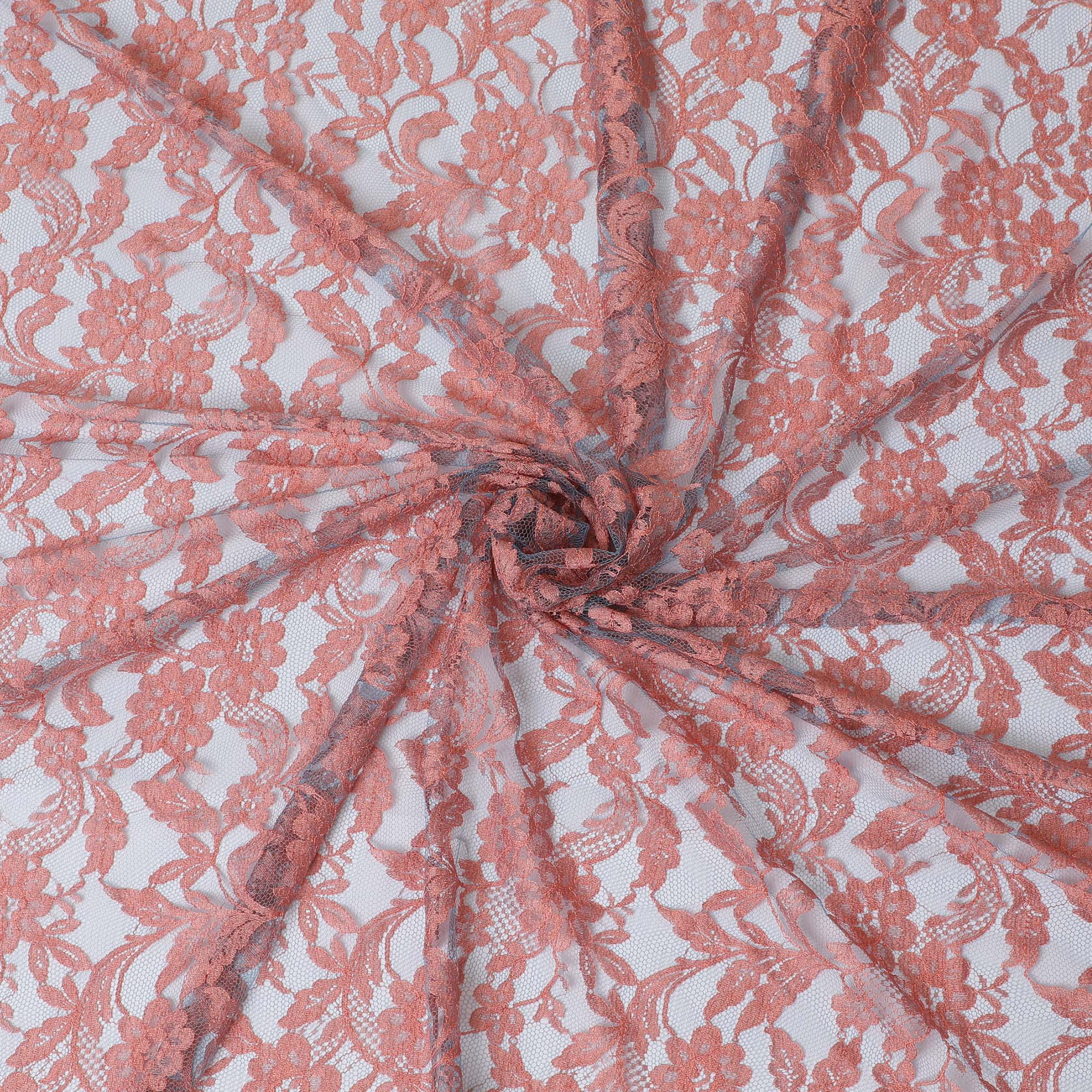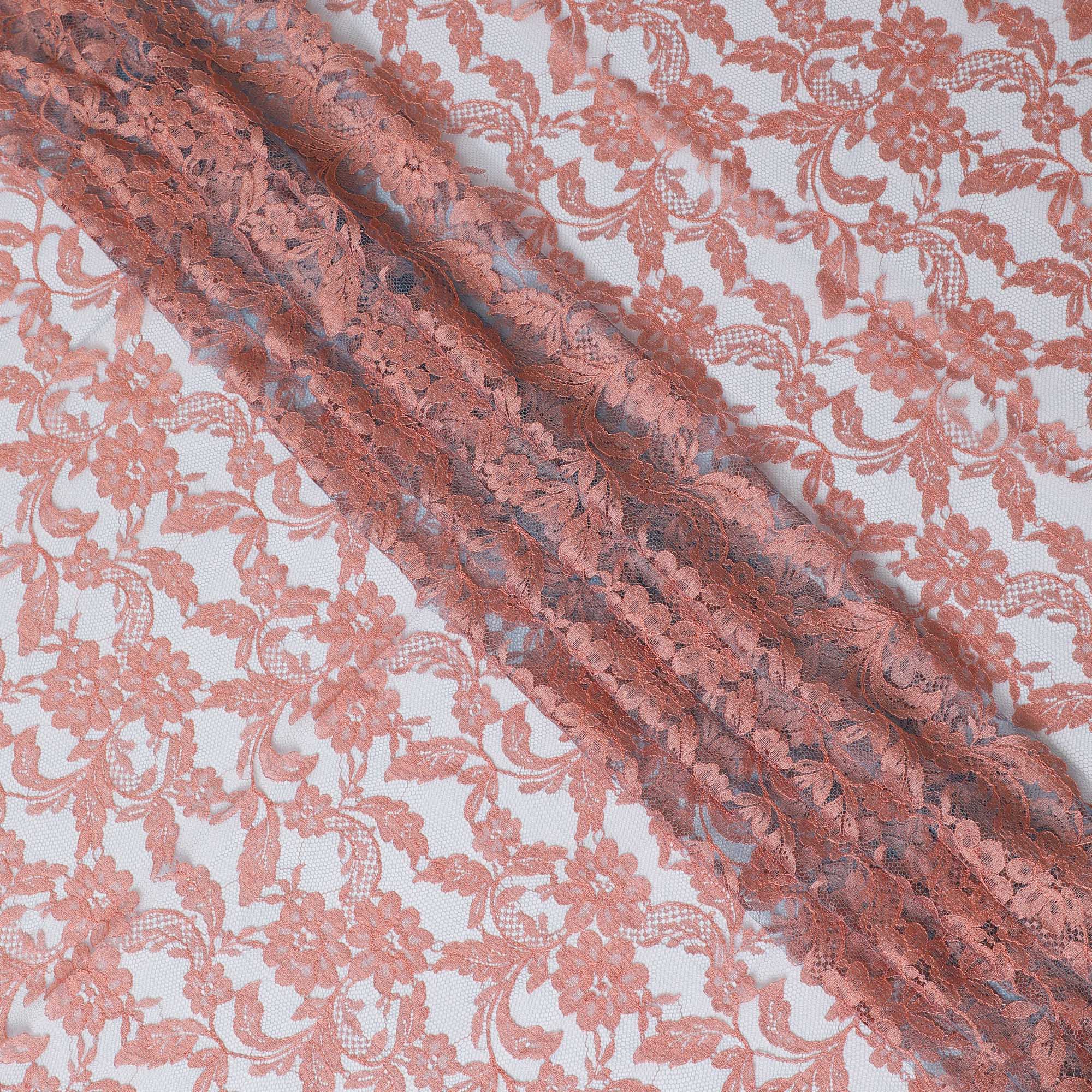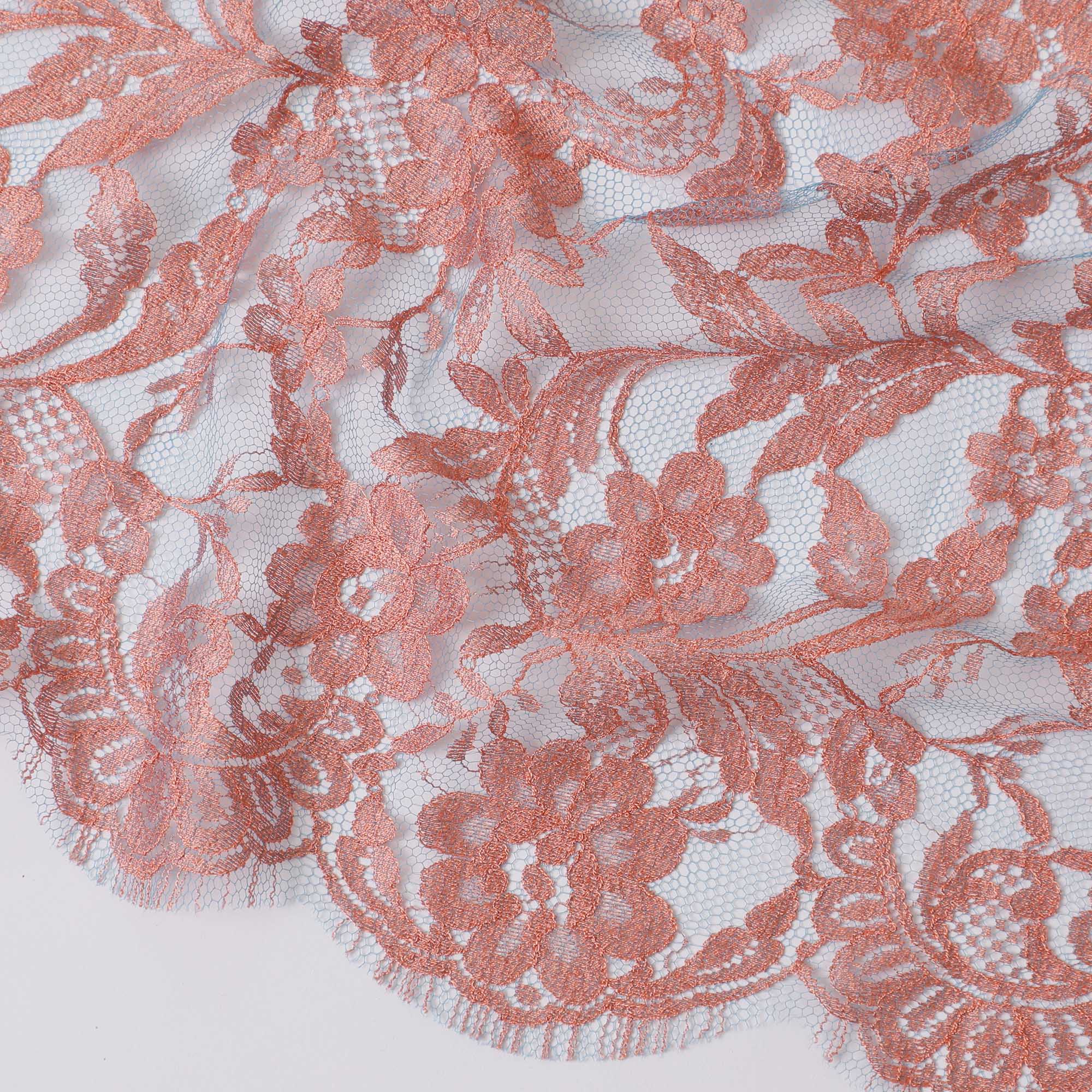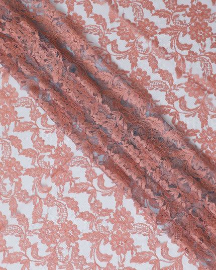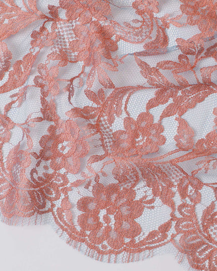 Peach, sky blue Premium pure two tone French Chantilly lace fabric in floral design-D14041S