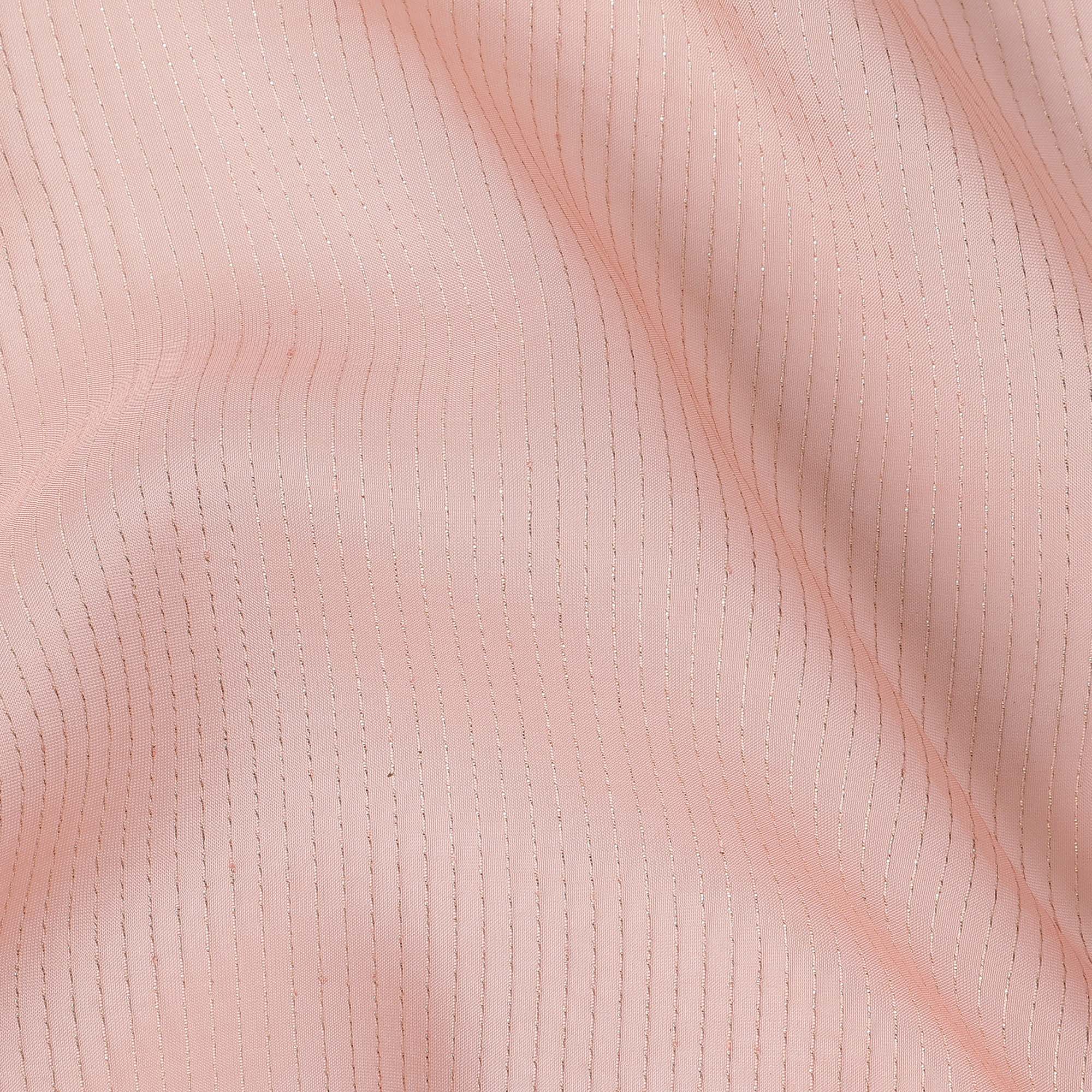 Peach Striped Synthetic Organza Fabric, 110 Cms, India-D25475