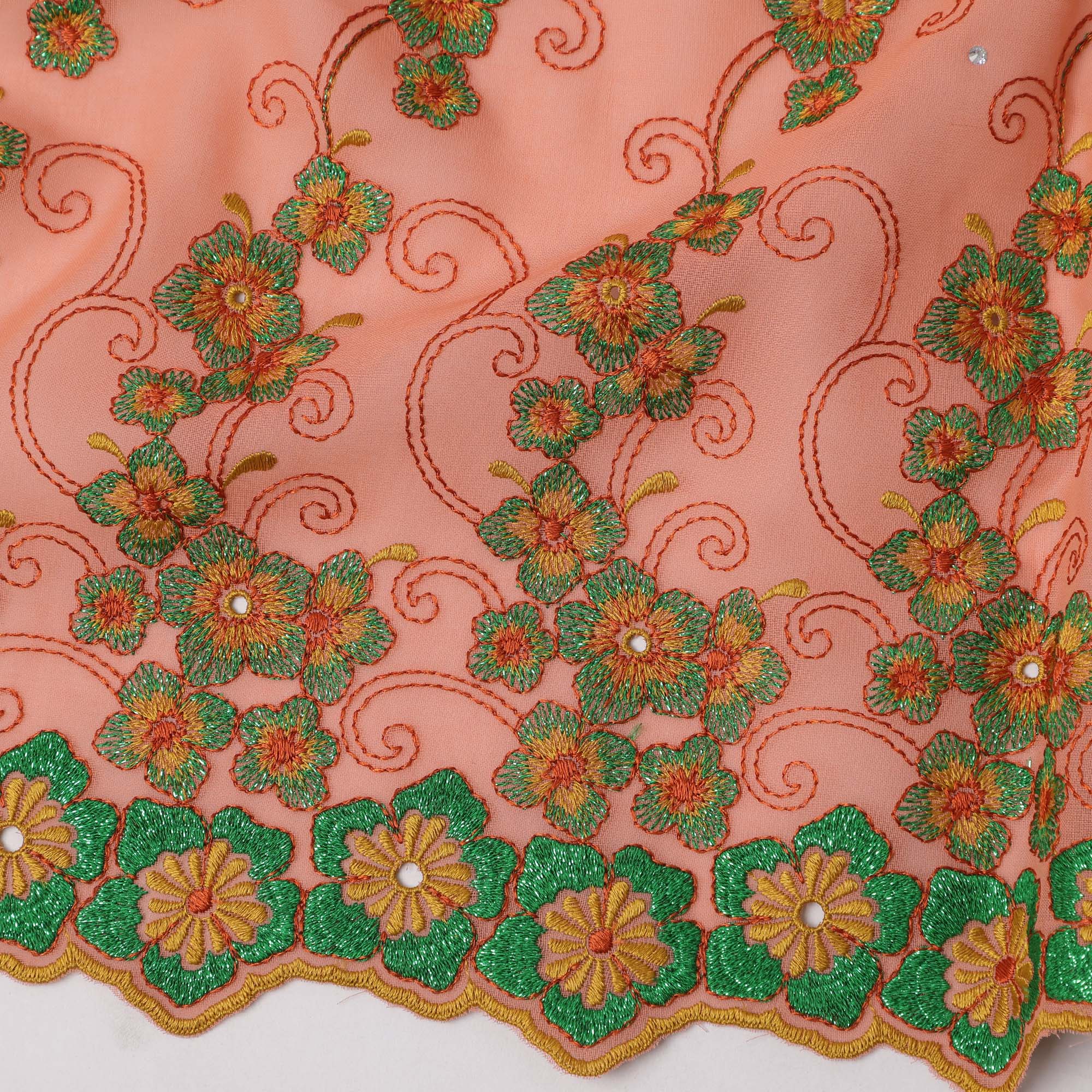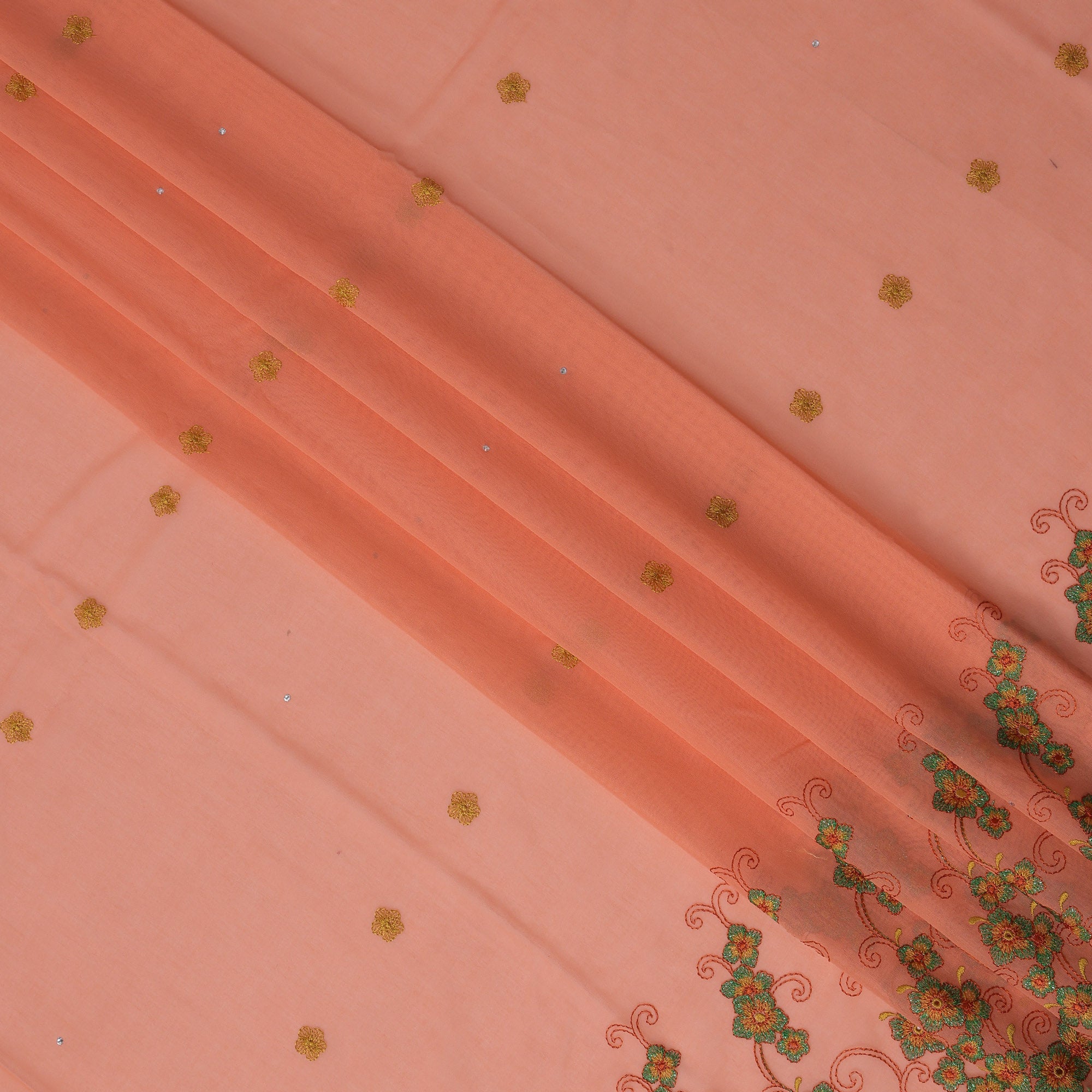 Peach cotton voile fabric with golden embroidery and delicate stone work.
