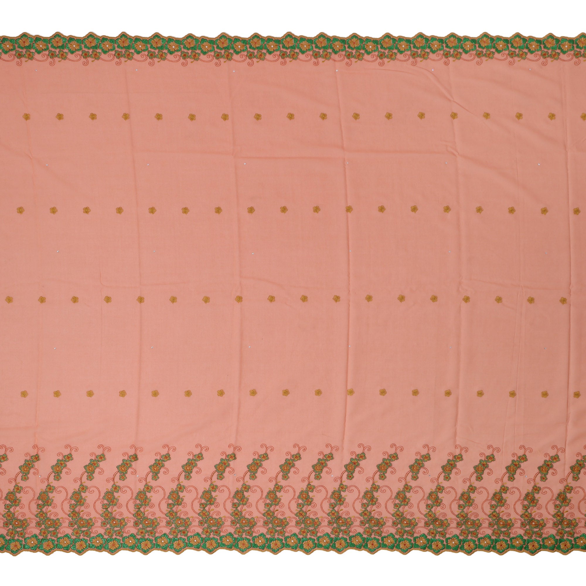 Peach Traditional Sudanese Thobe in Pure Cotton Voile Embroidery Fabric with Stone Work, 4.5 Mtrs Piece, 140 Cms Width, Made in Switzerland-D23277