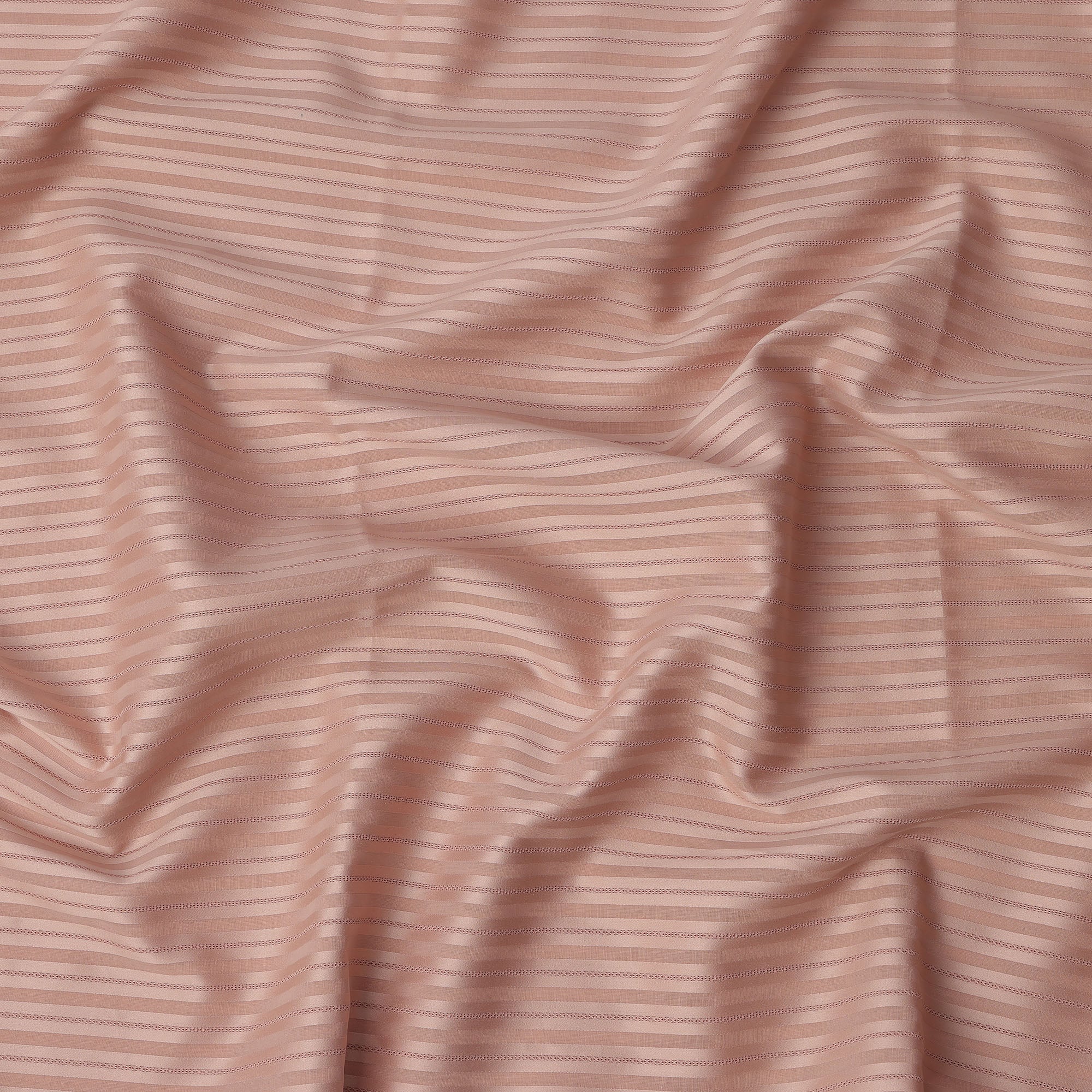 Peach with Self Stripes Premium Swiss Poly Cotton Fabric, 150 Cms, Switzerland-D25404