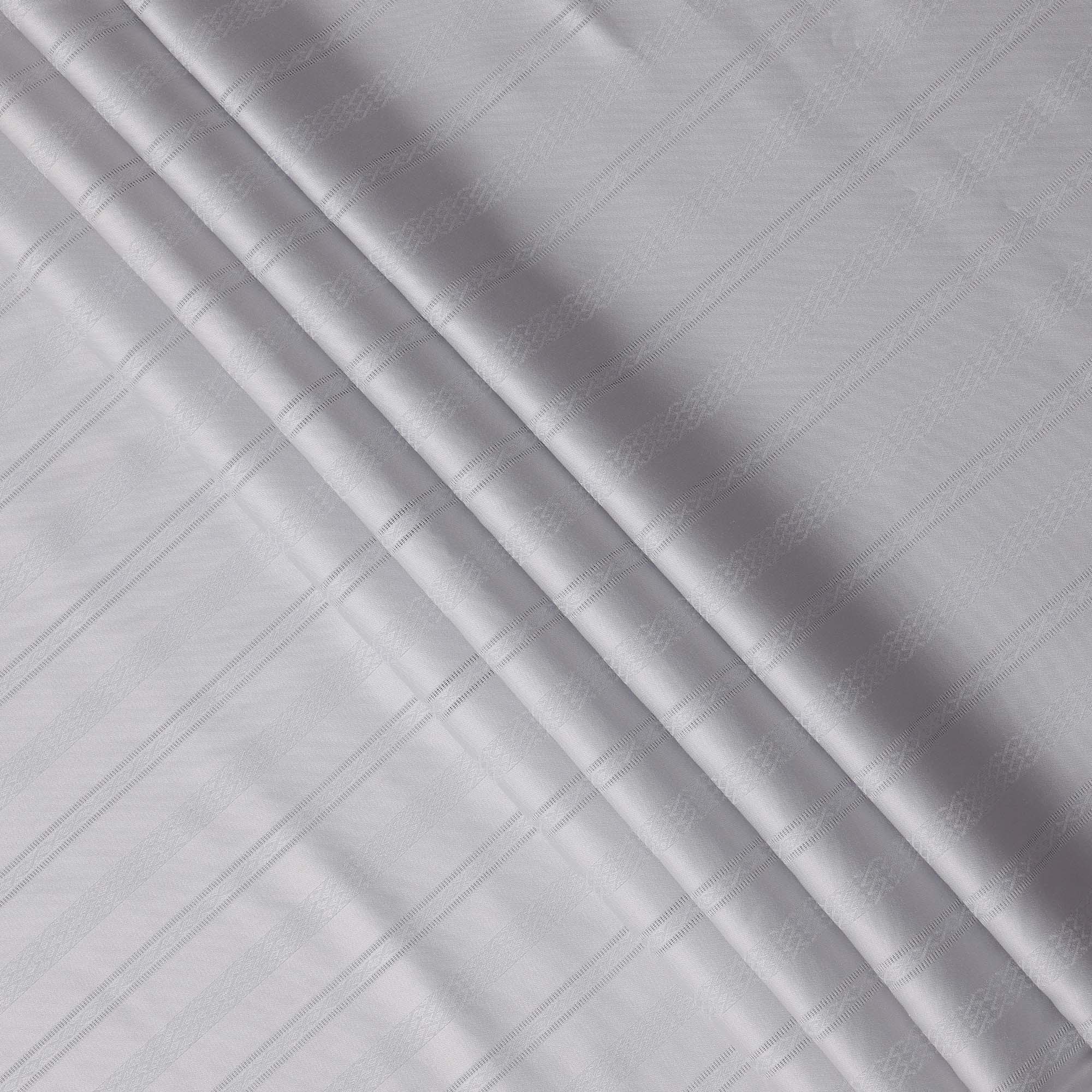Pearl Grey with Fine Self Stripes Premium Swiss Poly Cotton Fabric, 150 Cms, Switzerland-D25403