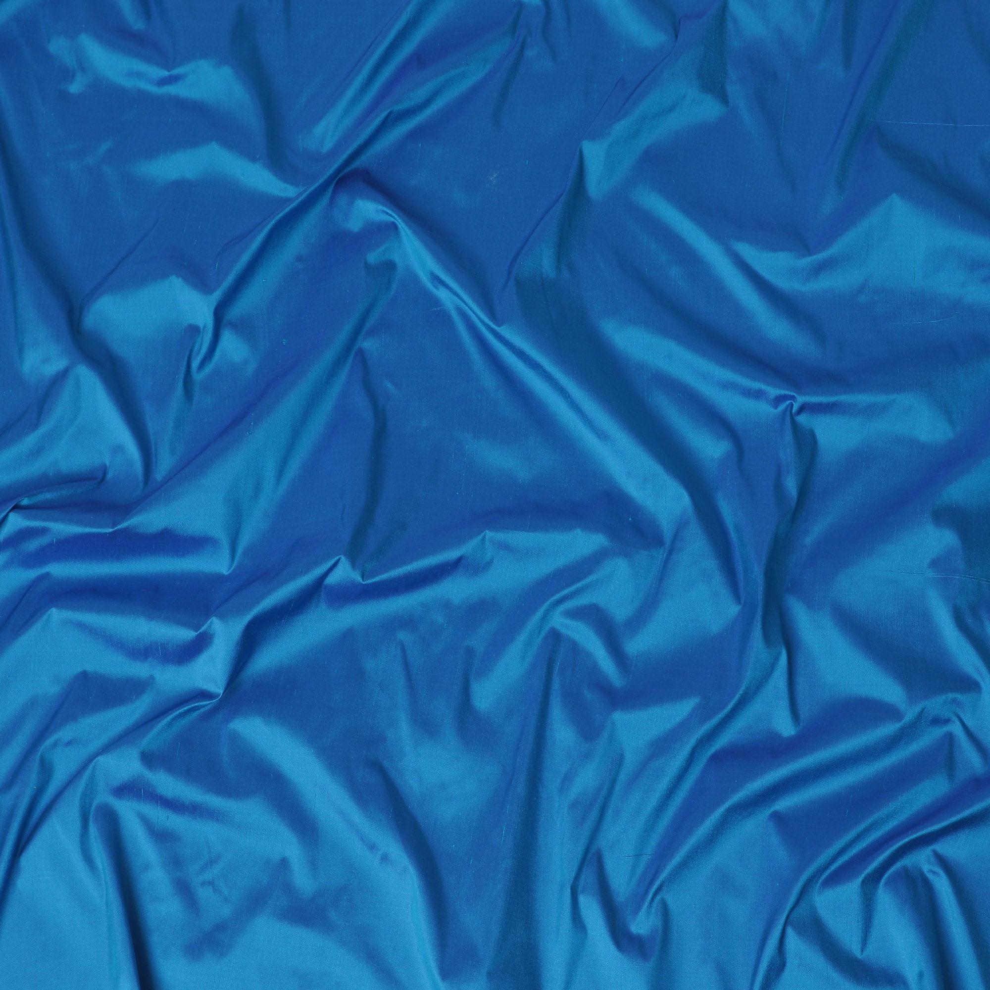 Petrol blue plain premium pure raw silk fabric-D12043