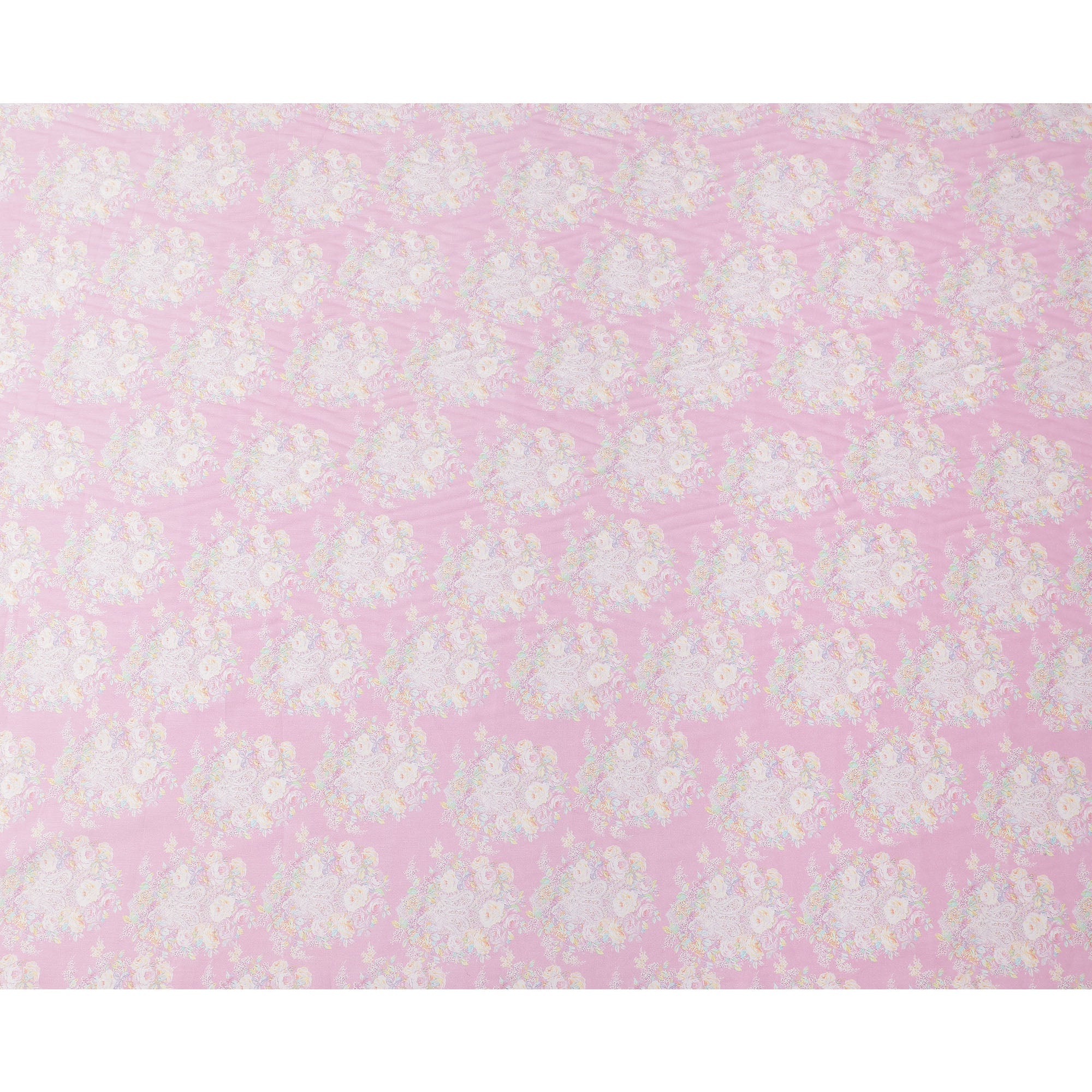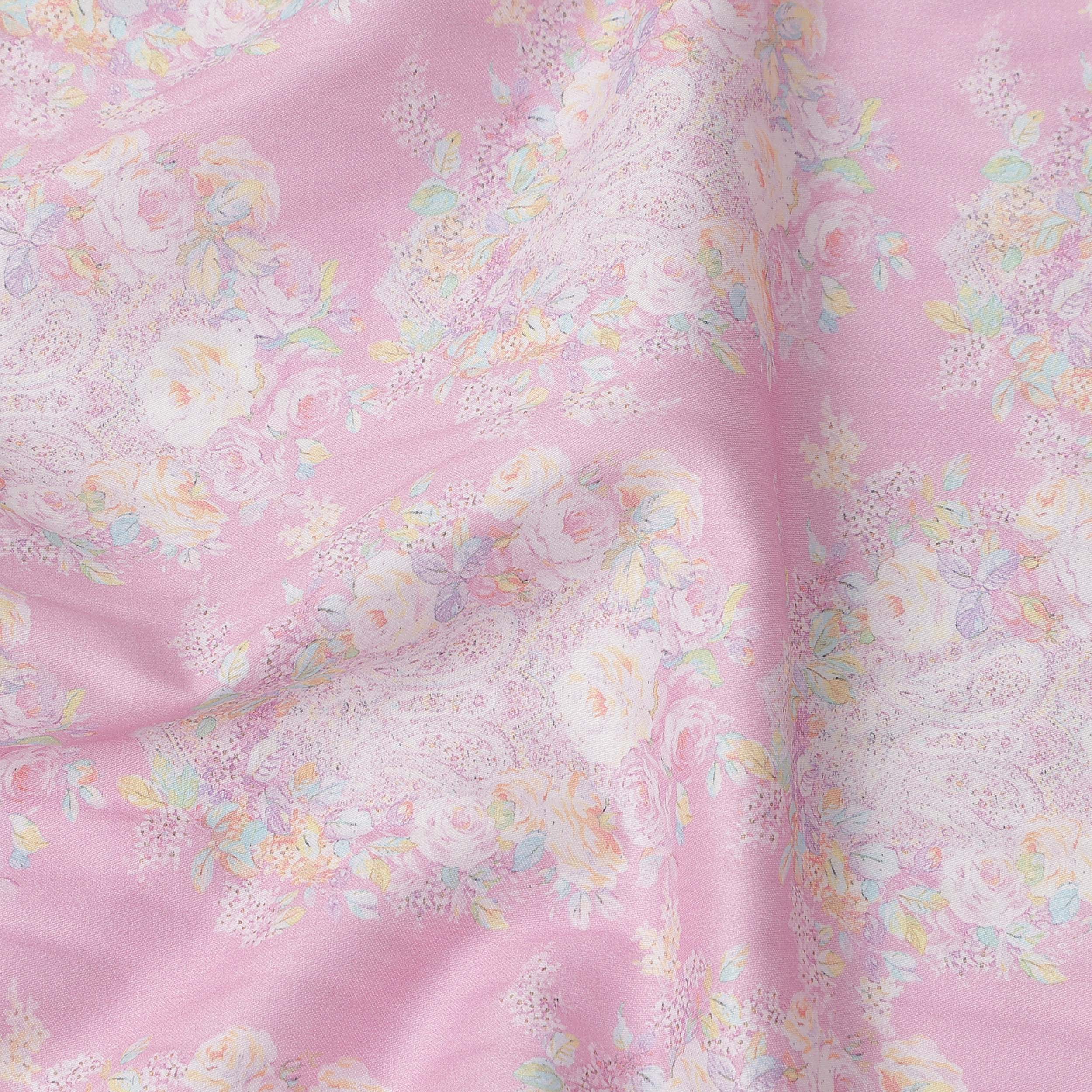 Pink Base with Pastel Floral Print Pure Cotton Satin Fabric, 140 Cms Width, Made in India-D26022