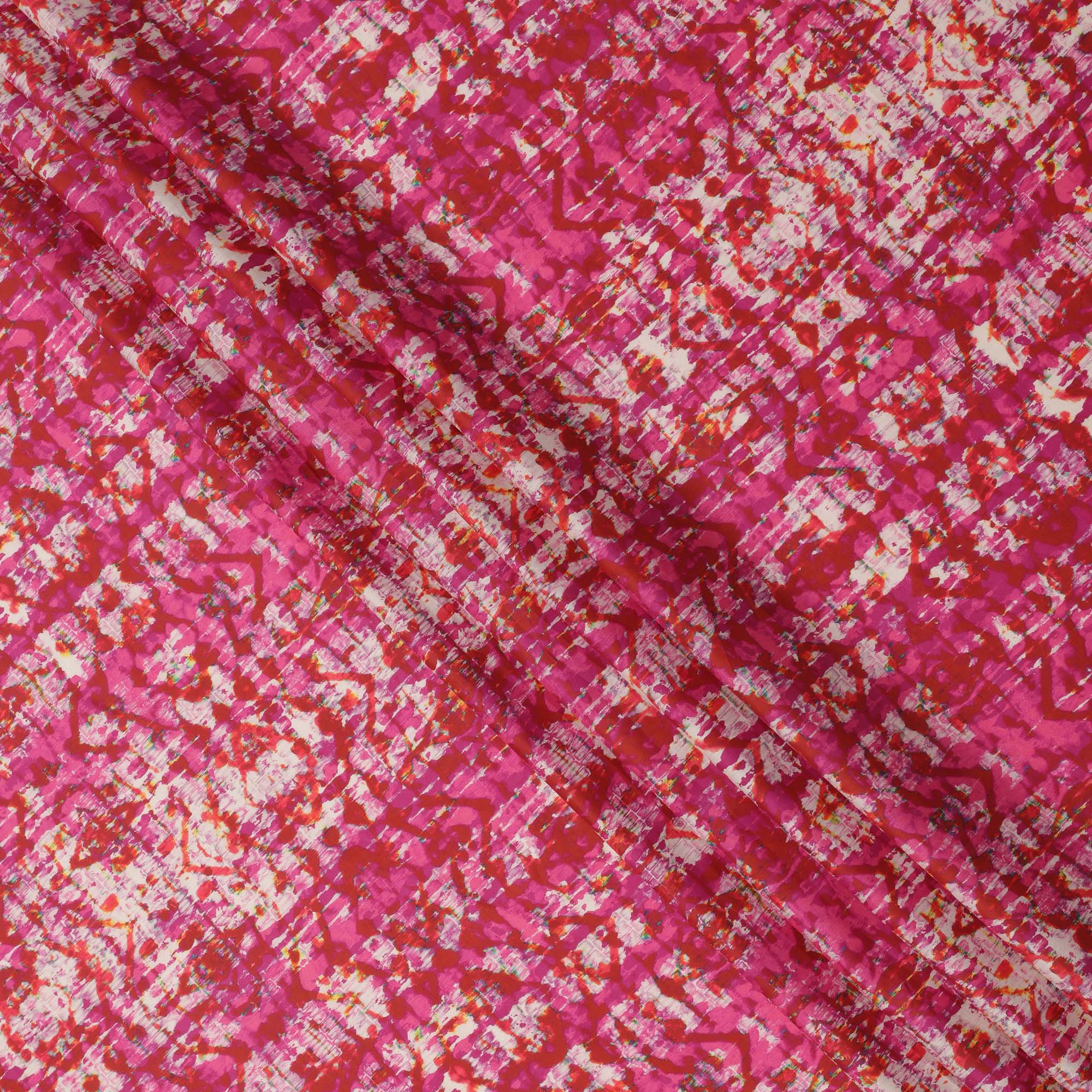 This Pink Cotton Lawn Fabric features a vibrant abstract tie-dye inspired print that creates an eye-catching textured look, perfect for bold and expressive fashion. The dominant shades of hot pink and red are artfully balanced with subtle hints of white and orange, forming an energetic pattern that feels both contemporary and artistic. Made from lightweight and breathable cotton lawn, this fabric ensures unmatched comfort for all-day wear in warm climates. Its soft texture and fluid drape make it ideal for crafting stylish kurtis, tunics, summer dresses, and breezy shirts. With a width of 110 cm, it offers generous material for versatile design needs. Whether you're designing for casual outings or unique statement pieces, this Made in India fabric brings color, style, and practicality together in one beautiful yardage.