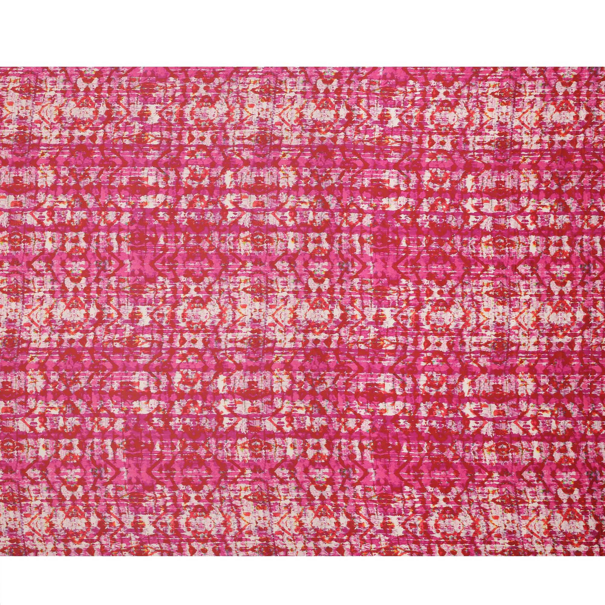 Vibrant pink and red abstract tie-dye style print adds artistic flair