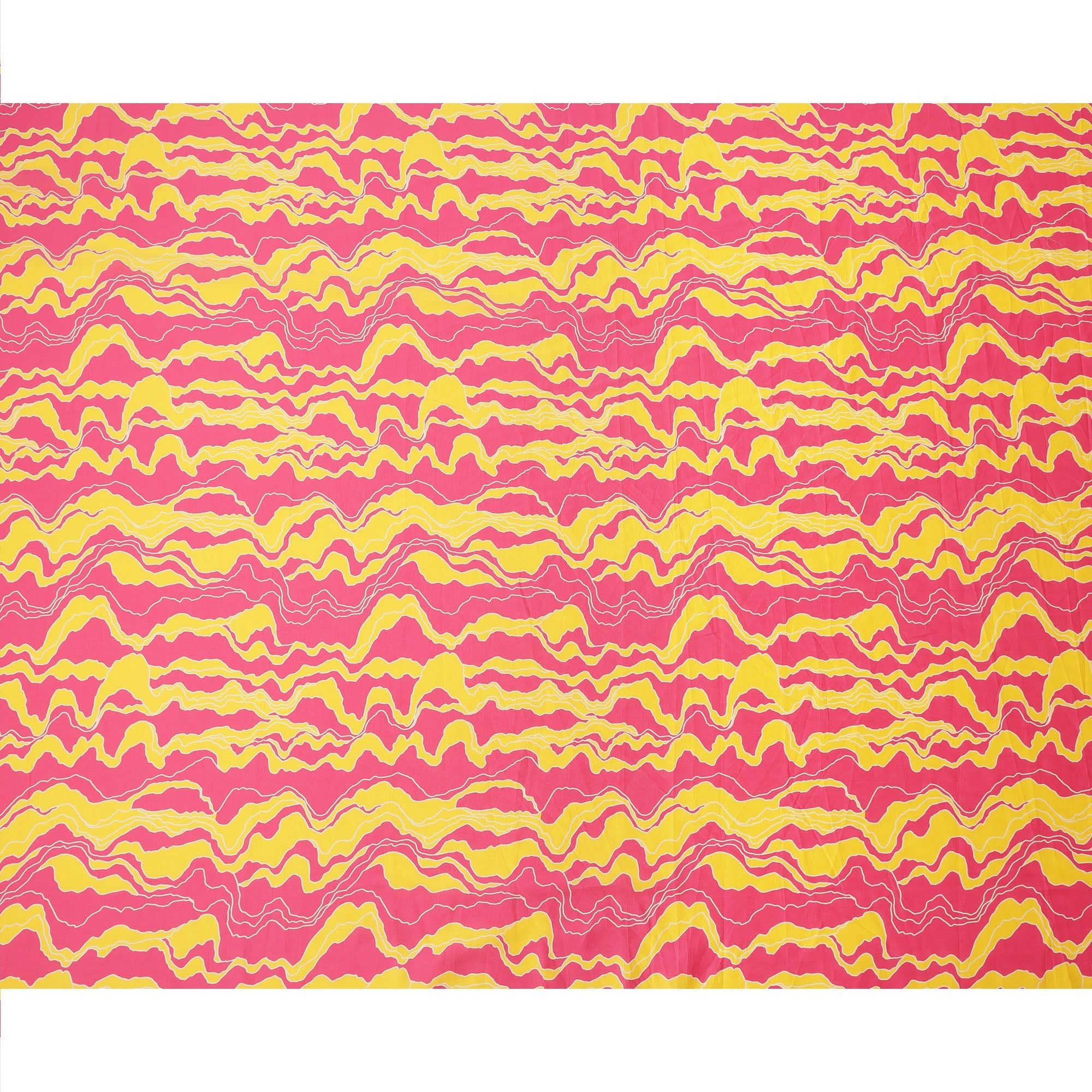 This Pink Cotton Lawn Fabric features a lively wave-inspired print in vibrant yellow and white, creating a striking abstract flow... Read more Read more