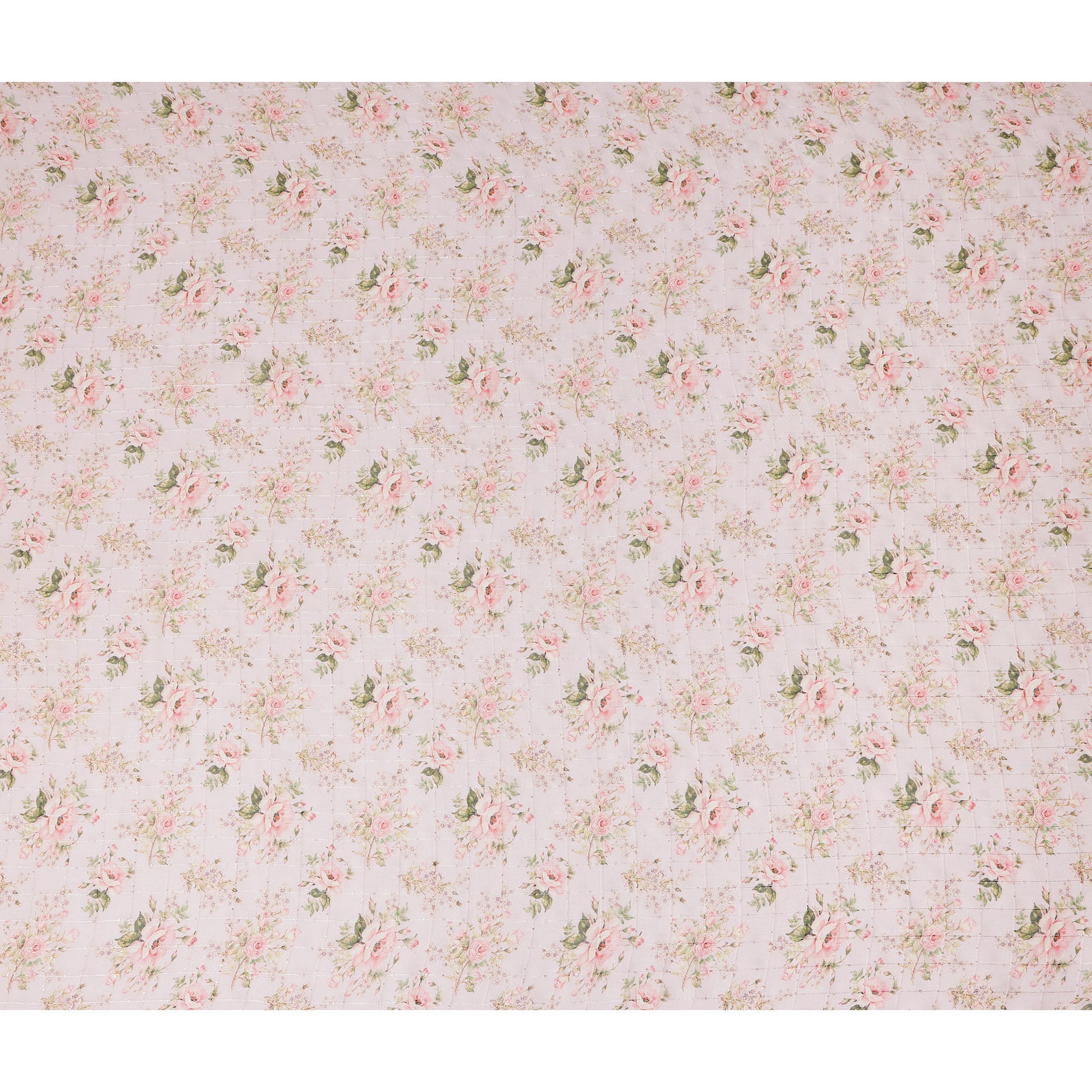 Delicate pink floral bouquet print adds a romantic feminine aesthetic perfect for dresses blouses scarves and skirts.