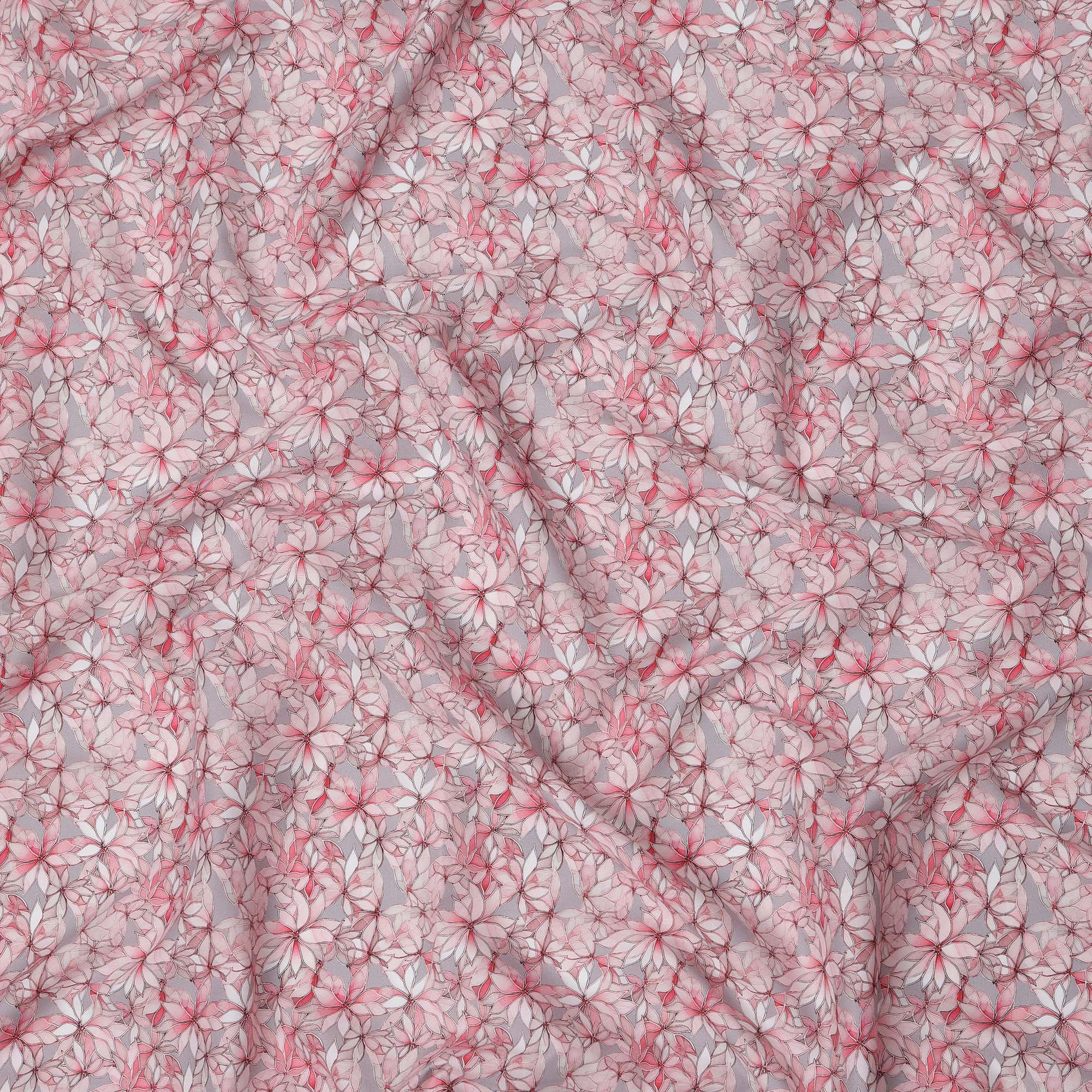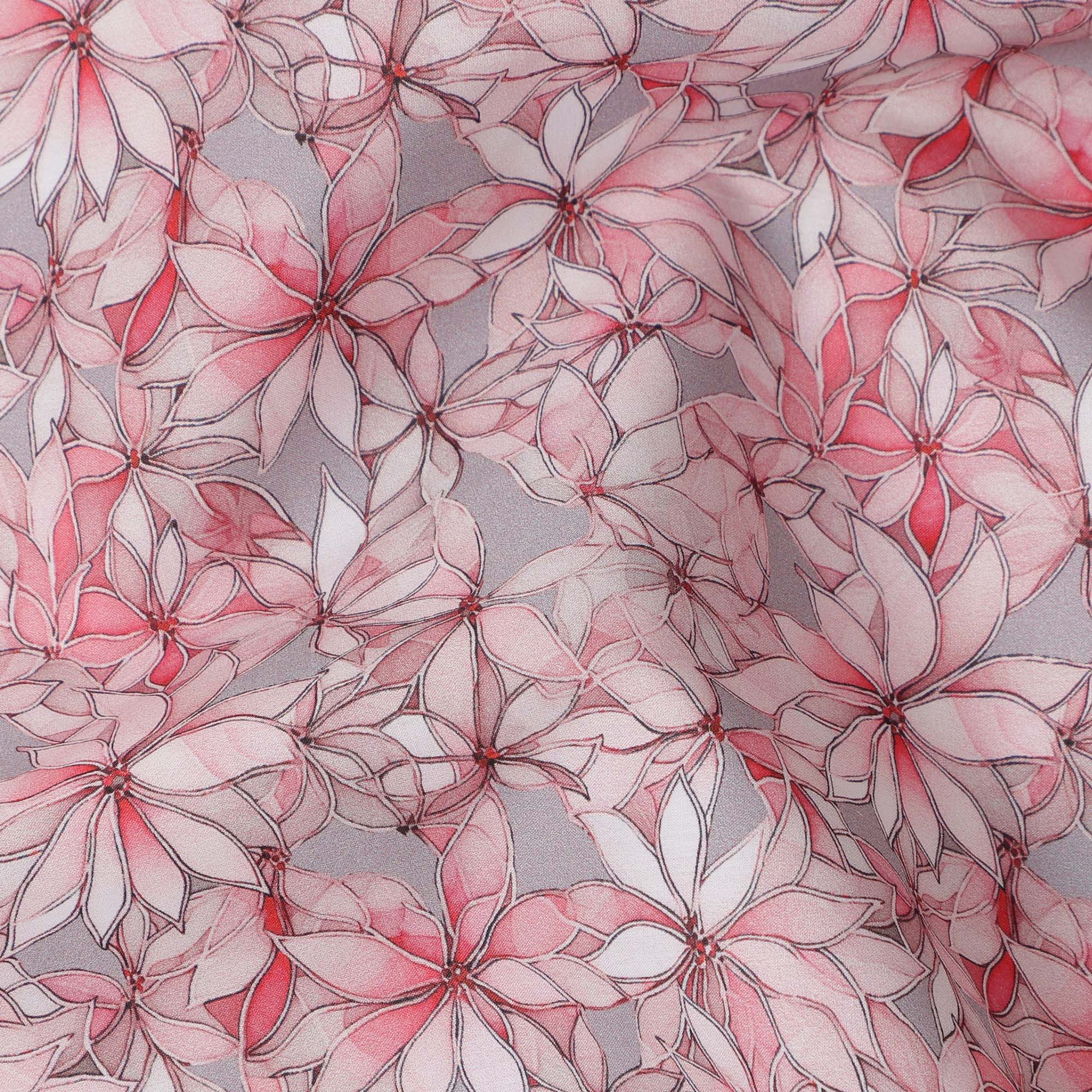 Pink Floral Outline Print Cotton Lawn Fabric with Watercolor Effect, 110 Cms Width, Made in India-D24317
