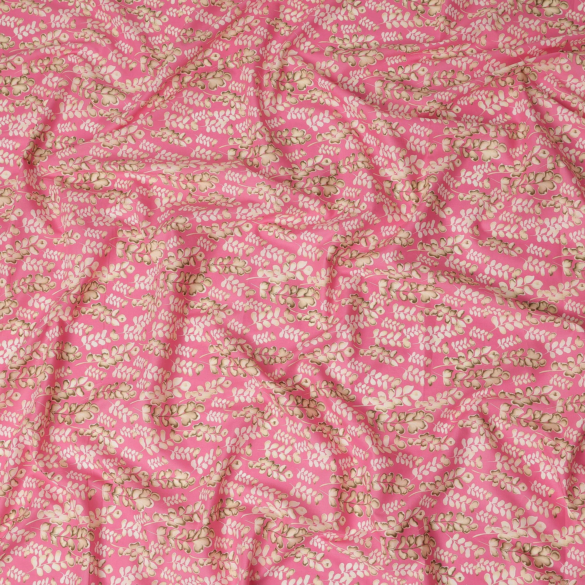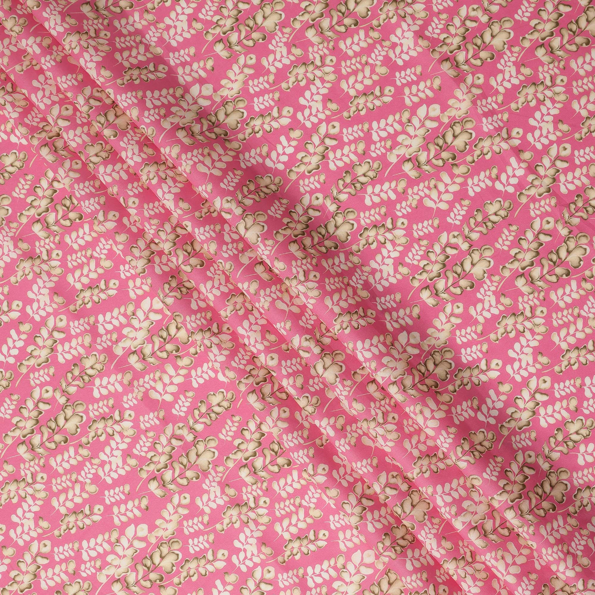 Pink Leaf Printed Cotton Lawn Fabric Soft Lightweight Floral Design Sewing Material 4.0 Meters Length 110 Cms Width India-D27643