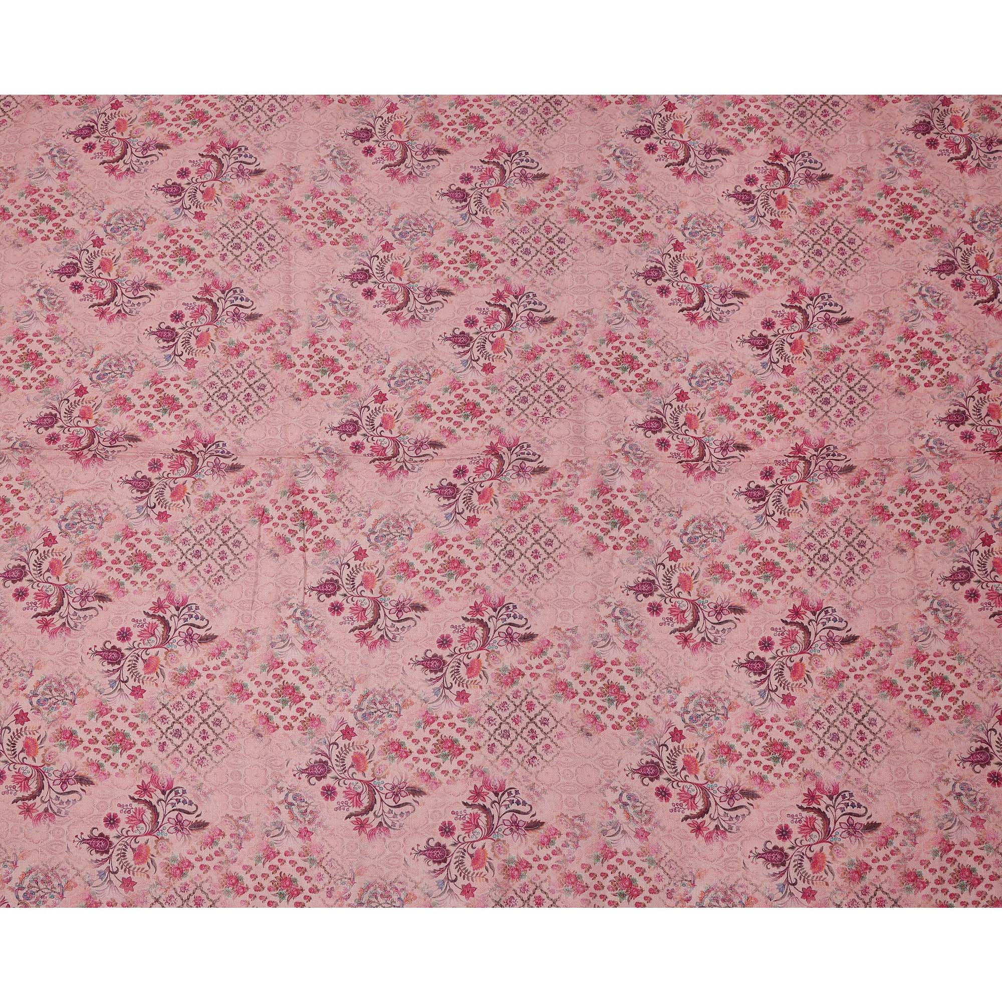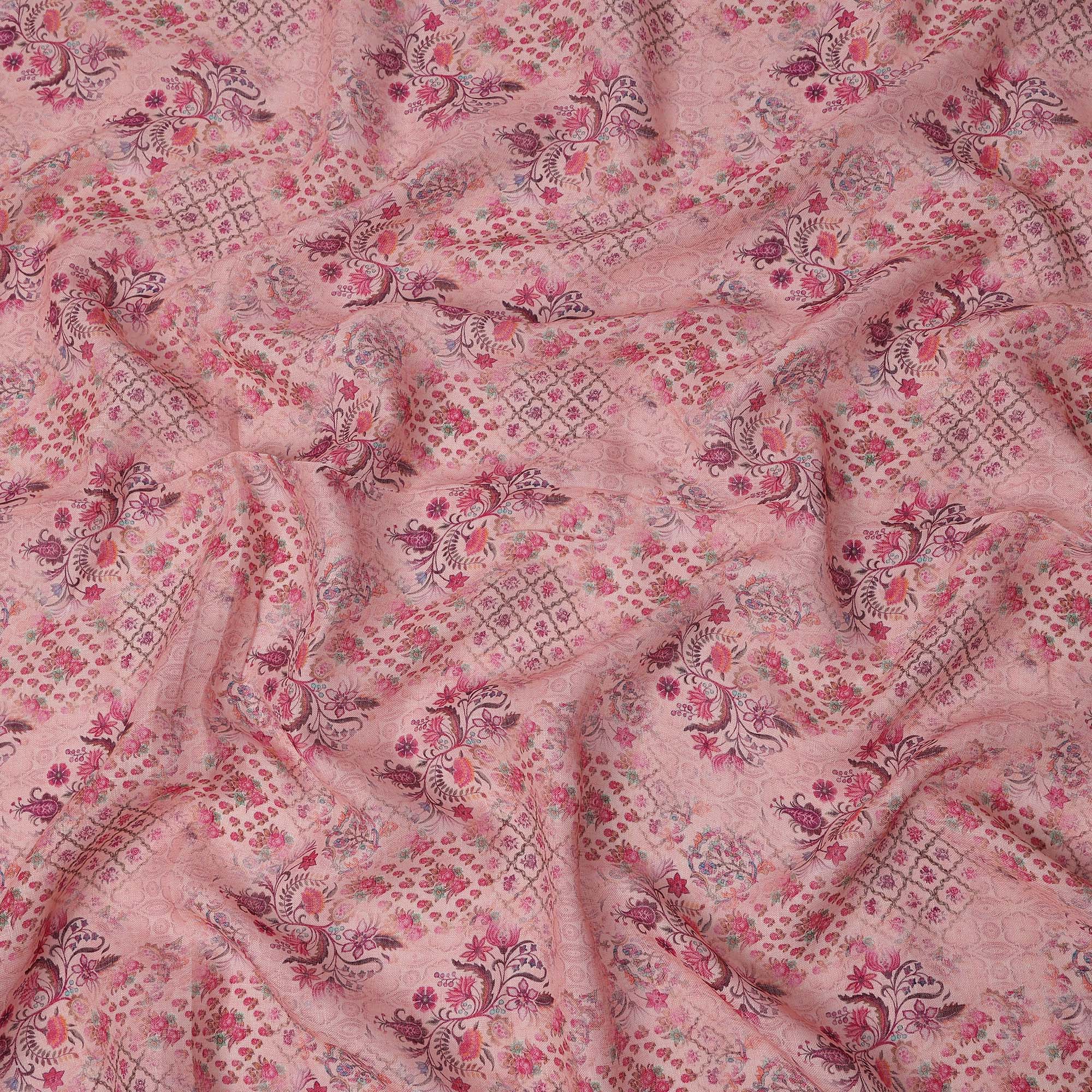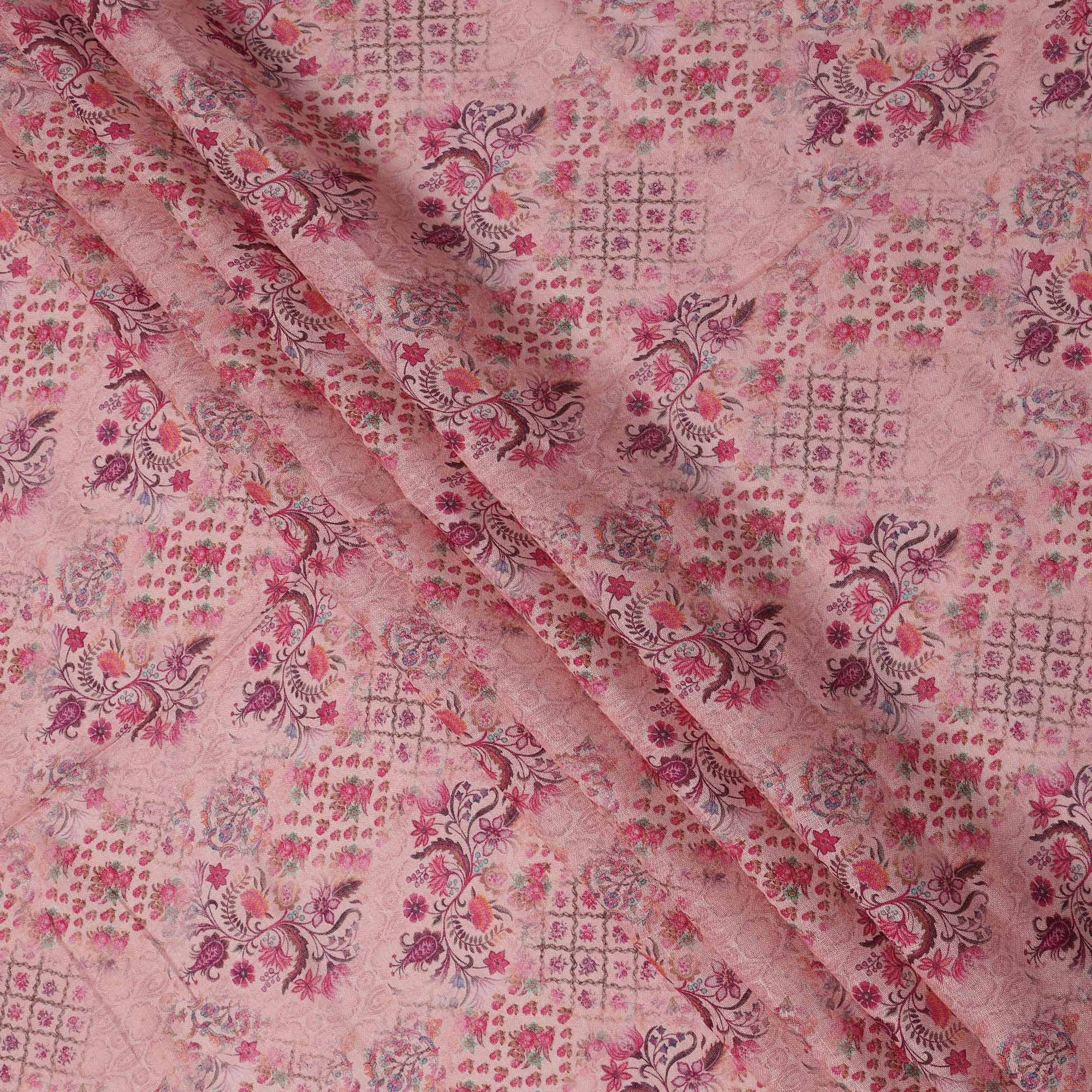 Pink Linen Floral Printed Fabric with Intricate Motifs and Geometric Design, 110 Cms Width, Made in India-D25085