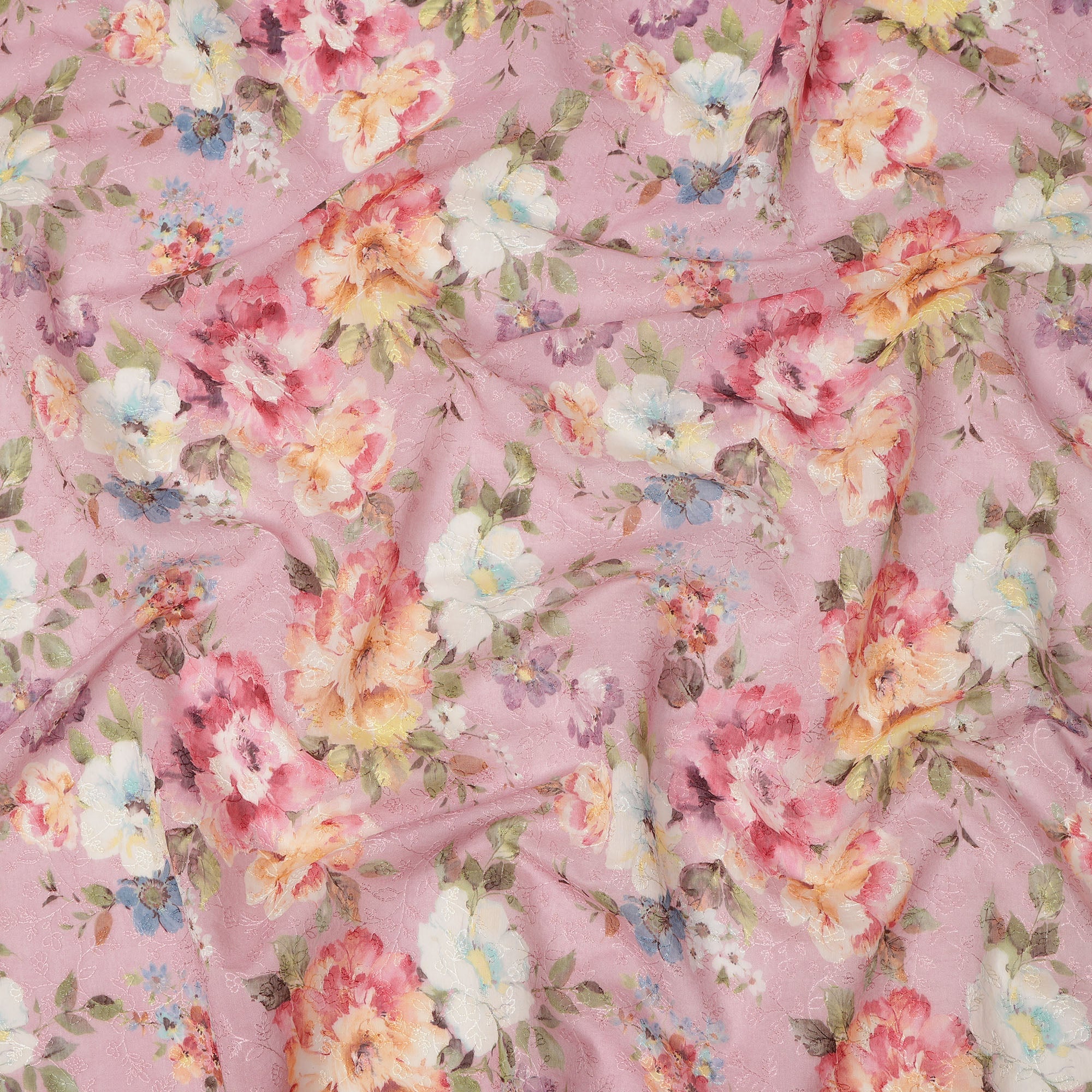 Pink Multicolor Floral Printed Viscose Cotton Fabric, 110 Cms Width, India-D24827