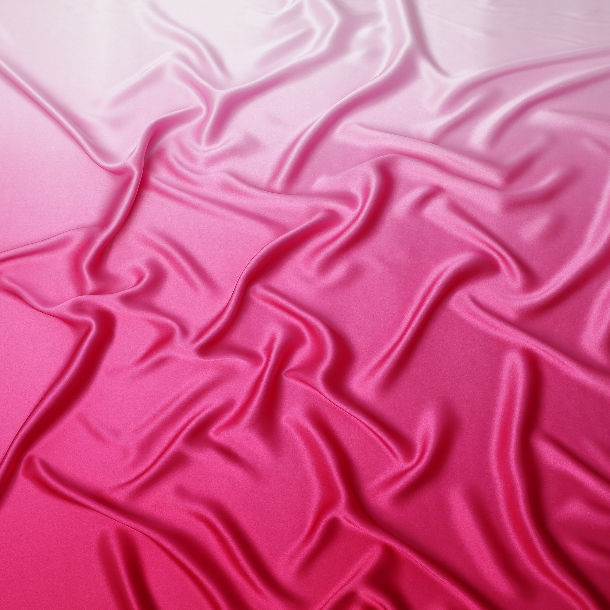 Pink ombre dyed pure silk satin fabric with a rich luster
