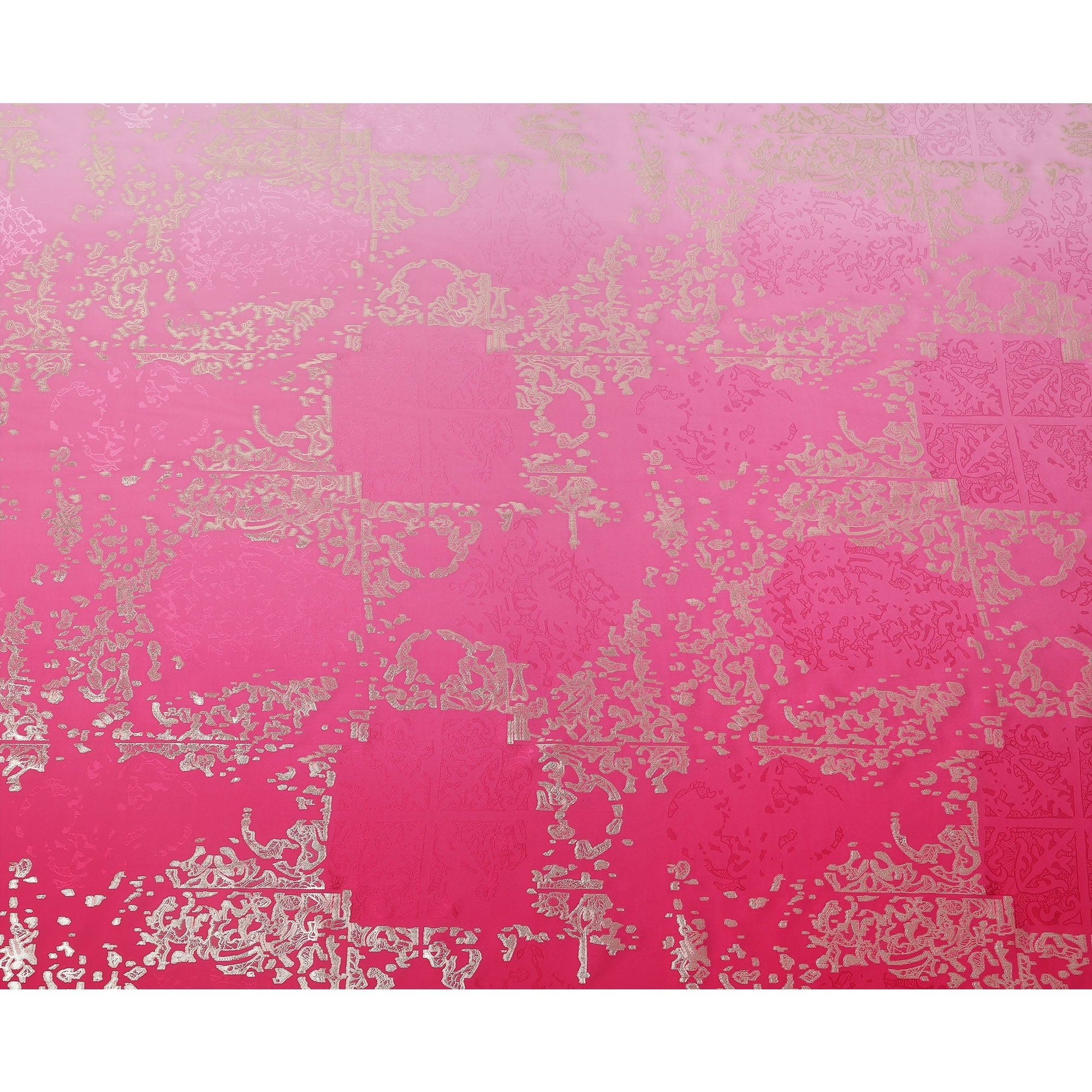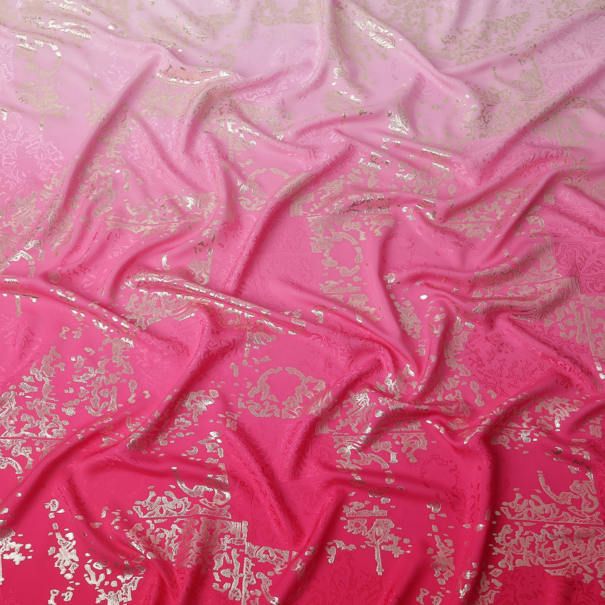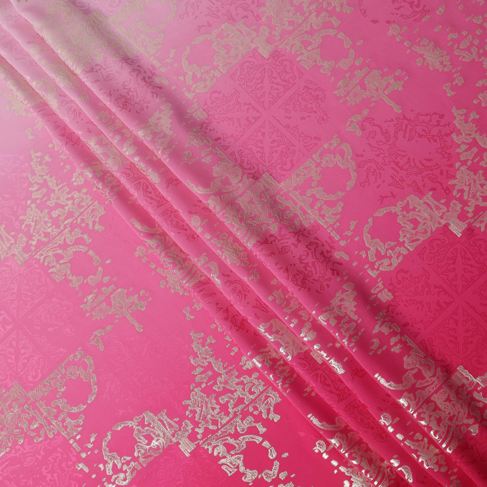 Pink Ombre with Golden Floral Motif Pure Silk Satin Fabric, 140 Cms Width, Made in South Korea-D26002