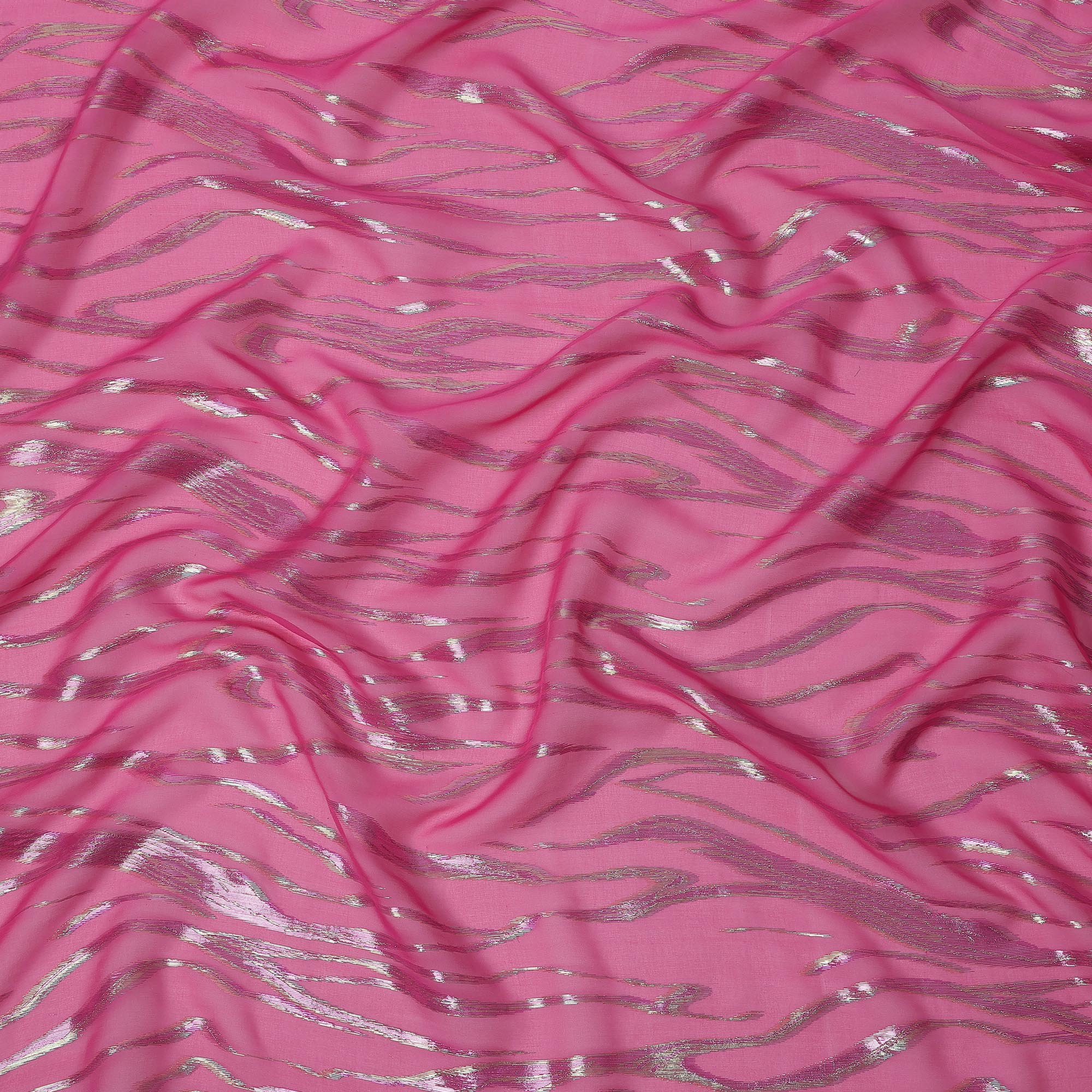 Pink Wave Pattern Silk Chiffon Fabric with Metallic Lurex, 110 Cms, South Korea-D25495