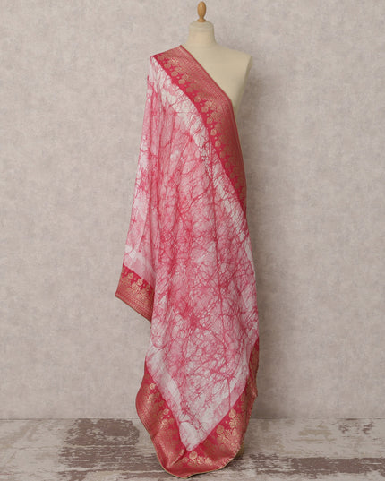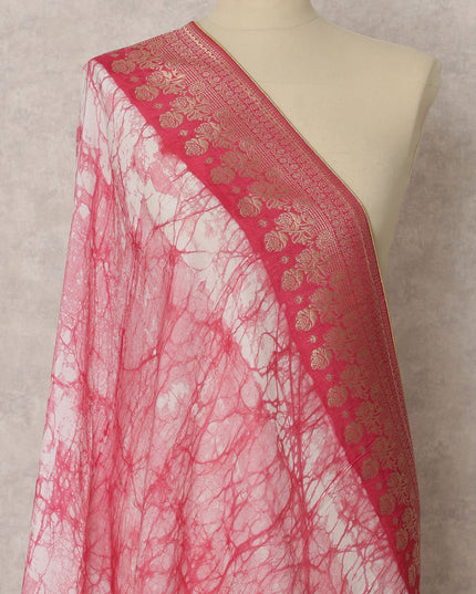 Pink & White Tie-Dye Synthetic Brocade Dupatta, Gold Woven Ethnic Stole, 220X95 CMS, India-D22374