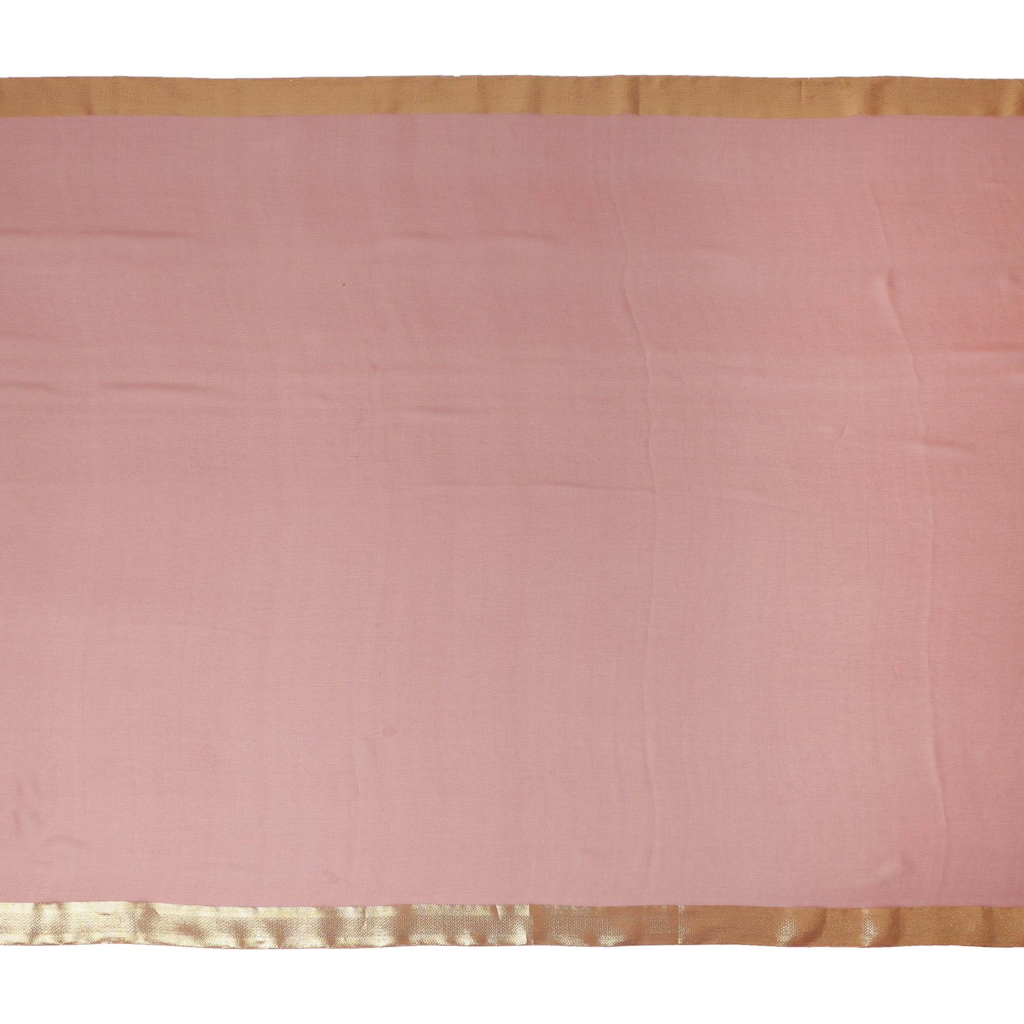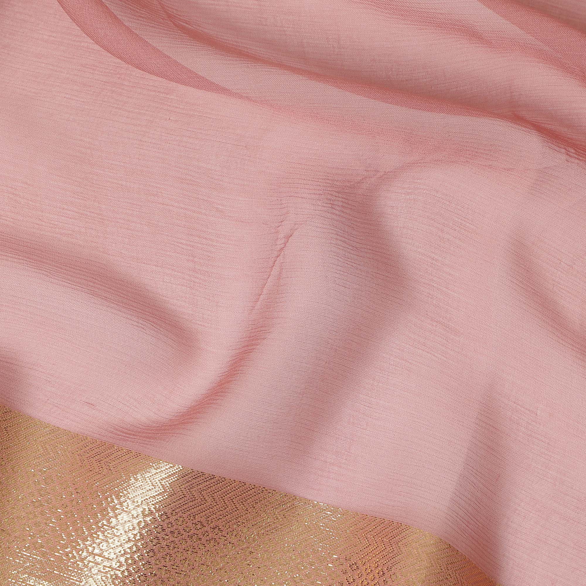 Pink Wrinkle Silk Chiffon Fabric with Golden Border Stripe Lightweight Sheer Textured Fabric for Sarees Dresses Dupattas and Crafts 110 Cms Wide South Korea Origin-D27659