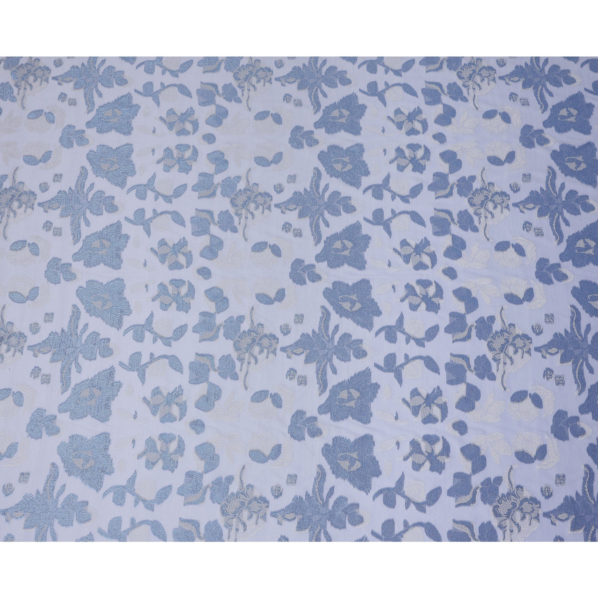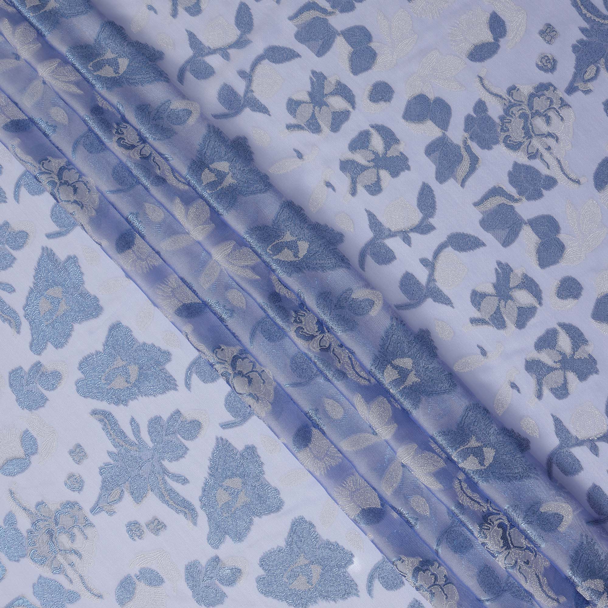 Powder Blue Floral Metallic Lurex Design Premium French Silk Chiffon Fabric, 110 Cms Width, Made in France-D25739