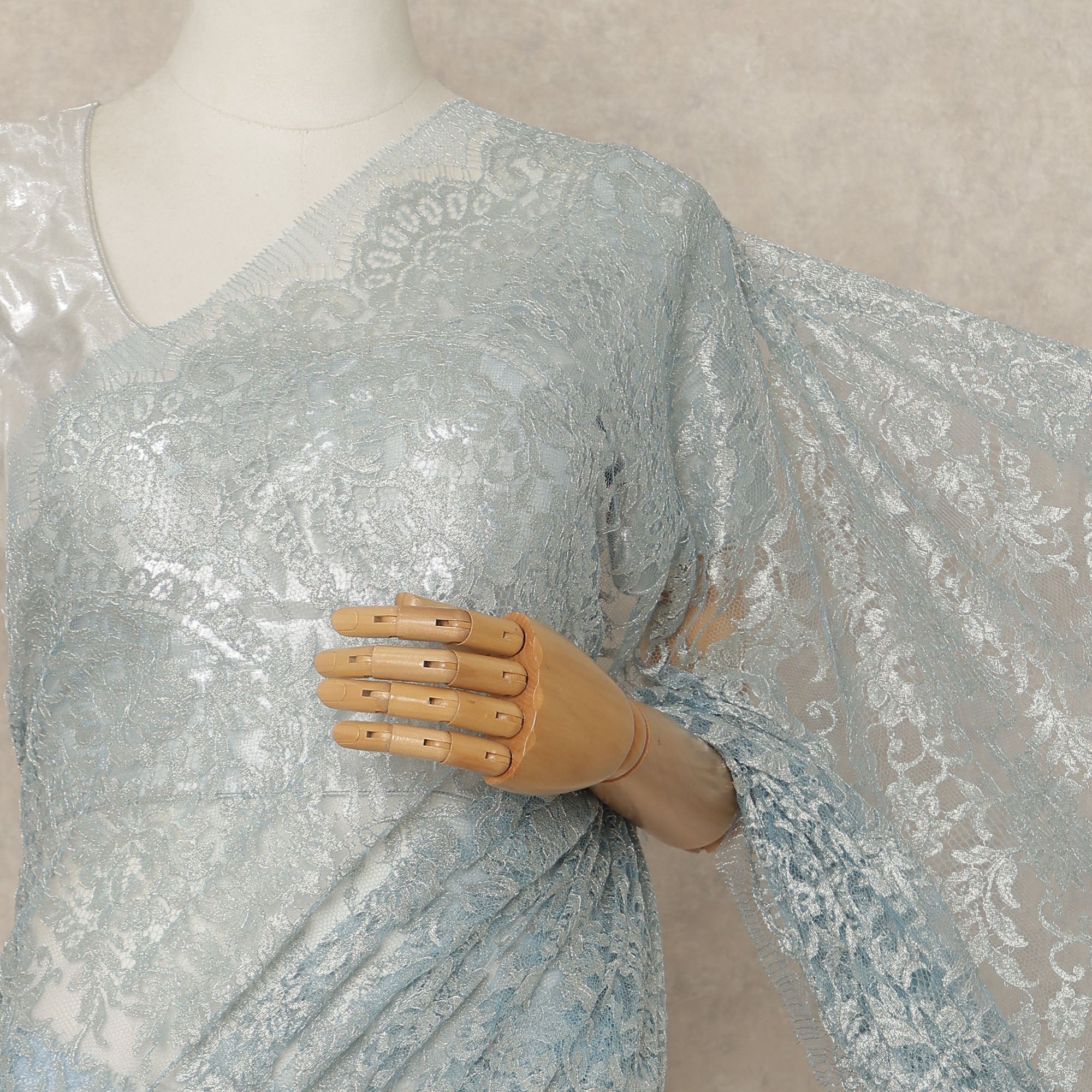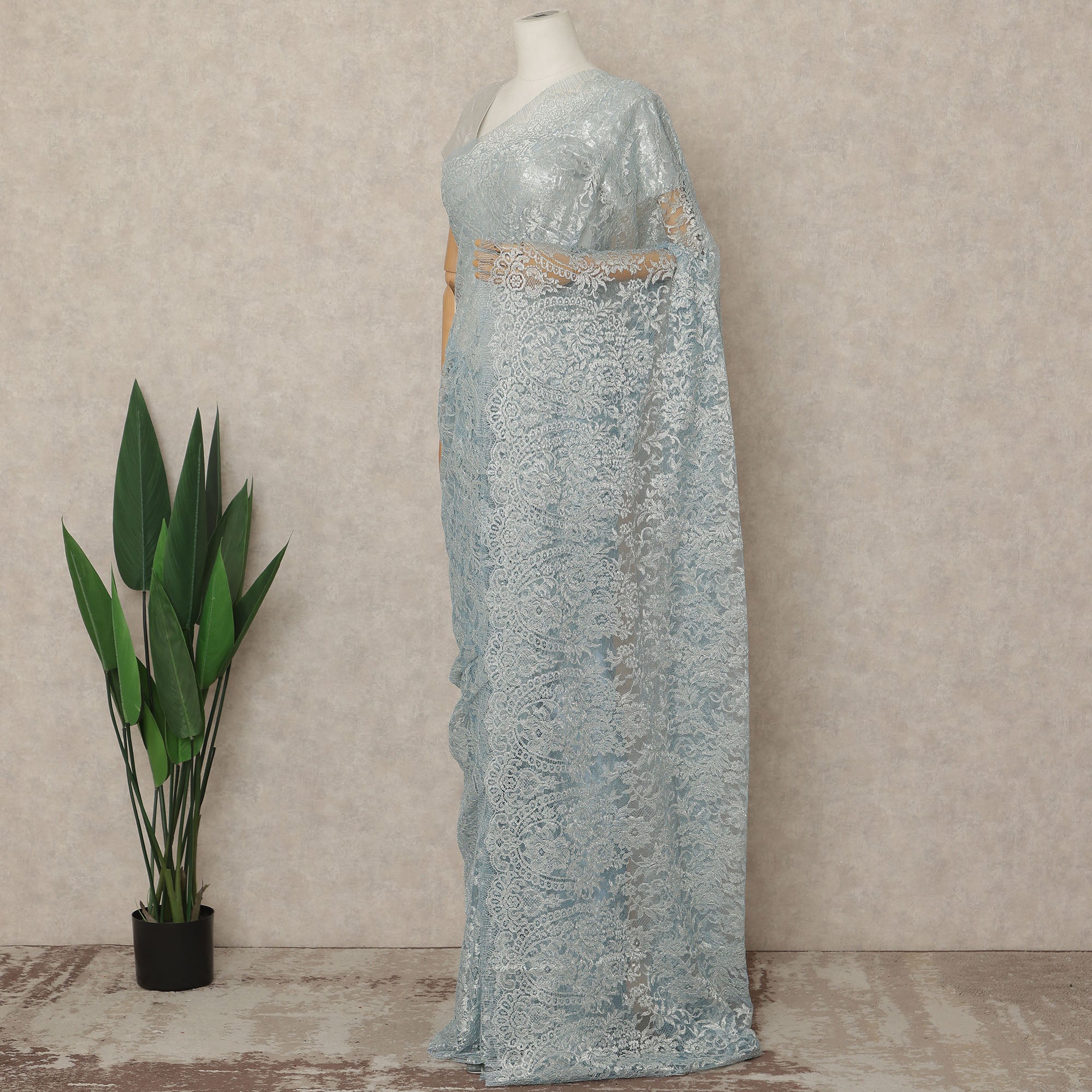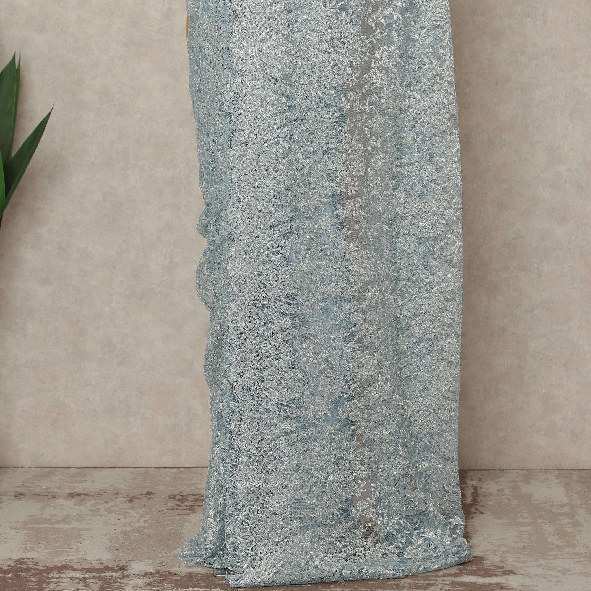 Powder Blue Premium French Metallic Chantilly Saree Lace 5.5 Mtrs 110 Cms Width France-D27767