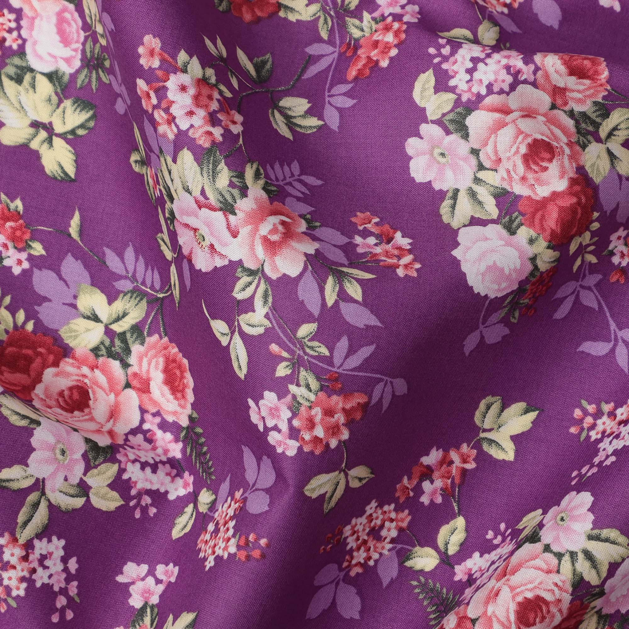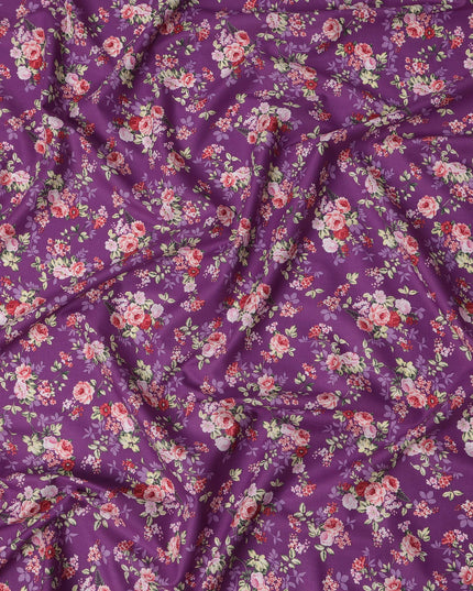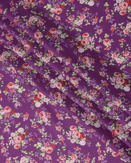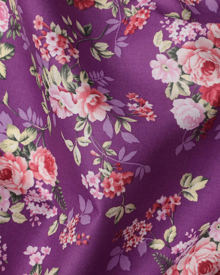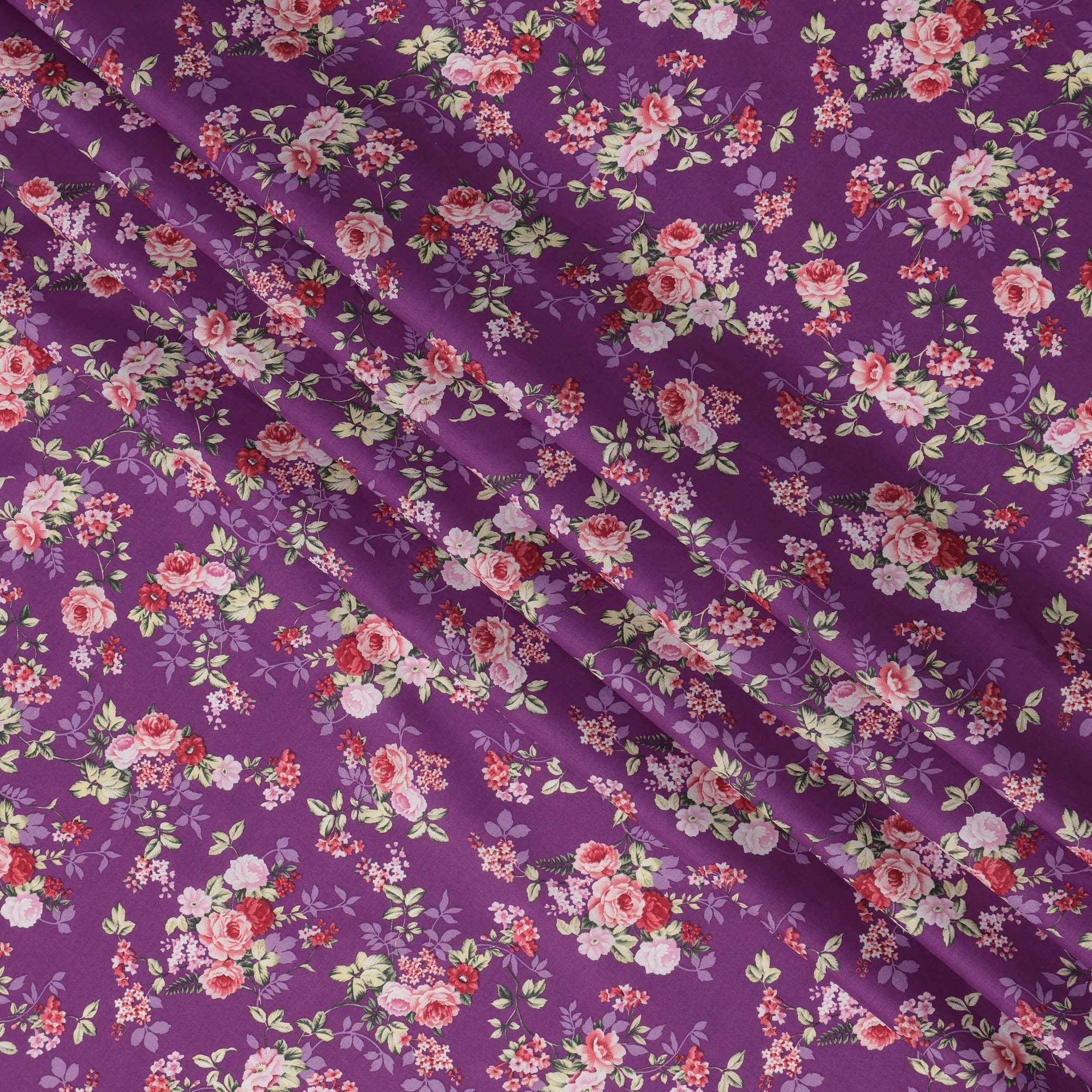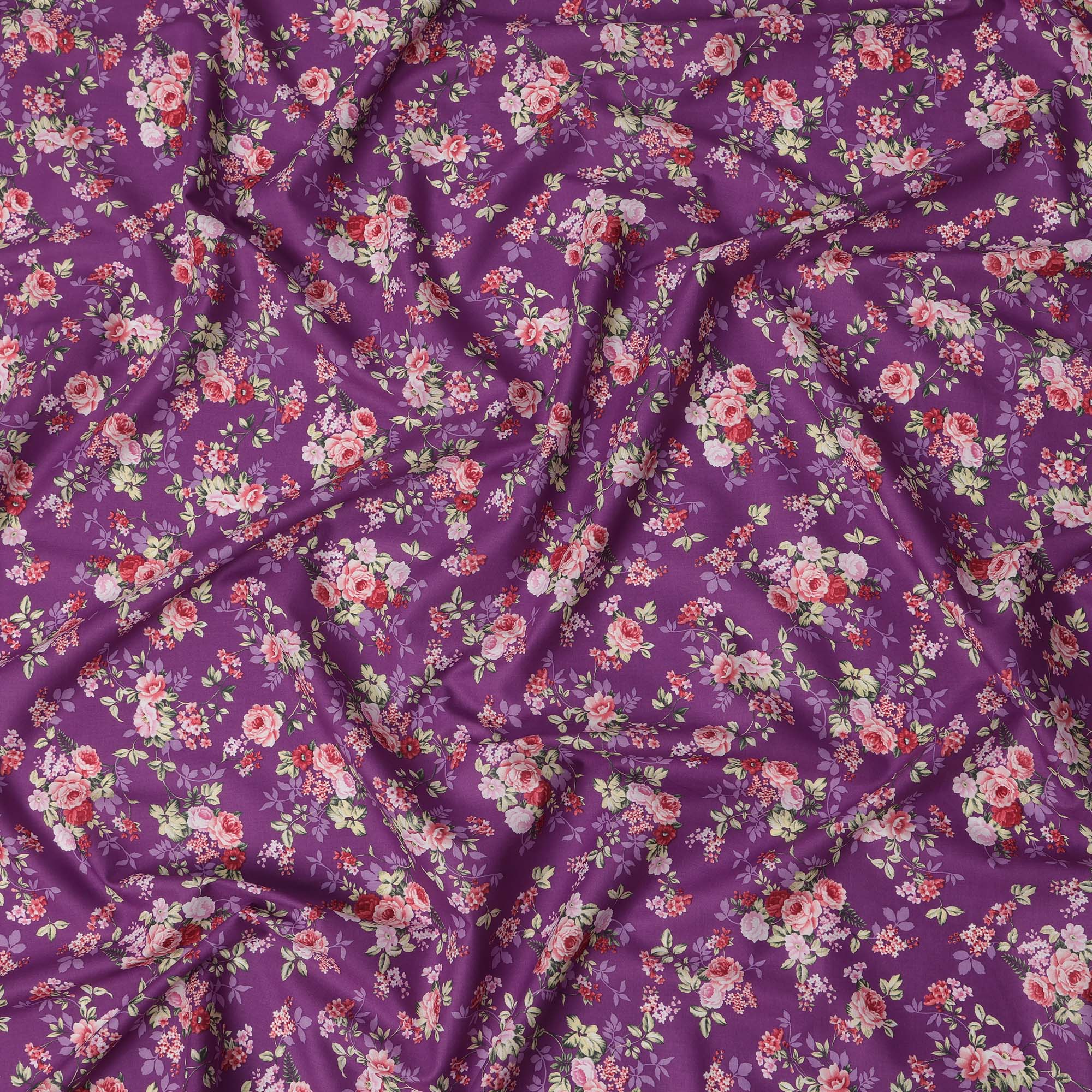 Purple and Pink Floral Pure Cotton Printed Fabric – Width 110 cm-D21813