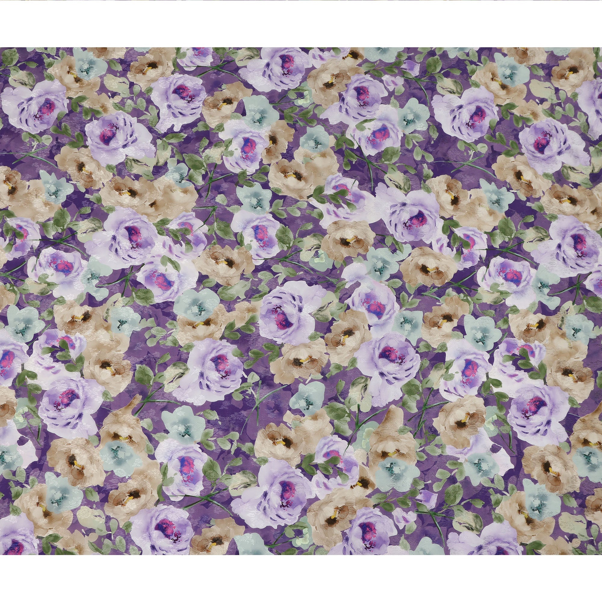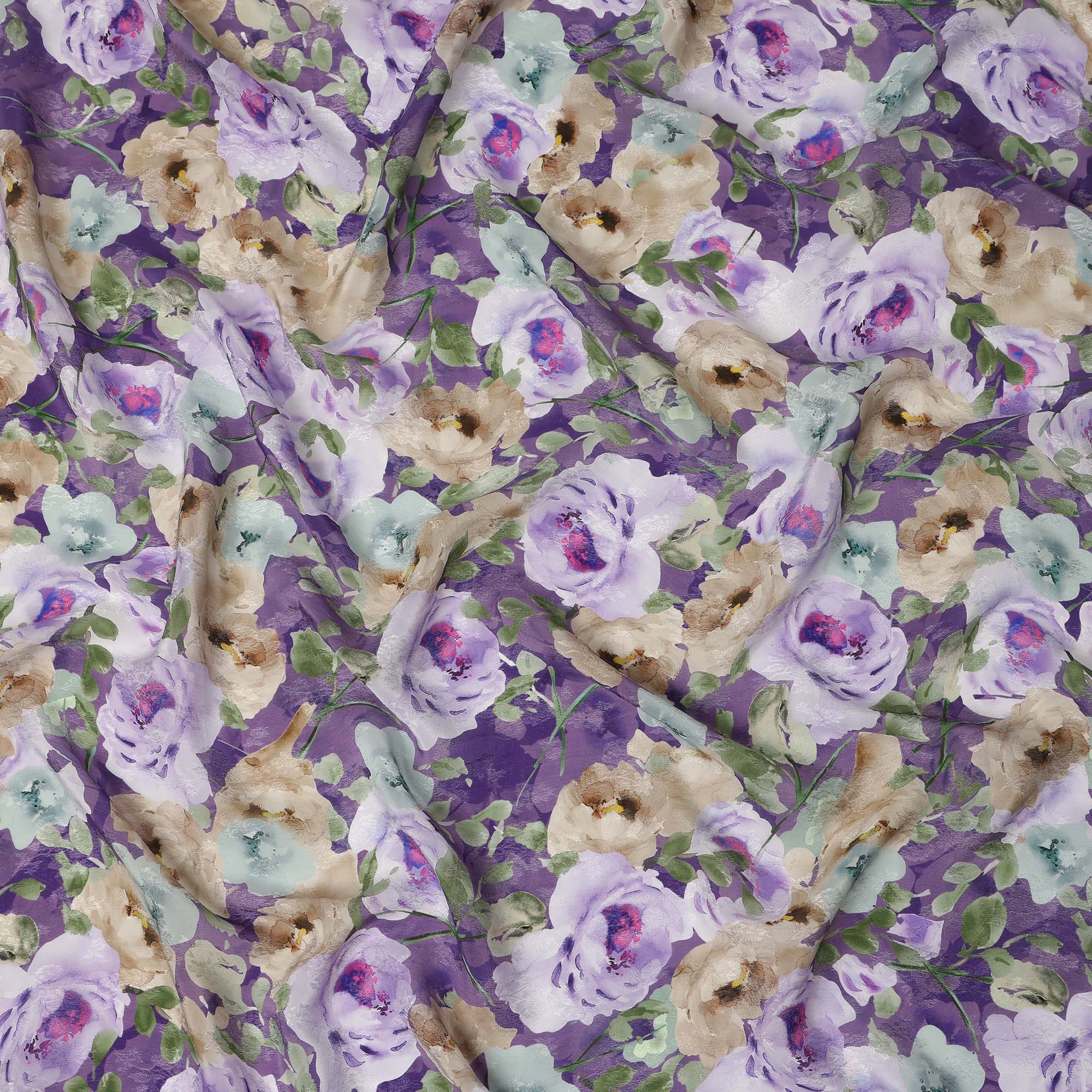 Purple Floral Artistic Printed Viscose Fabric Soft Lightweight Flowing Dress Material 110 Cms India-D27324