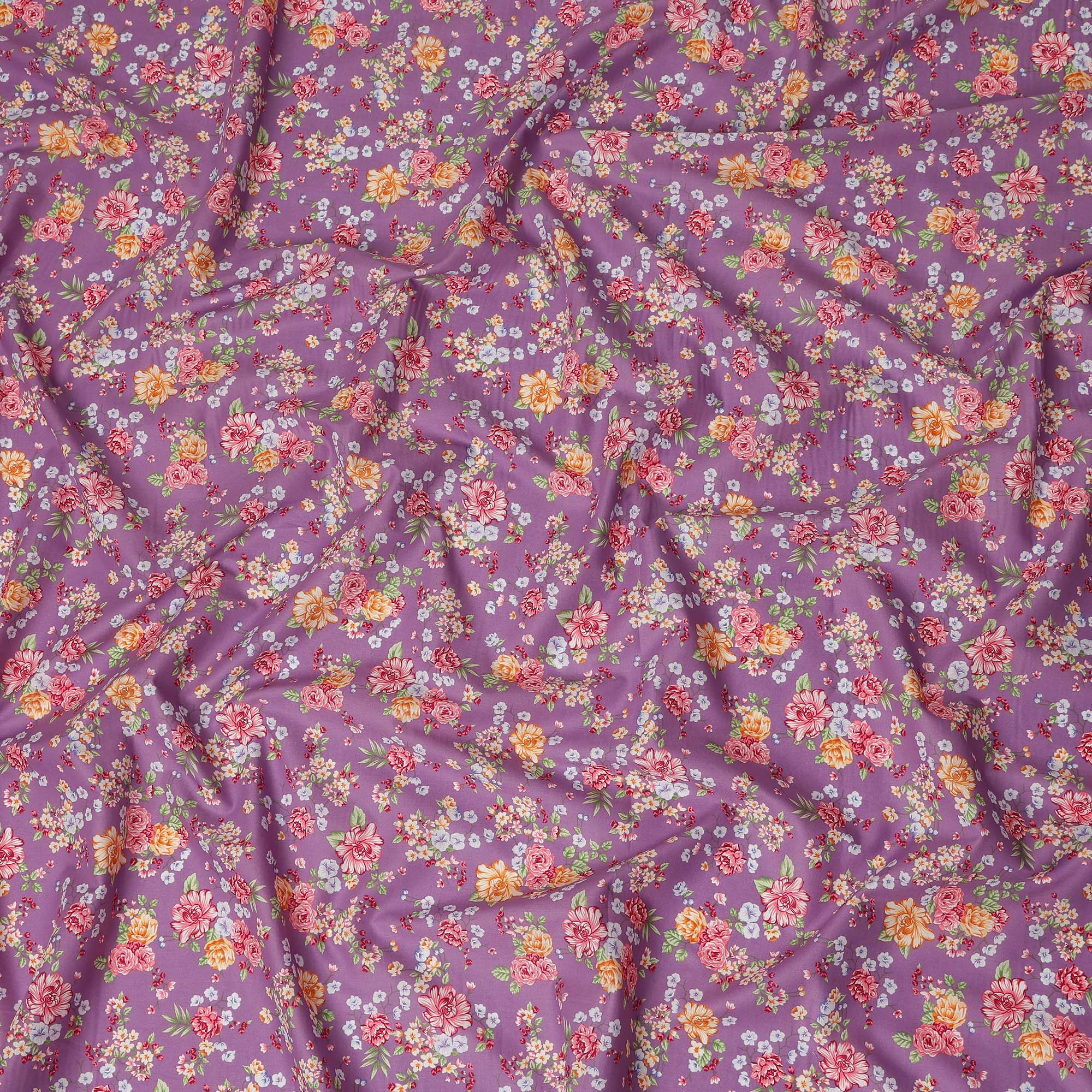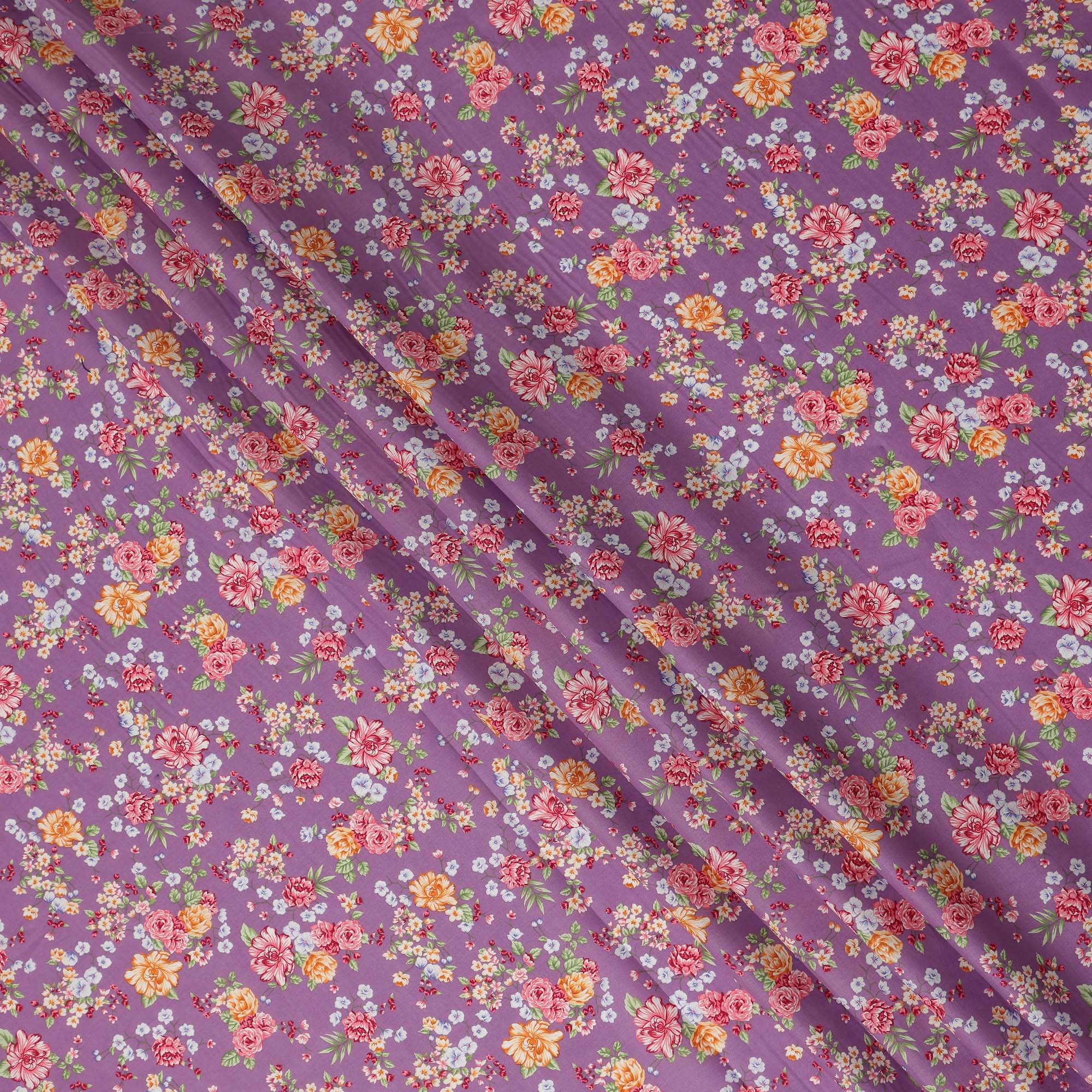 Purple Floral Printed Cotton Lawn Fabric Soft Lightweight Breathable Dressmaking Sewing Material 4.0 Meters Length 110 Cms Width India-D27625