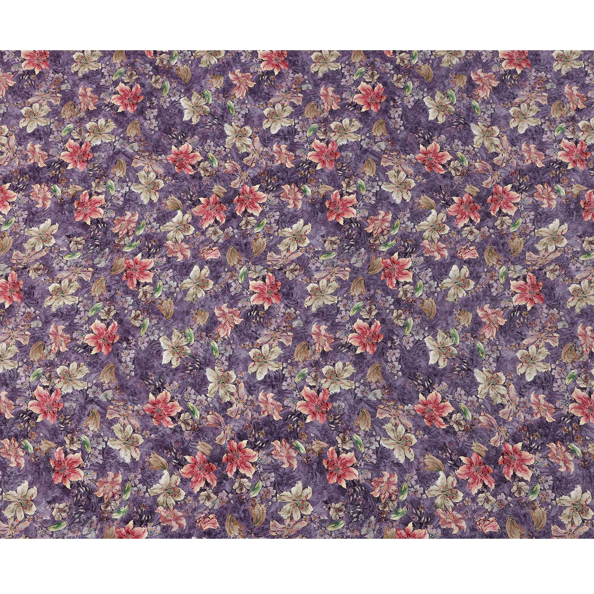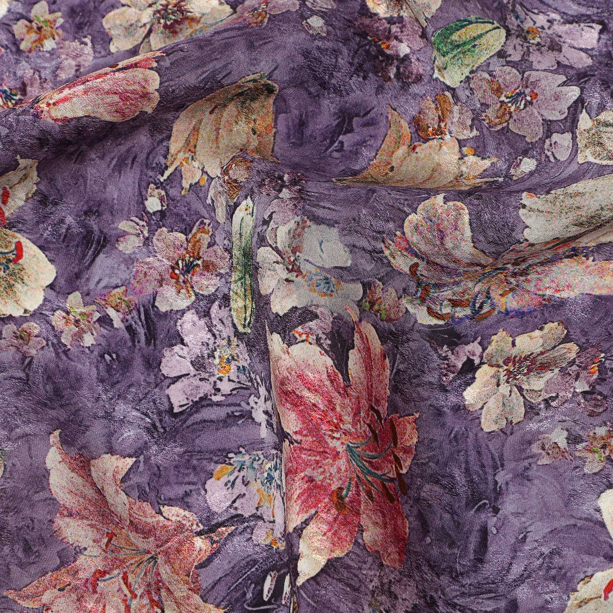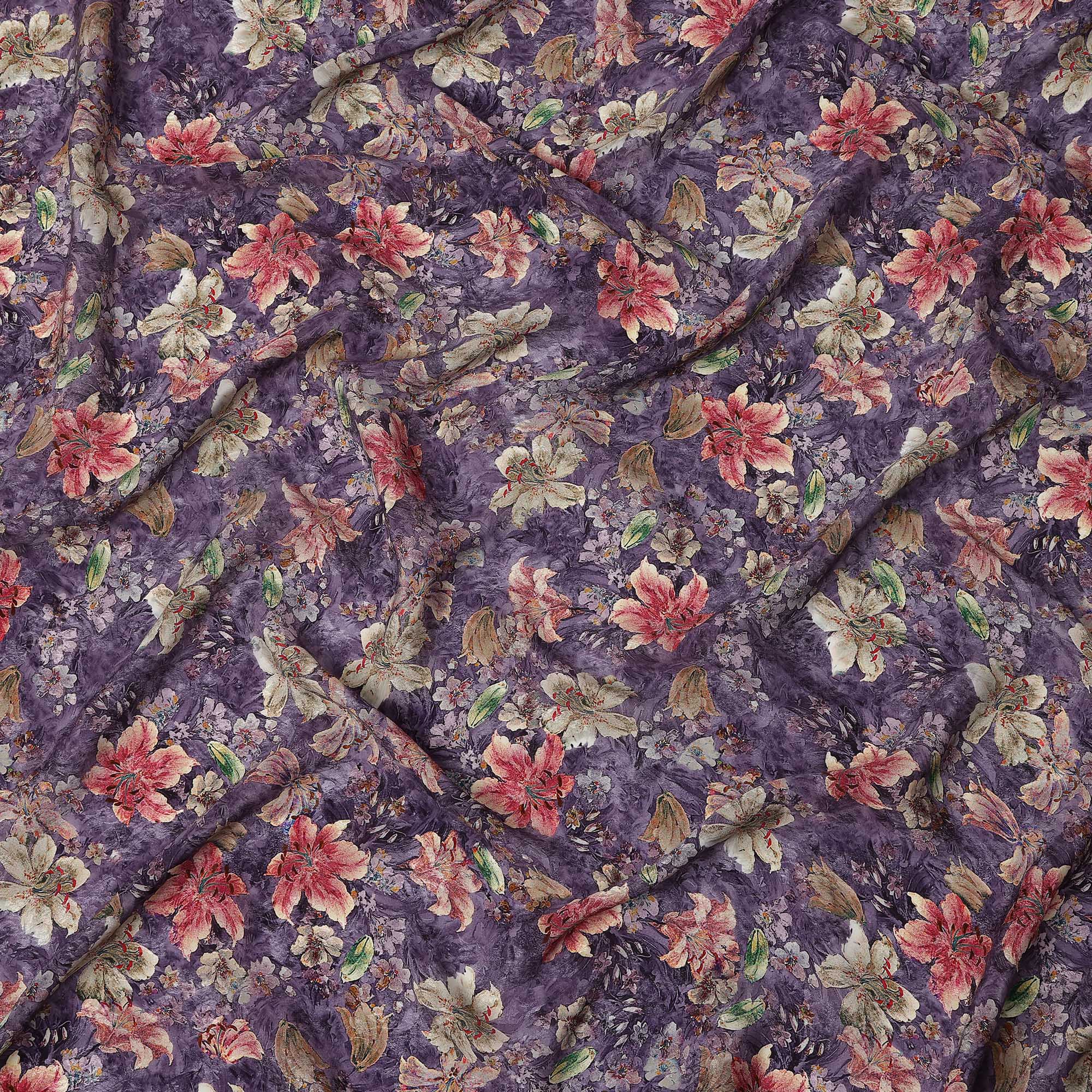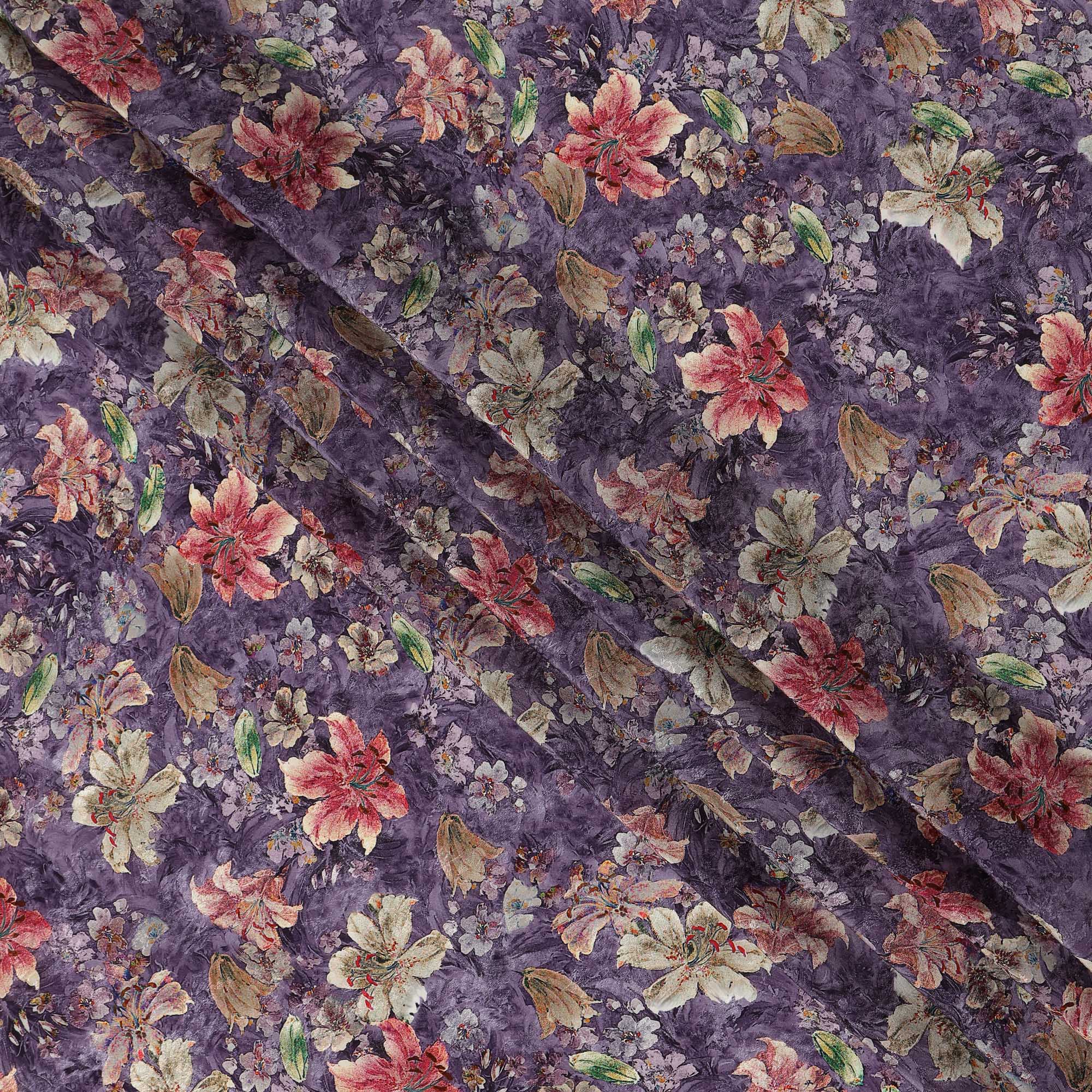 Purple Floral Printed Viscose Fabric 110 Cms India Origin-D27556