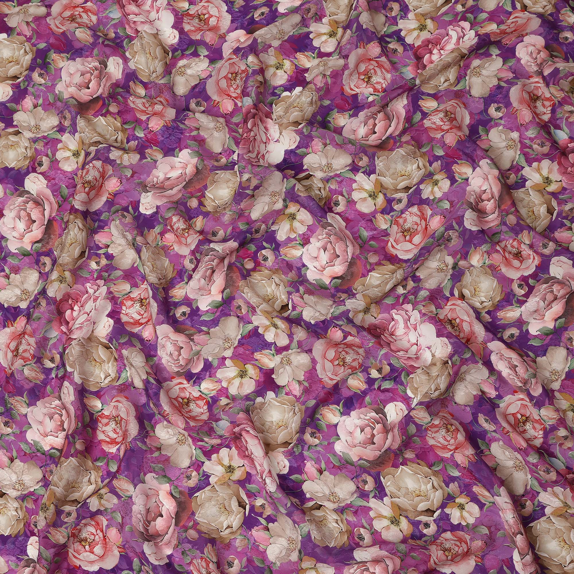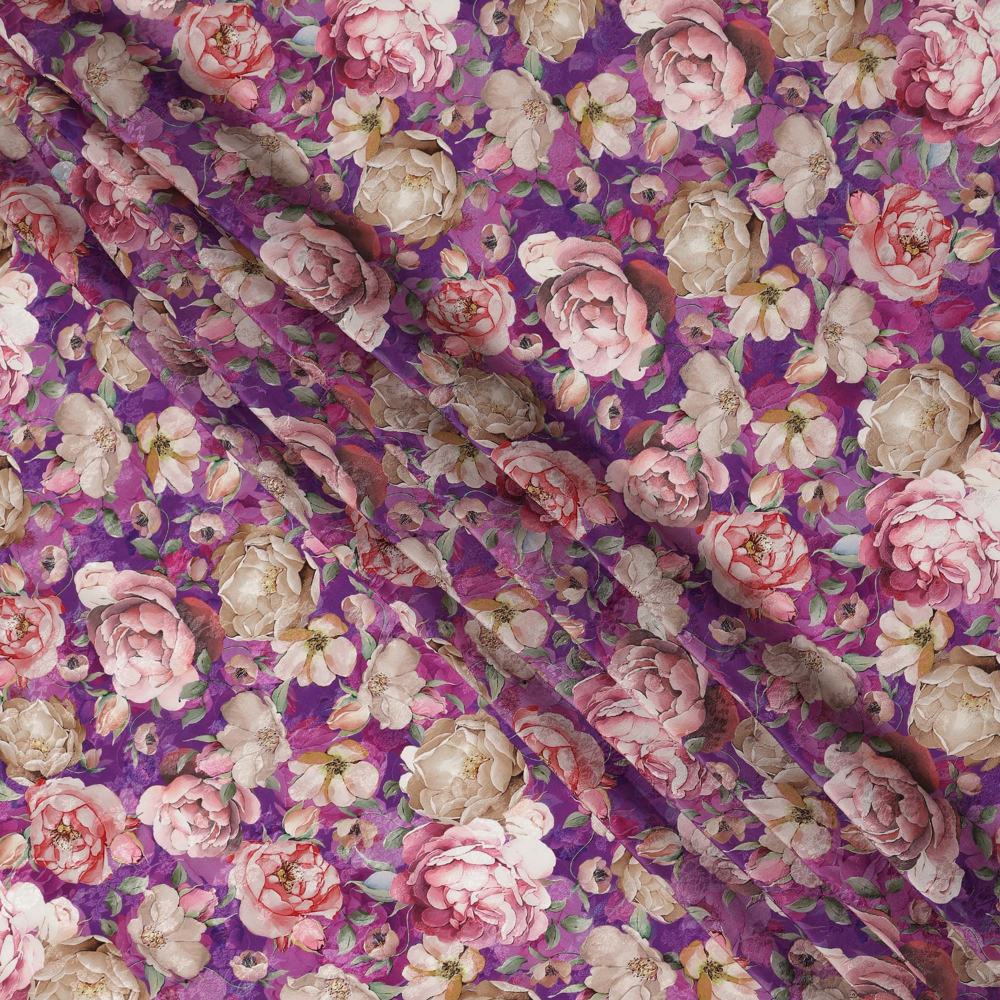 Purple Floral Printed Viscose Fabric Soft Lightweight Flowing Dress Material for Apparel Sewing Craft Fashion Use 110 Cms Width India Origin-D27314