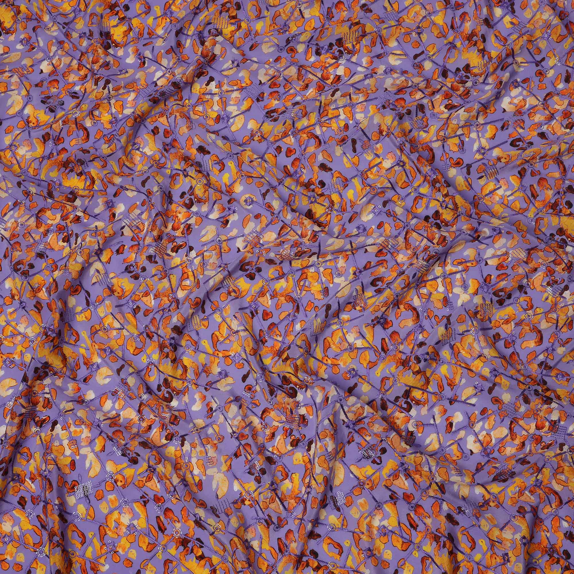 Purple Orange Abstract Animal Print Viscose Crepe Fabric, 110 Cms Width, Made in India-D23607