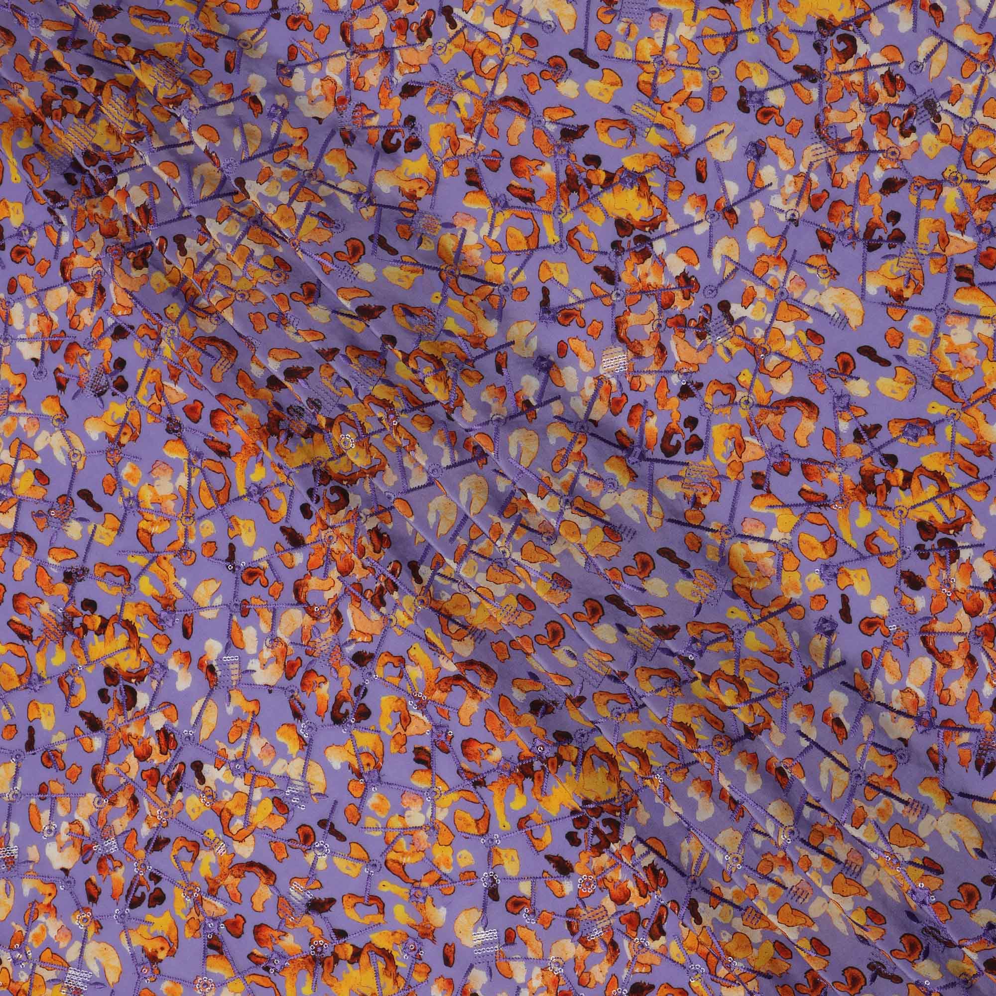 Infused with wild elegance, this purple viscose crepe fabric features a vibrant abstract animal print in dynamic hues of orange, mustard yellow, and crimson red, lending a bold character to any ensemble. Crafted with digital precision, the multitone motif captures spontaneous brush accents and scattered spots that offer a contemporary twist on classic leopard patterns. The soft viscose crepe base provides a fluid drape and airy comfort, making it ideal for fashion-forward silhouettes like kaftans, summer dresses, stoles, or Indo-western outfits. Measuring 110 cms in width, this breathable and lightweight fabric ensures both versatility and high wearability. Whether you're designing fusion pieces or standout casuals, this fabric will give your creations a statement-making flair. Shop online now and unleash your bold style with this eye-catching textile.