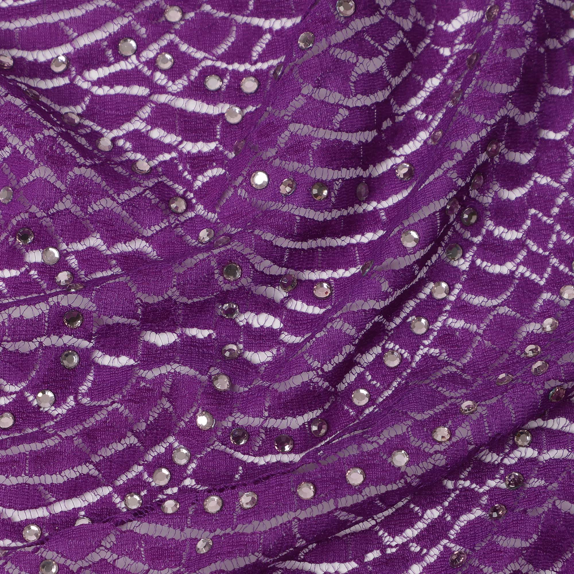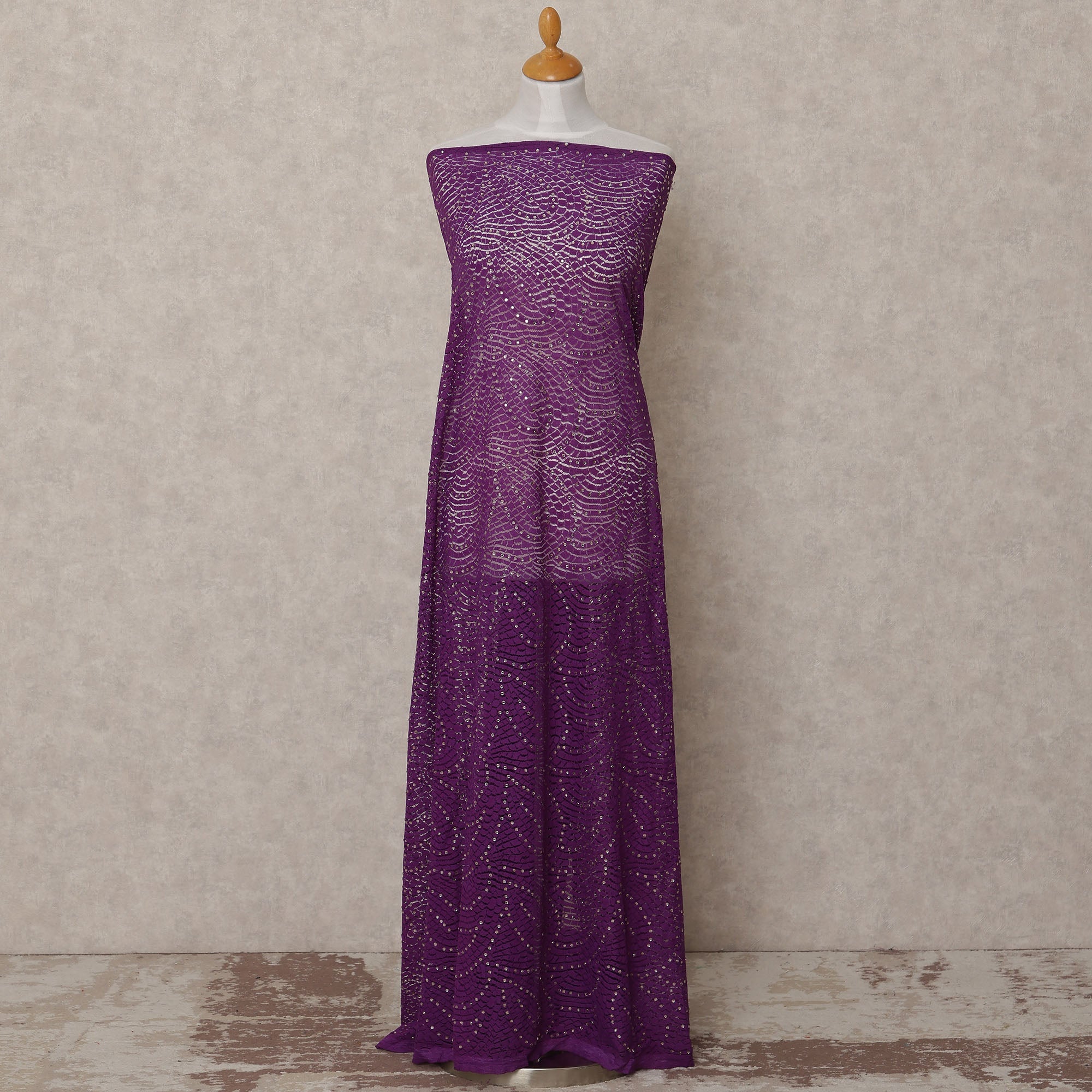 Purple Wave Sequin and Net Pattern Embroidered Nylon Tulle Fabric, 140 cm Width, Made in India – 3 Meter-D23531