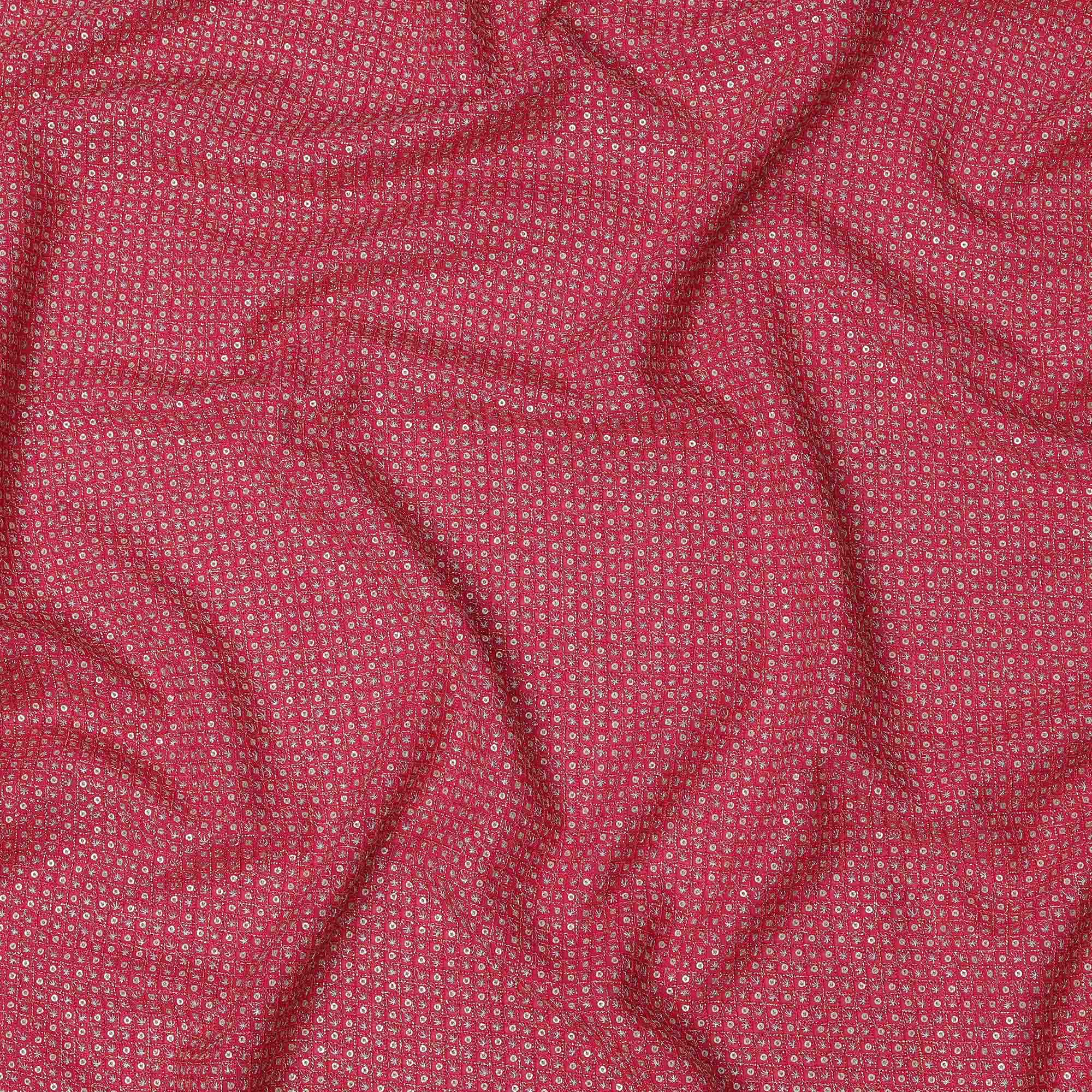 Rani pink square floral mirror embroidered synthetic blended viscose fabric, 110 Cms, India-D23832