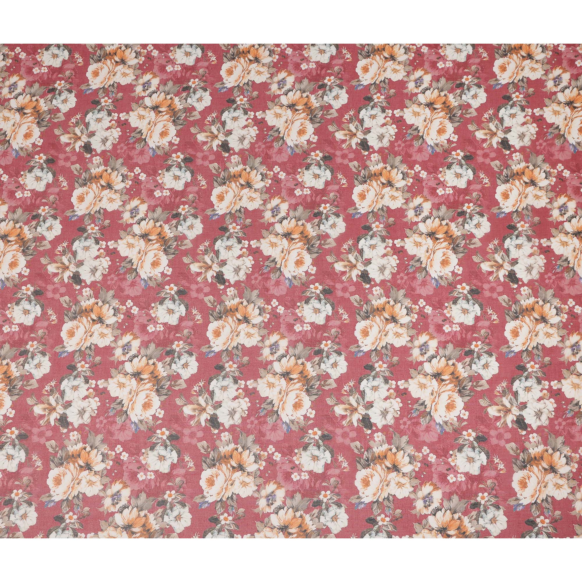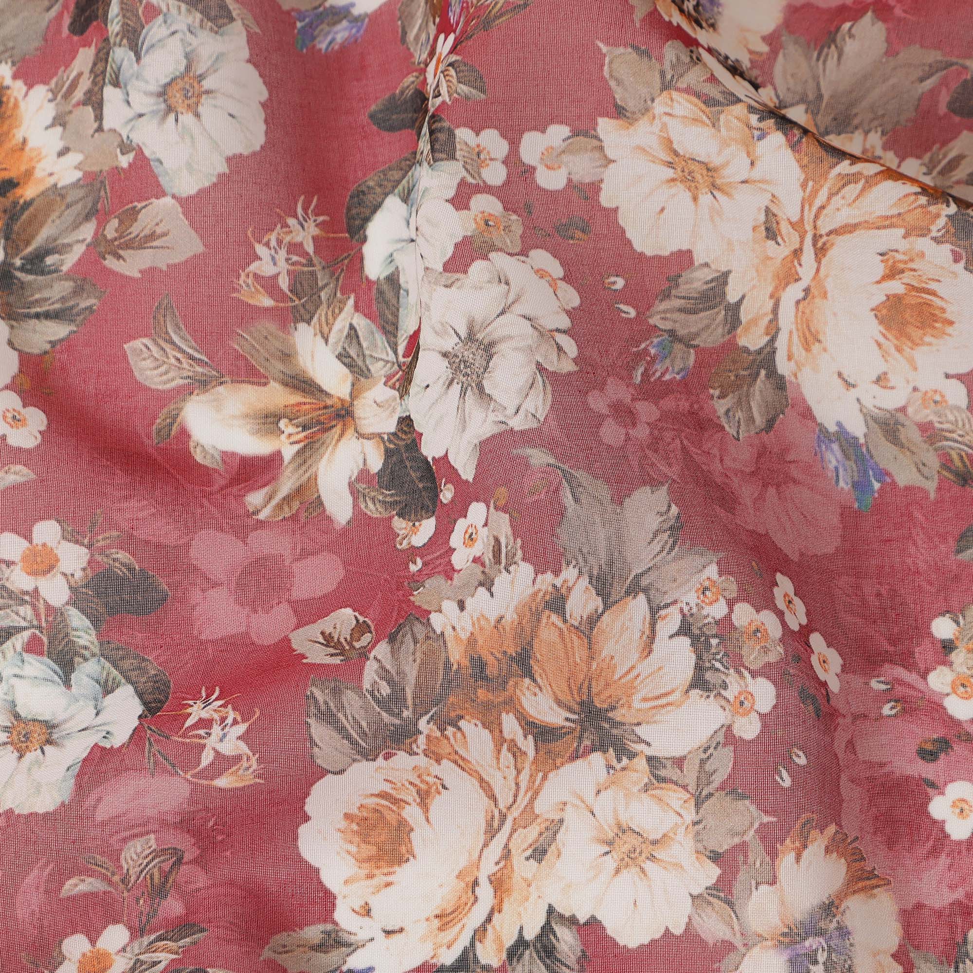 Raspberry Pink Vintage Floral Blossom Printed Cotton Voile Fabric 150 Cms Width Lightweight Soft Dressmaking Craft Material India-D28047