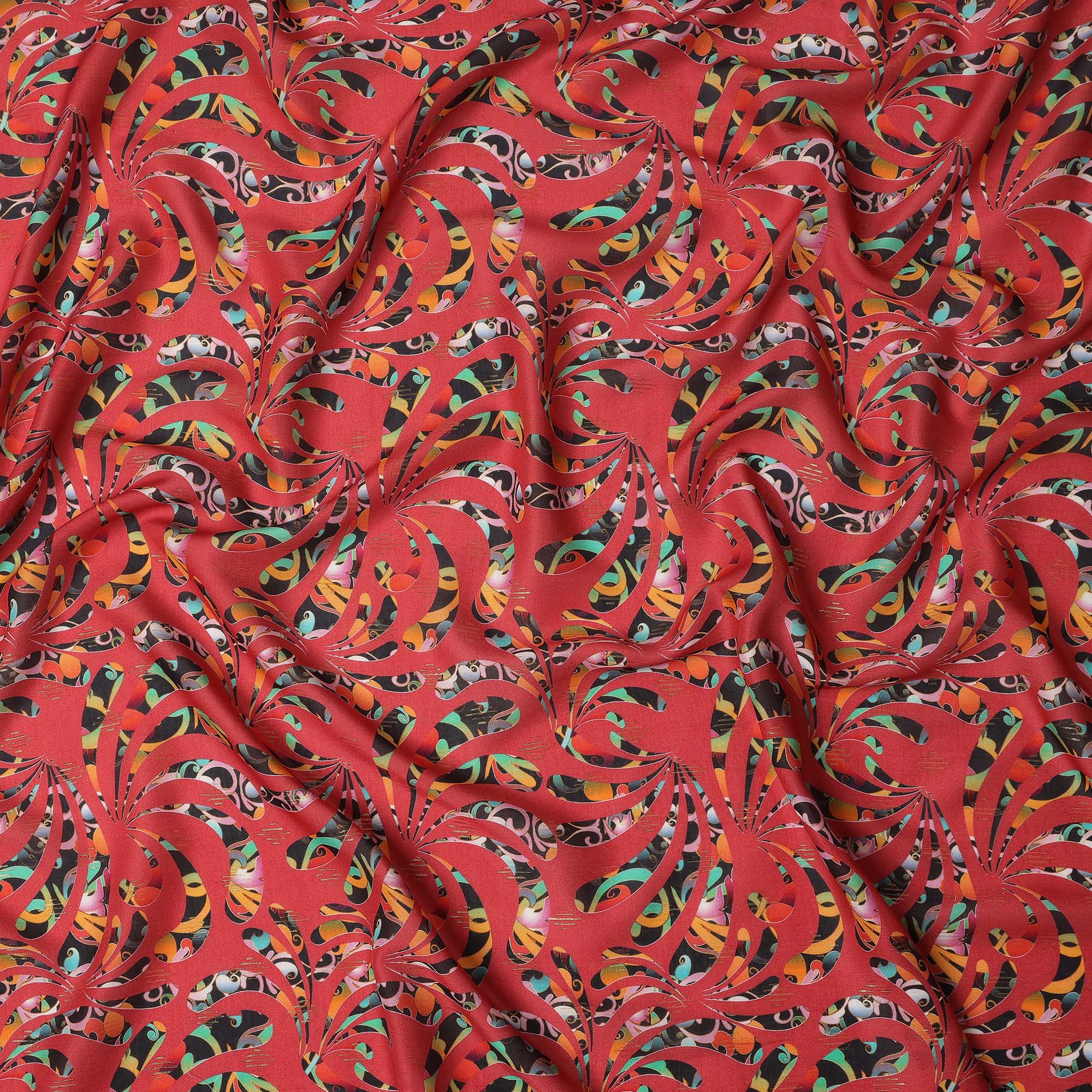 Red Abstract Swirl Printed Viscose Crepe Fabric Multicolor Artistic Pattern Soft Flowing Dress Material 110 Cms Width India-D27941