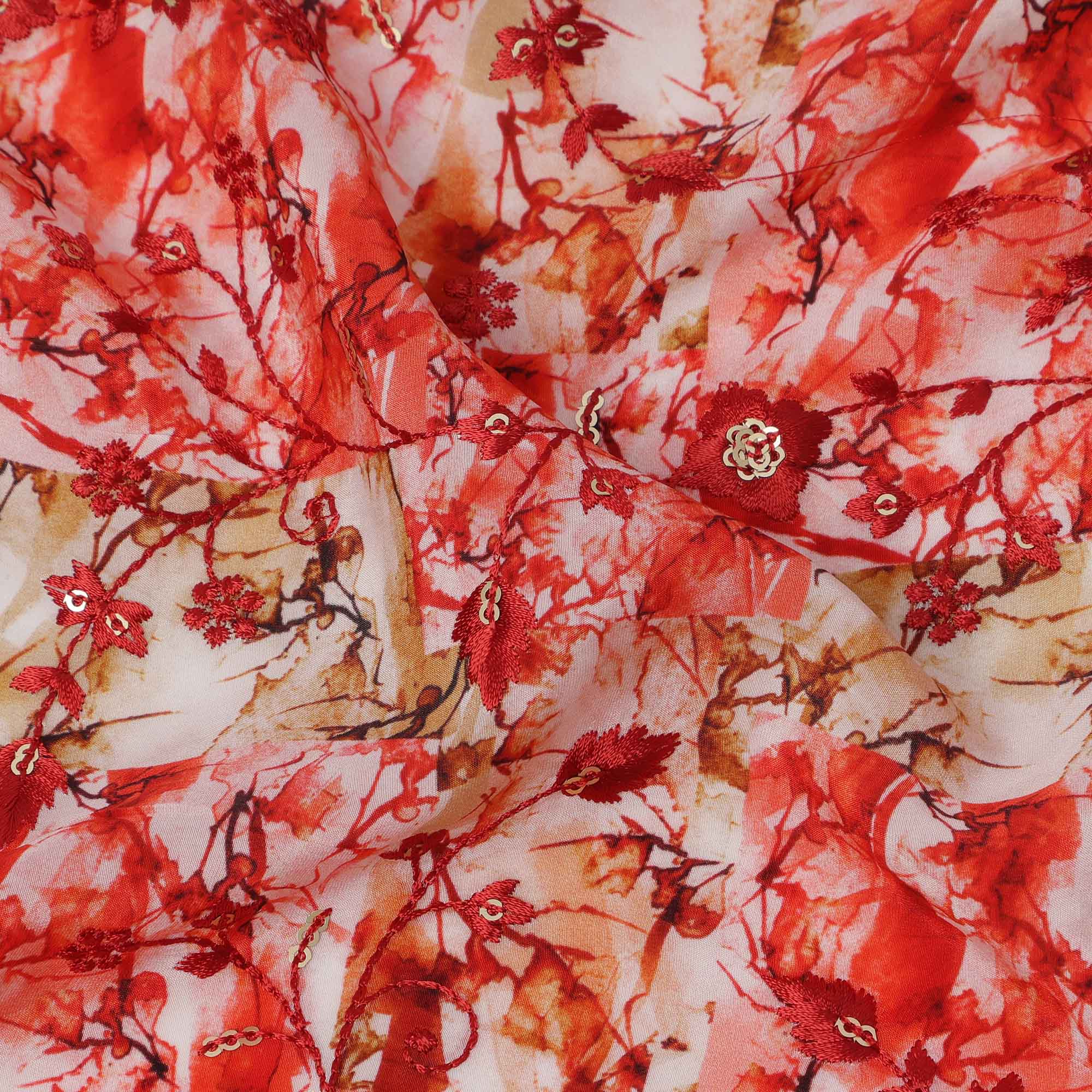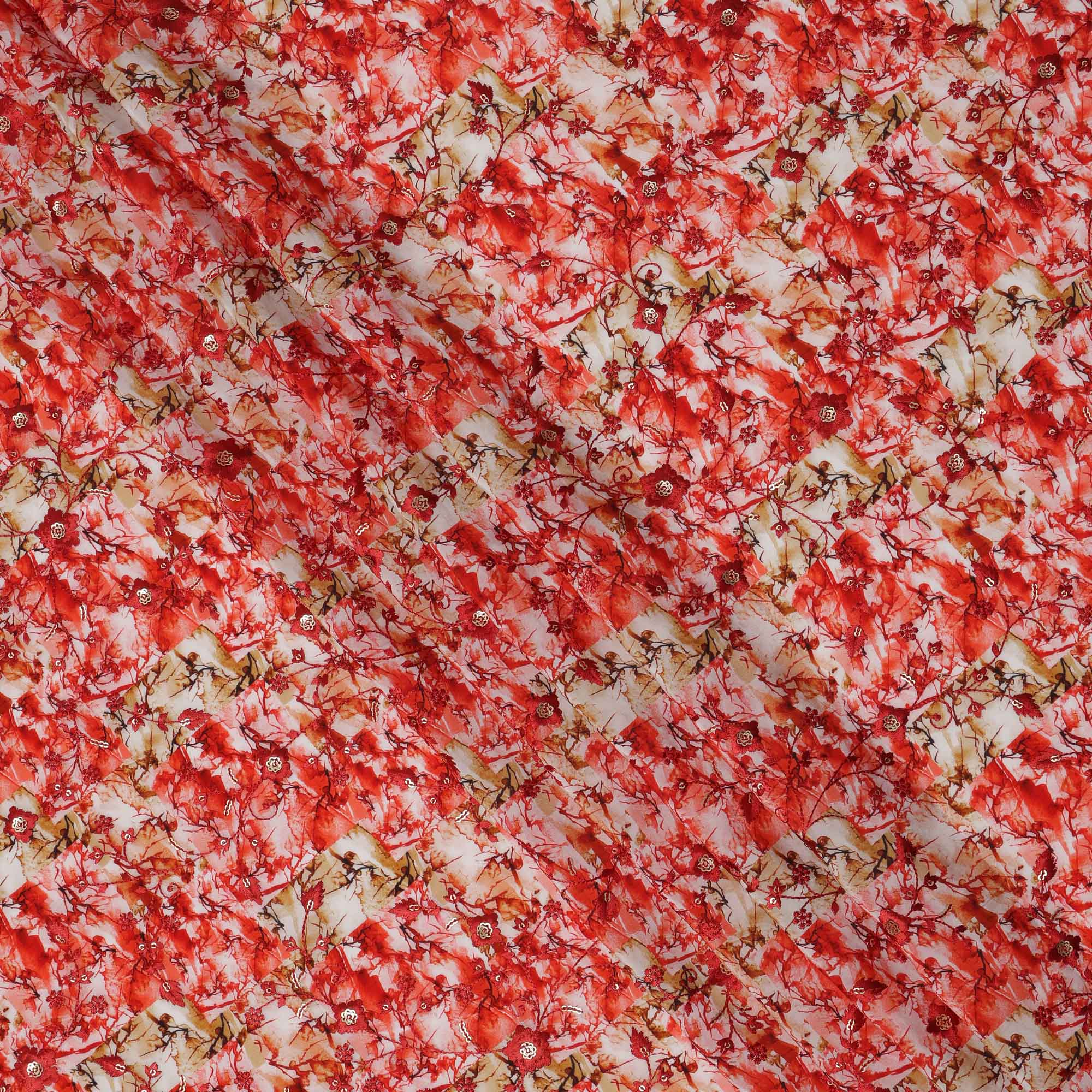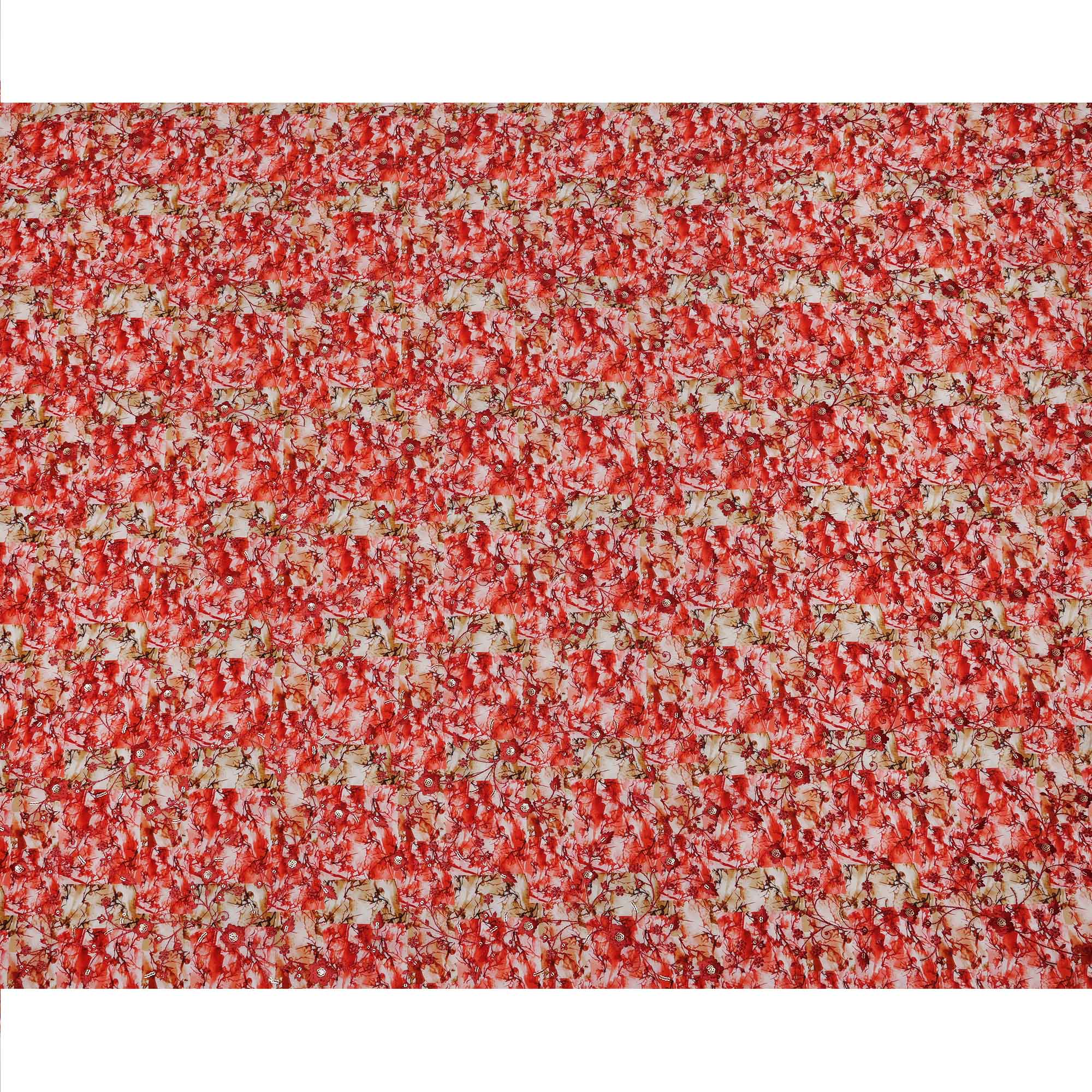 Red and White Abstract Floral Digital Print Viscose Crepe Fabric, 110 Cms Width, Made in India-D23621
