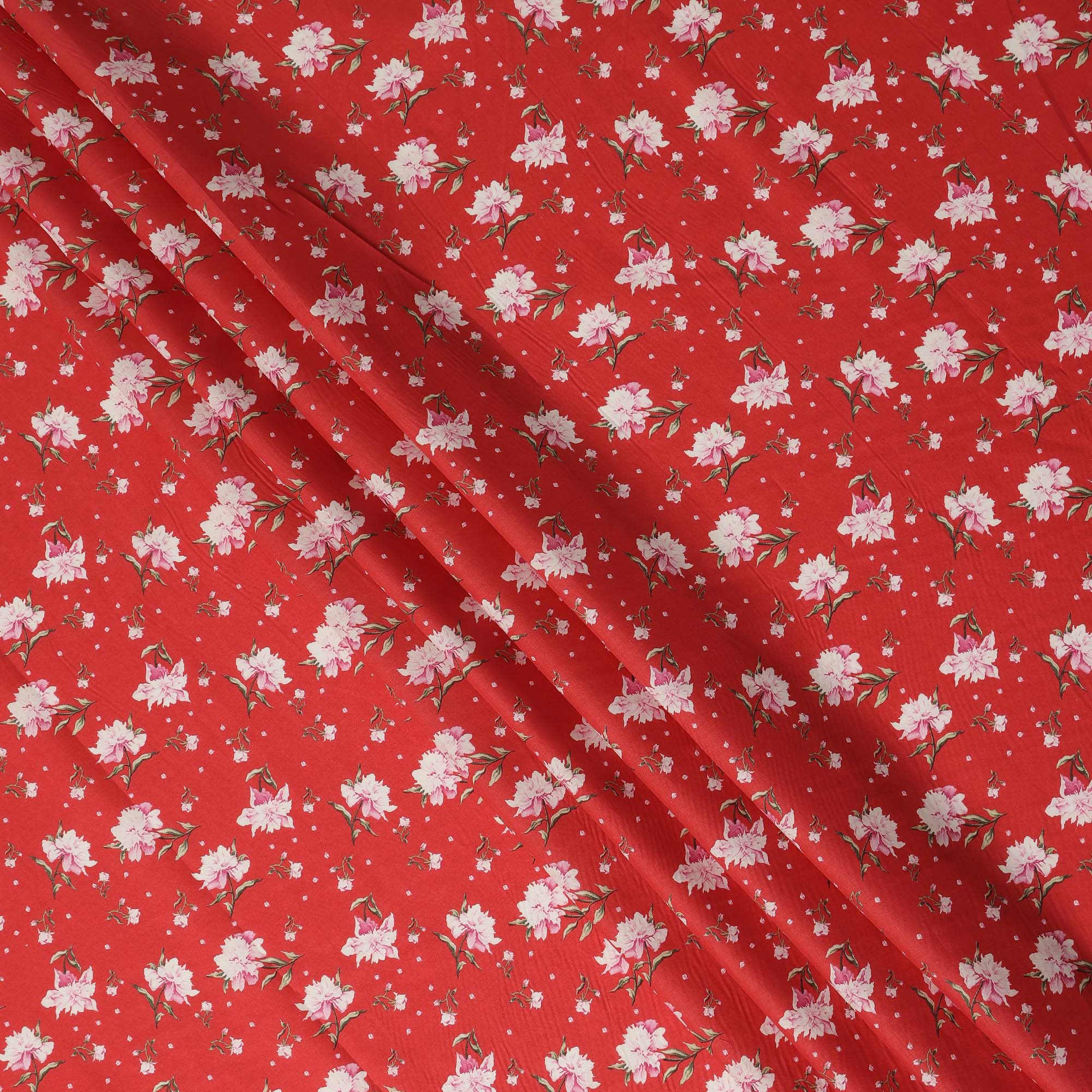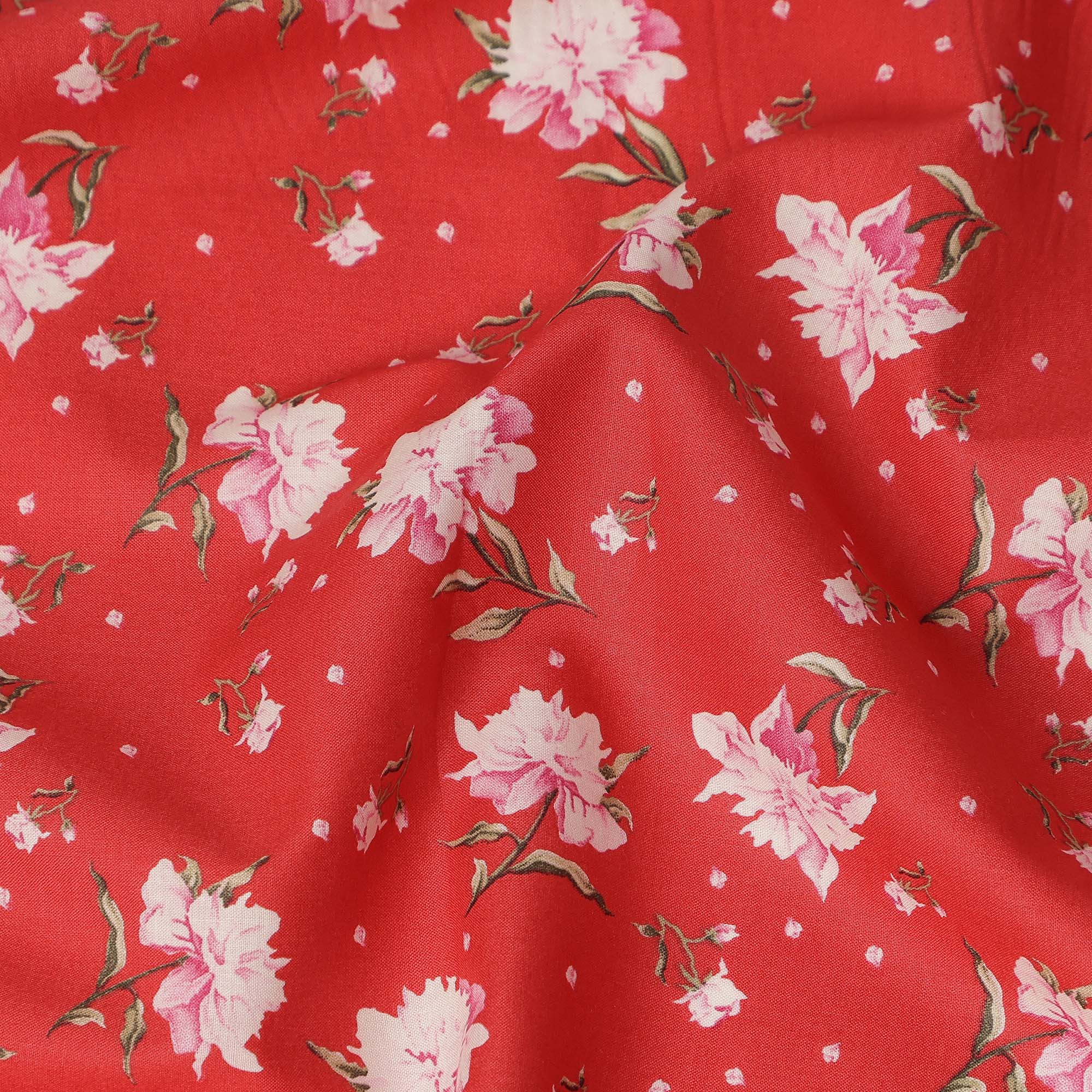 Red Floral Printed Cotton Lawn Fabric All Over Small Blossom Flower Design Soft Dressmaking Material 4.0 Meters Length 110 Cms Width India-D27653