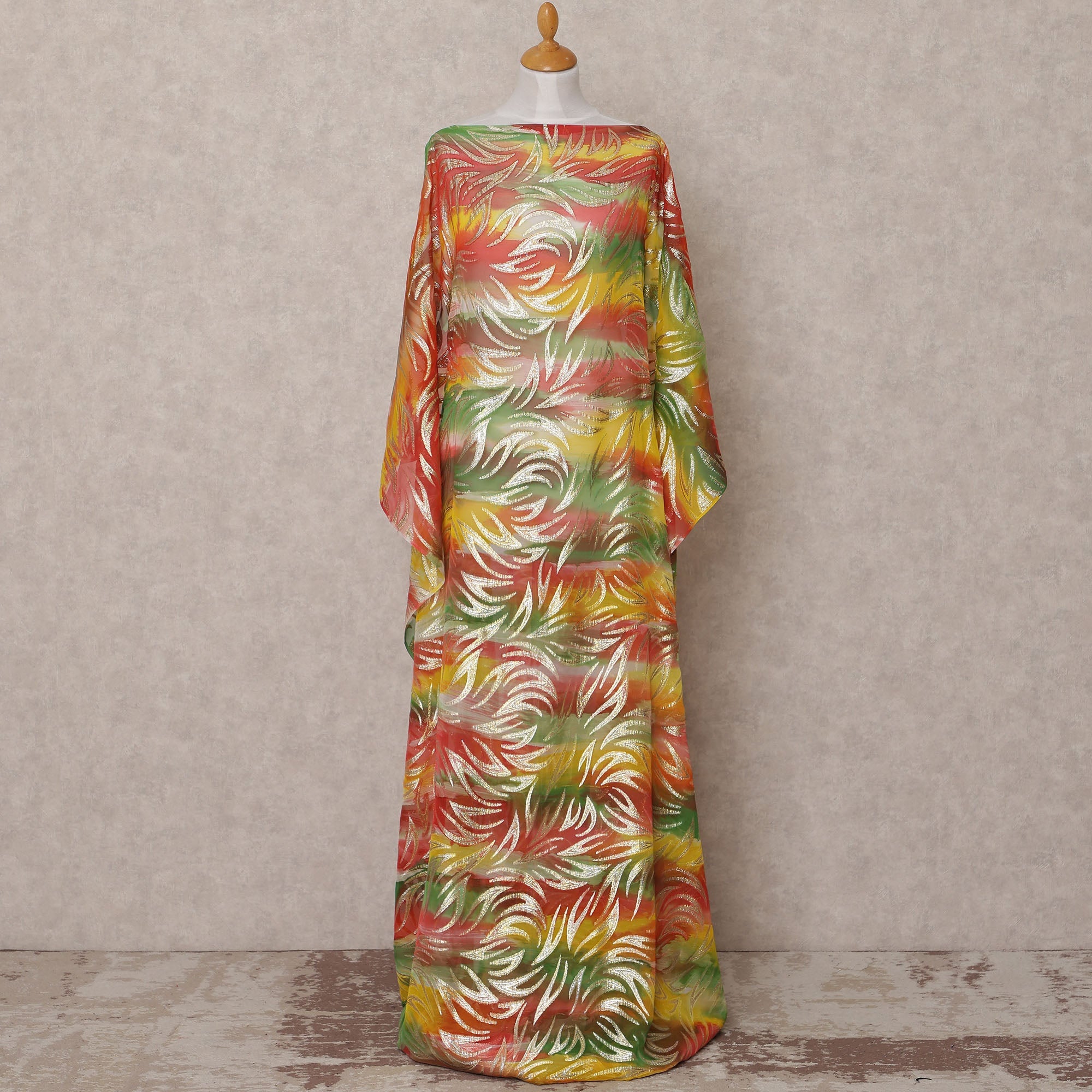 Red Green Yellow Traditional Somali Silk Chiffon Dirac Fabric with Metallic Lurex, 3.5 Mtrs, Width 140 Cms, Made in South Korea-D25046