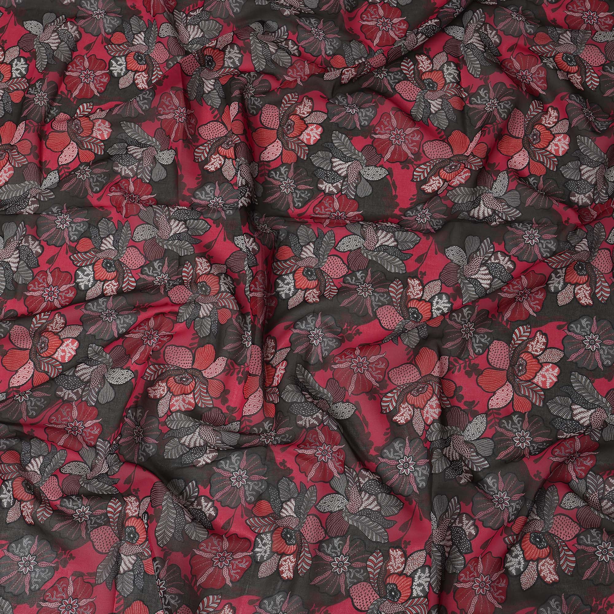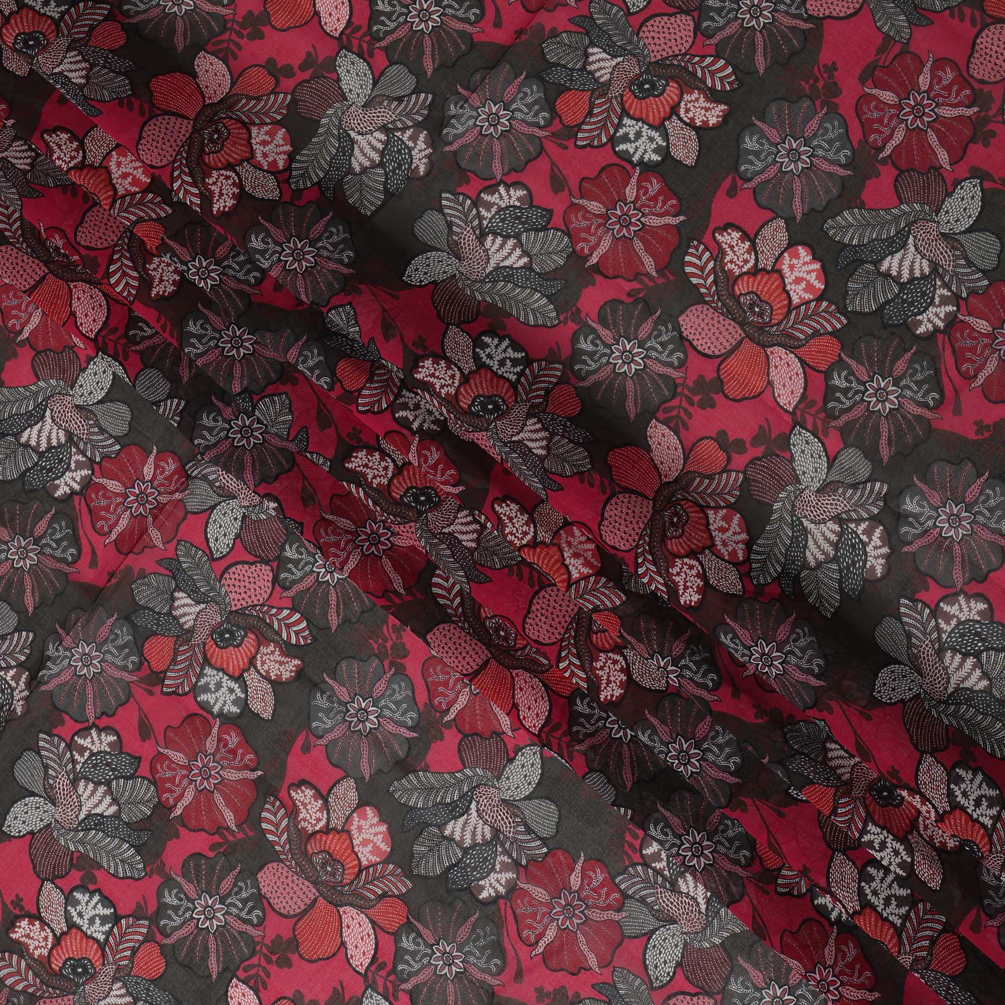 Red Multi-Color Floral Printed Somali Cotton Voile Dirac Fabric, 3.5 Mtrs Piece, 140 cm Width, Made in India-D26661
