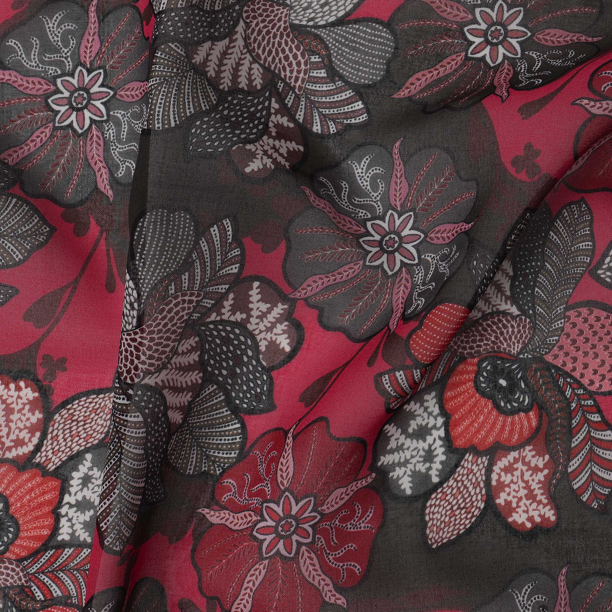 This red Somali cotton voile dirac fabric features a striking multi-color floral print in bold shades of red, black, grey,... Read more Read more